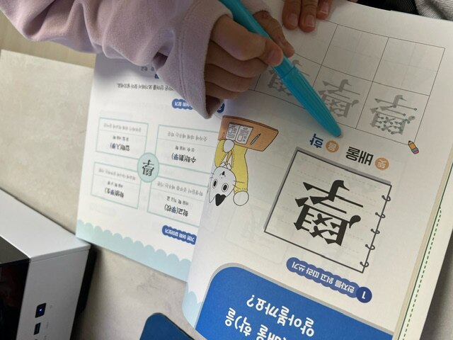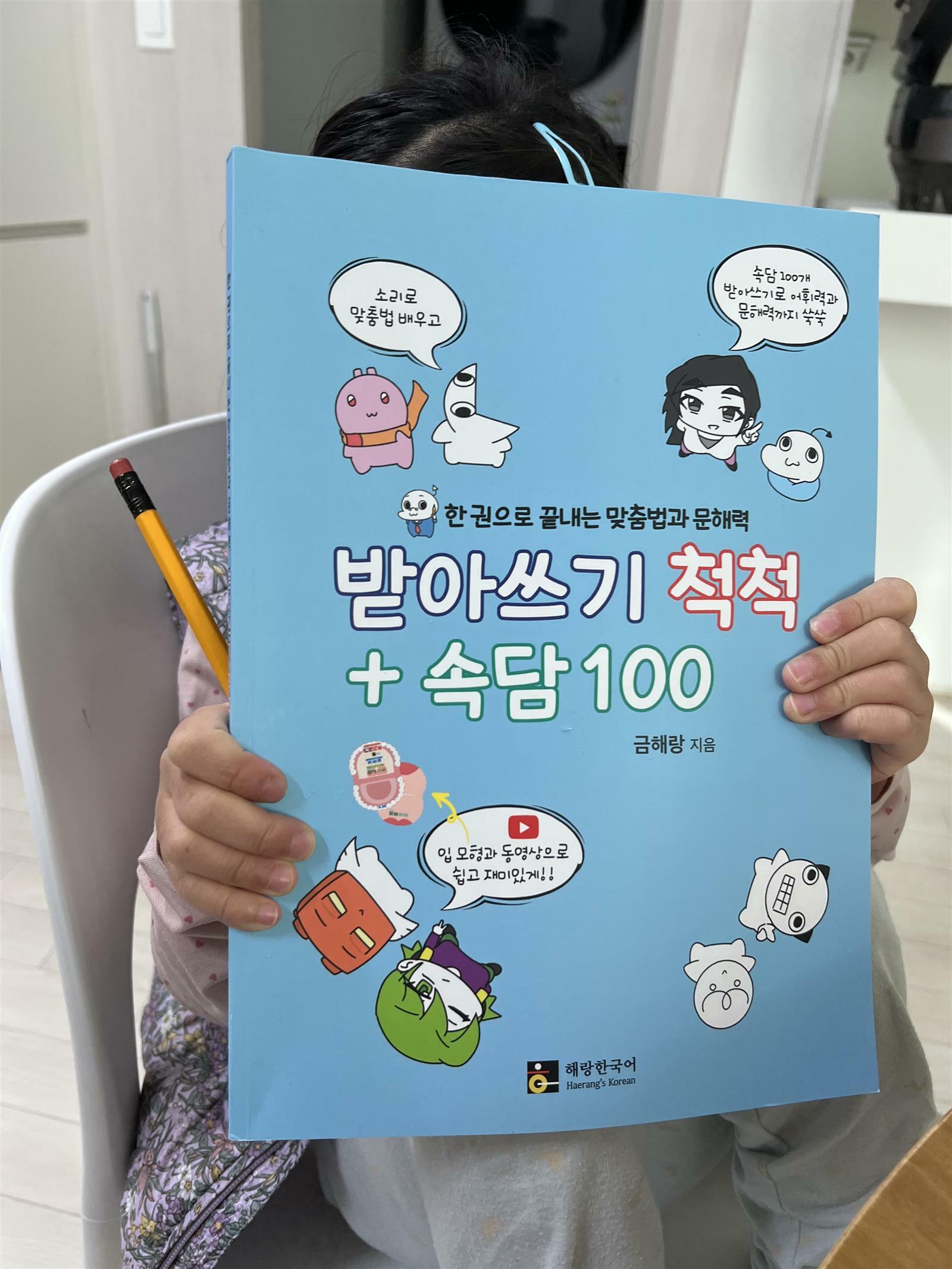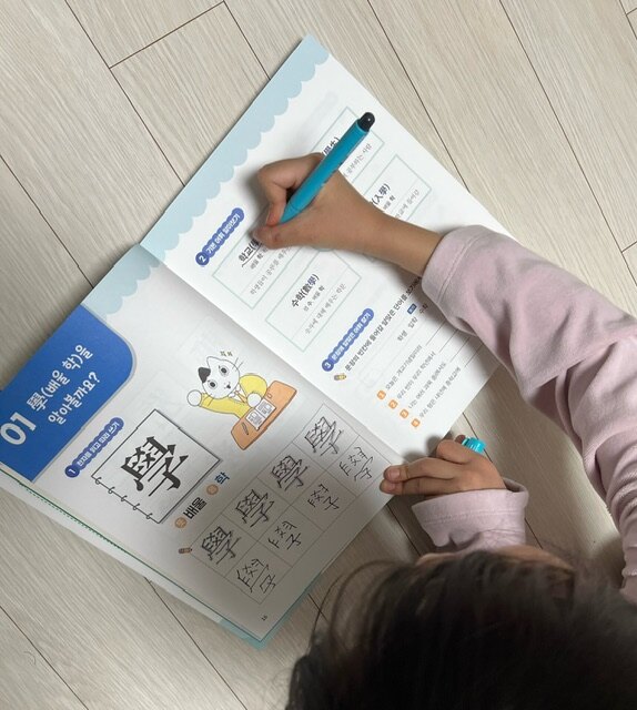 아이도 잠깐 책을 살펴보더니 펜으로 한자를 써보더라구요. 큼직한 칸이라서 저학년도 충분히 쓸 수 있습니다.