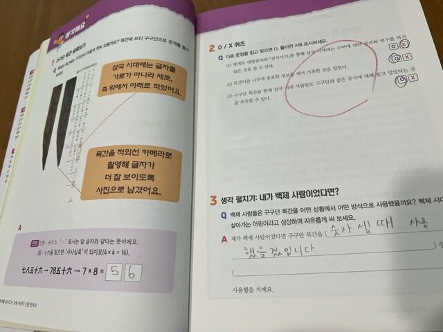 출판사로부터 도서를 제공받아 직접 읽고 작성한 리뷰입니다. 초등5학년이 되면 한국사를 공부하게 되는데 그 전에 조금씩 노출하는 것이 중요한 것 같아요. 제가 잘 모르는 것도 있어서 아이와 그림책으로 한국사를 보고 있어요. 이번 기회에 한국사 신문을 통해 좀 더 재미있고 깊이 있게 알 수 있는 계기가 되었습니다.초등 어린이 신문 한국사 책은 재미있는 주제로 아이들이 한국사에 대해 거부감 없이 받아 들이게 해줍니다. 아이와 주제릉 살펴보는데 제목들을 보더니 재미있어 하더라구요.호기심을 갖게 되니까 적극적으로 책을 보더라구요. 첫 내용은 구구단 이야기 입니다. 저도 보면서 신기하고 재미있더라구요. 백제 시대에도 구구단을 배웠다는 것이 아이에게 흥미를 주는 것 같았습니다. 초2라서 구구단 외우느라 조금 고생했는데 백제 사람들도 구구단을 했다는 것이 신기하고 공감 될 내용이었습니다.책을 통해 한국사 신문을 보게되니 새롭더라구요. 한 주제에 대한 분량은 두 장이라서 아이가 부담없이 읽고 간단한 문제를 풀어보았습니다. 신문 내용도 길지 않아서 초등 저학년부터 읽어보기 좋은 것 같습니다.다양한 주제들이 있어서 관심이 가는 것부터 해도 좋을 것 같더라구요. 처음 내용부터 시대순으로 되어 있는 것 은 아니라서 좀 더 가볍게 읽을 수 있습니다.한국사에 대한 노출이 있다면 좀 더 흥미로울 수 있고 관심을 보이게 될 것 같아요. 만약 초등 고학년이라면 이 책을 먼저 보면서 호기심을 불러일으켜서 한국사 공부를 해보게 하면 좋겠다는 생각을 했습니다.생각보다 어렵지않고 지루하지 않아서 초등학생이라면 함께 읽어보기 좋을 것 같습니다. 저도 아이와 일주일에 한두번 읽고 이야기 나눠보려고 합니다. 이번 겨울방학동안 즐겁게 한국사 신문 읽어 보시길 바랍니다.#책세상 #맘수다 #책세상맘수다카페 #교과서를넘나드는초등어린이신문 #한국사 #시대에듀