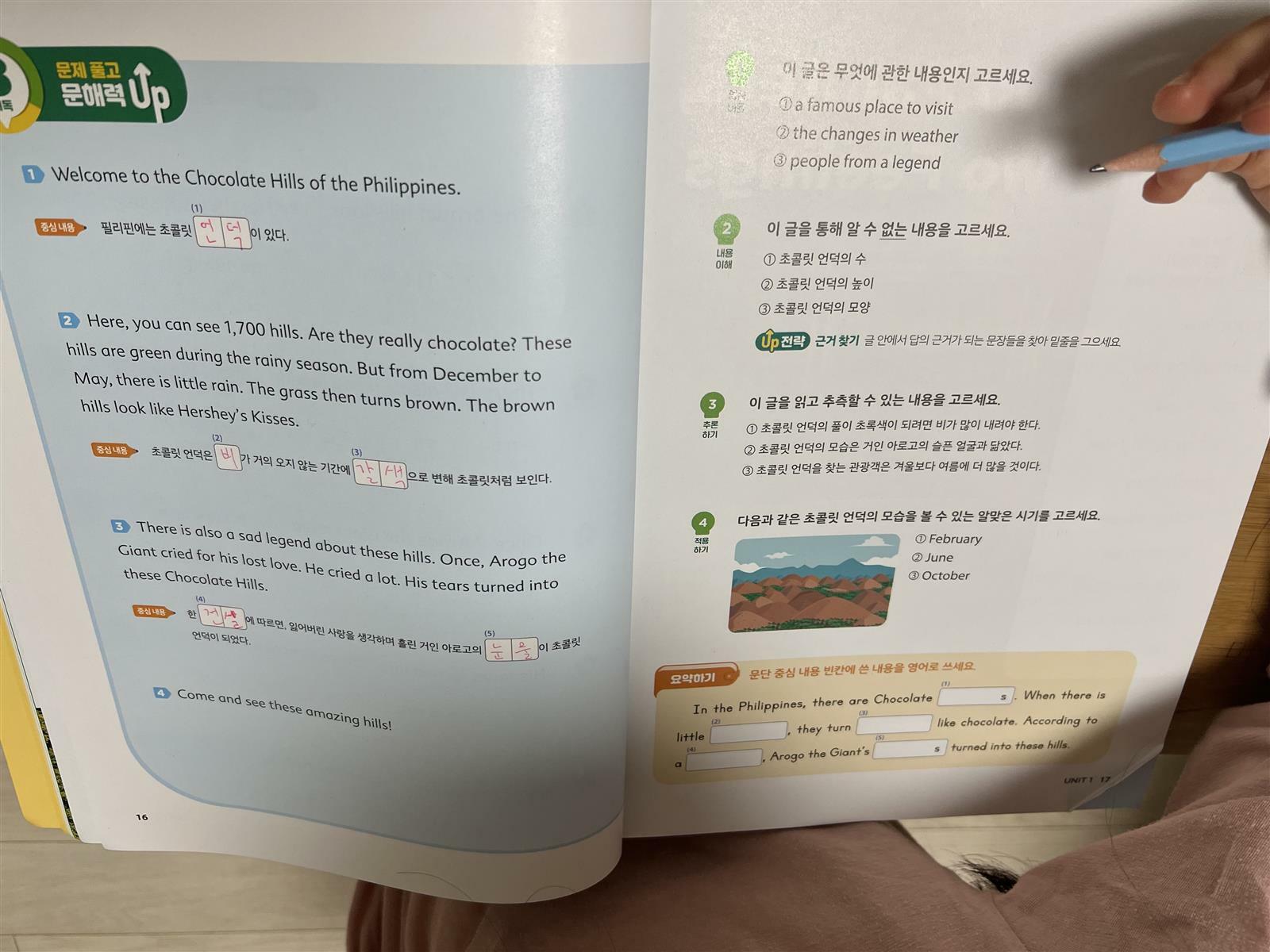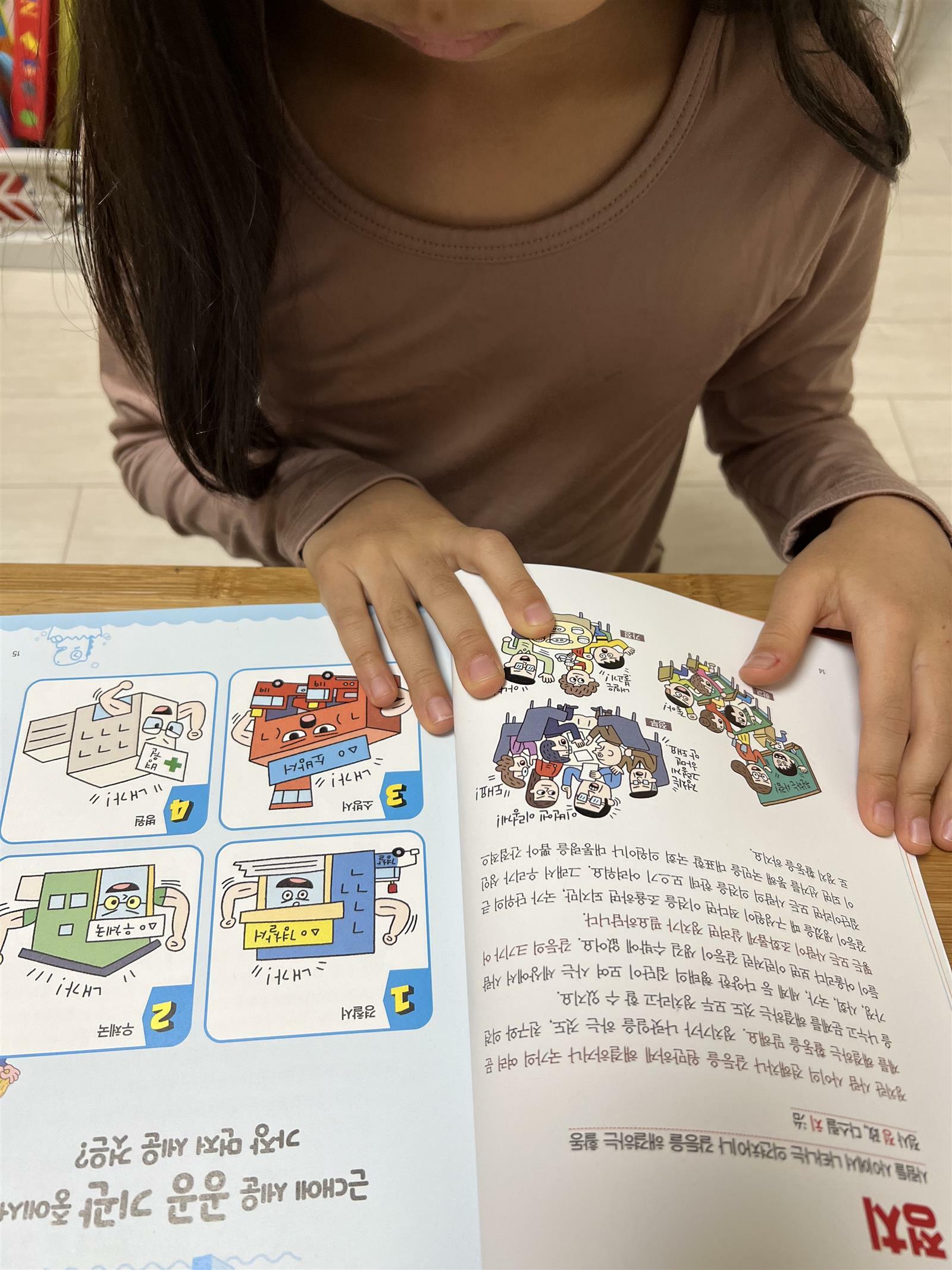 짧은 기사를 읽고 실사를 보고 나서는 퀴즈 문제를 통해 기사 내용을 잘 이해하도록 돕고 있습니다. 책상에 앉아서 하나씩 읽고 풀어도 좋지만 부담되지 않게 자기전에 기사 하나씩 읽고 엄마가 퀴즈를 내보는 것도 재미있을 것 같습니다.