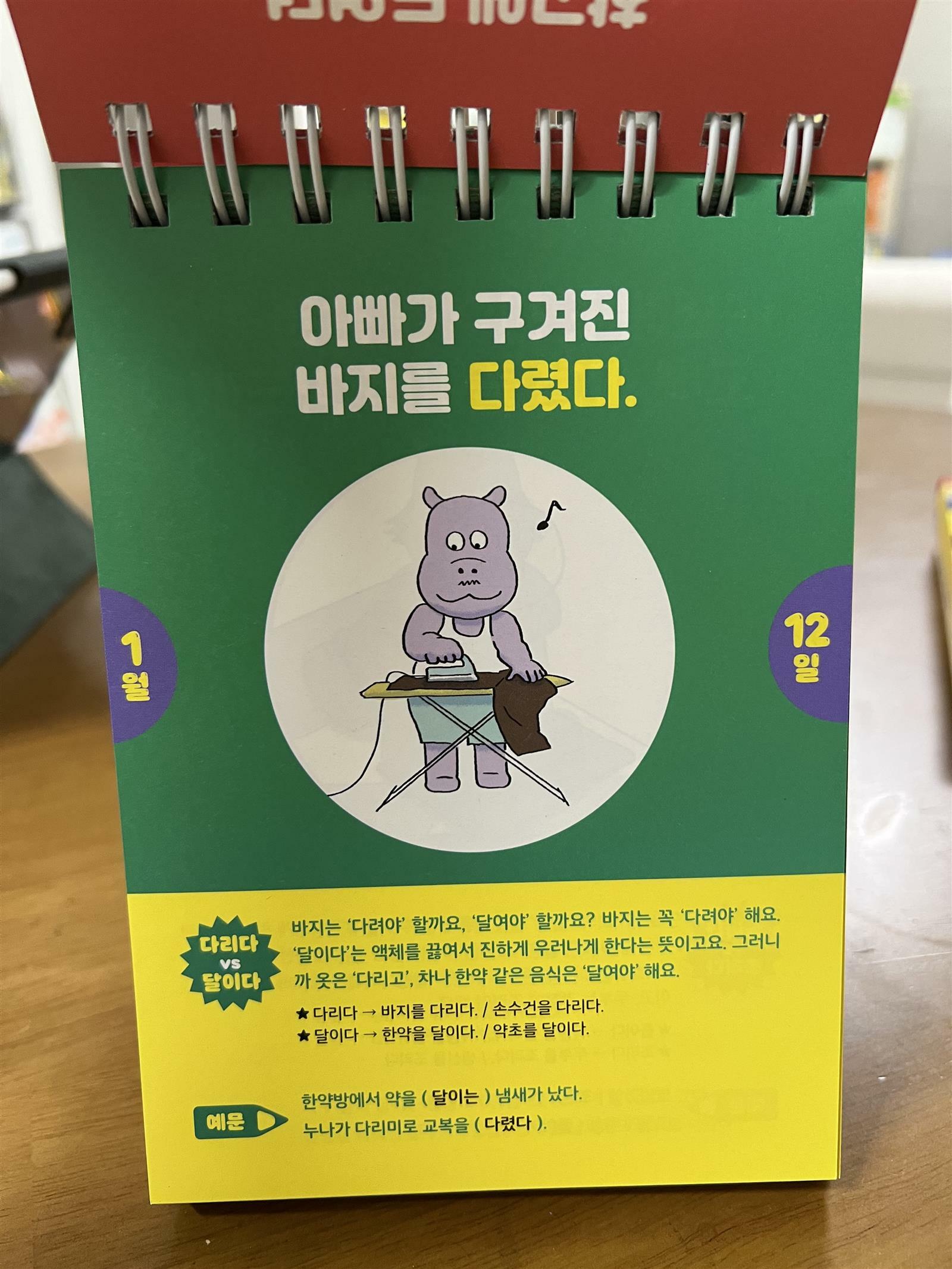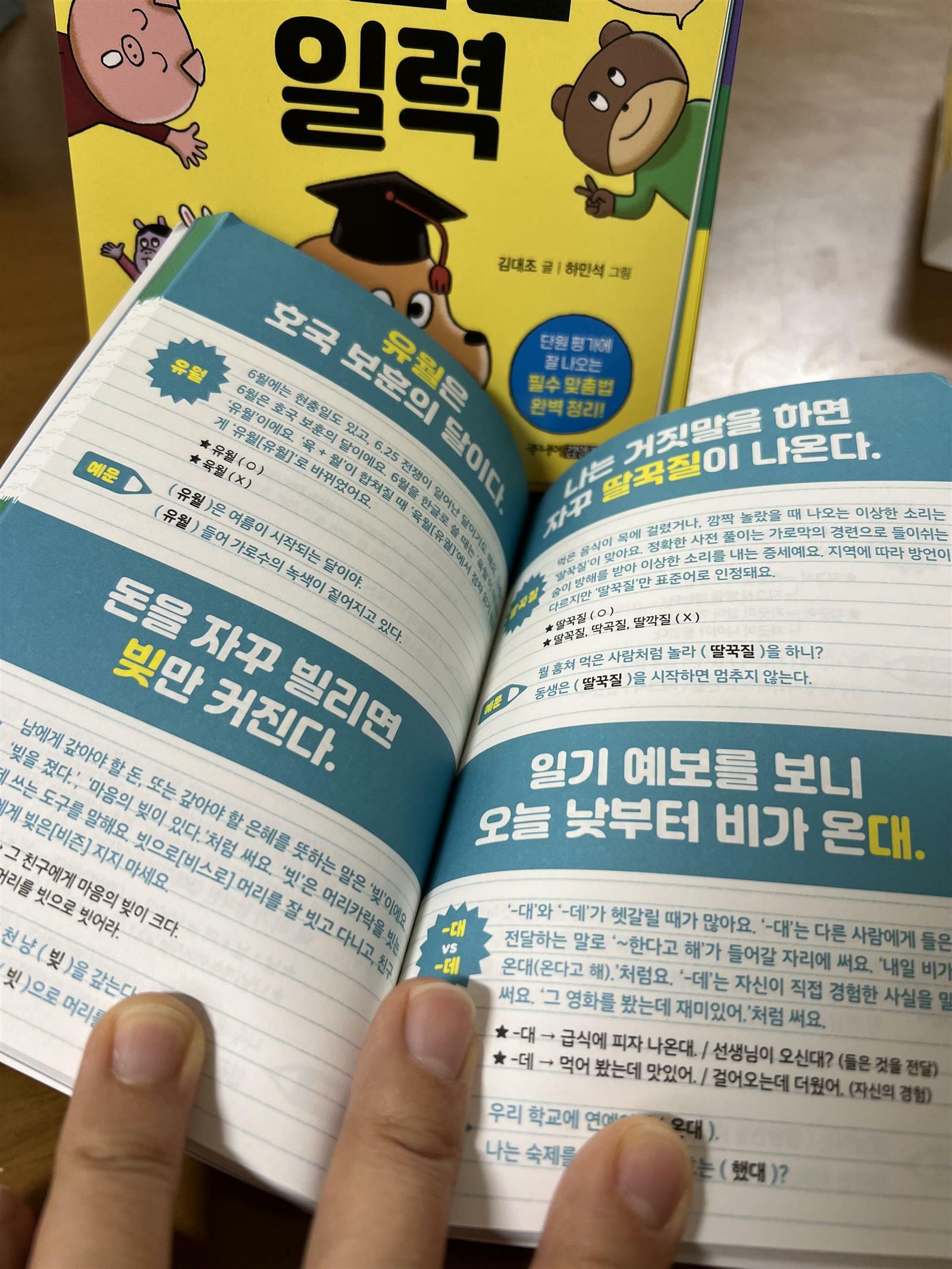 컬처블룸을 통해 출판사로부터 도서를 제공받아 직접 읽고 작성한 리뷰입니다. ‘국어 백점 맞춤법 일력’ 을 살펴보았습니다. 그동안 다양한 일력들을 봤는데 이번 일력은 미니북까지 있어서 더울 알차게 활용 할 수 있습니다. 일력의 순서대로 미니북에 나와 있으니 휴대용으로 딱 좋더라구요. 무엇보다 초등 국어 교과서 집필진이 쓴 일력이라 더욱 믿고 볼 수 있습니다. 아이들이 은근히 맞춤법 헷갈려하고 어려워 합니다. 맞춤법 규칙 같은 것은 암기해야 하지만 워낙 방대합니다. 아무래도 자주 노출하고 보는 것이 가장 좋은 공부법이 아닐까 생각해 봅니다. 일력을 펼쳐보면 그날 배울 내용과 그림이 있습니다. 한 눈에 들어오는 그림이라서 눈으로 보며 읽고 기억하기에 좋은 구조입니다. 내용도 간략해서 한 번 읽어보면 이해하기 쉽습니다. 매일 한장씩 별거 아닌 것 같지만 습관을 들이면 맞춤법을 정복 할 수 있겠더라구요. 7일마다 확인 문제들도 있어서 한 주간 배운 것들을 복습하고 기억해 보기 참 좋습니다. 부담스럽지 않은 양이라서 맞춤법 문제집 푸는 것 보다 아이들의 거부감이 덜 할 것 같습니다. 요즘 학교에서 매주 받아쓰기 시험을 보는 첫째랑 열심히 읽어보려고 합니다. 지속적으로 하다보면 어느새 나도 모르게 스며들 것 같네요. 받아쓰기에도 많은 도움이 될 것 같습니다. 초등 아이들이 있다면 맞춤법 일력 한 번 활용해 보시길 추천 합니다. 맞춤법 어려워 하는 아이들도 재미있게 겅부해 나갈 수 있을 것 같습니다. #국어백범맞춤법일력 #주니어김영사 #컬처블룸 #컬처블룸리뷰단 #김대조