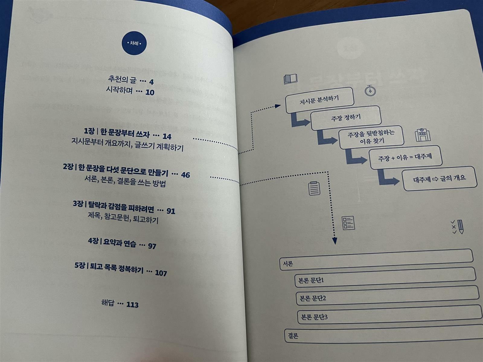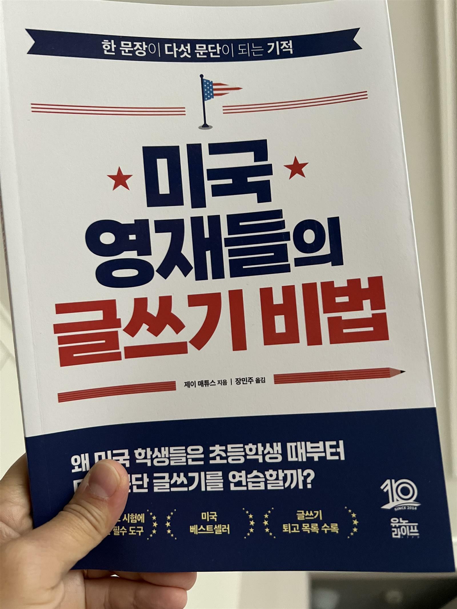 출판사로부터 도서를 제공받아 직접 읽고 작성한 리뷰입니다. 예전부터 글쓰기에 대한 갈망이 있었는데 이번에 좋은 기회로 글쓰기 책을 볼 수 있게 되었습니다. 이 책은 ’미국 영재들의 글쓰기 비법‘ 이라는 책인데 미국 학생들이 배우는 글쓰기 방법을 소개하고 있습니다. 미국 아이들은 초등학생 때부터 다섯문단 글쓰기를 한다고 합니다. 다섯문단 글쓰기는 어떤 것일까요?! 이 책의 표지를 보면서 궁금증이 생겼습니다. 한 장 넘겨보면 저자에 대한 정보를 알 수 있고, 차례를 볼 수 있습니다. 차례를 보면 참 간결합니다. 그만큼 책도 얇은 편입니다. 정말 글쓰기의 핵심만 담고 있다눈 생각을 했습니다. 처음부터 글쓰기를 잘 하면 참 좋겠지만 쉽지 않습니다. 독서를 많이 한다고 글을 술술 잘 쓰는 것도 아닌 것 같습니다. 이렇게 체계적인 방법을 알고 배워야 하는 것 같더라구요. 저부터 이 책을 보며 어떻게 글을 써야 하는지 알 수 있어서 좋았습니다. 질문을 파악하고, 어떤 주제릉 집고 근거를 가지고 써나가야 하는지 정말 차근 차근 알려줍니다. 나부터 배워가면서 아이와 함께 글쓰기를 해보고 싶더라구요. 이 책은 소장해서 자꾸 읽어가며 내 글쓰기를 점검해 보기 좋습니다. 책 내용대로 따라가다보면 어느새 글쓰기에 자신감을 붙을 것 같습니다. 책 내용은 방법을 알려주고 예시를 들어가면서 직접 써보도록 하는 것이 많습니다. 그래서 저도 한 예문을 써 보았습니다. 아이들과 할 때는 먼저 입으로 밀해보기부터 해 보면 좋다고 합니다. 일단 내 생각을 정리하고 요약해서 써나가는 것이 중요 합니다. 큰 틀을 어떻게 잡아 가는지 꼼꼼하게 알려주는 책이라서 글쓰기 학원. 대신 이 책을 교본삼아 연습해보는 것도 좋을 것 같습니다. 예문에 대한 정답도 뒷편에 나와 있으니 참고하기 좋더라구요. 막상 처음 써보려고 하면 생각이 나지 않거나 엄두가 나지 않습니다. 그럴 때 답을 활용해서 생각을 넓혓 가며 시작해도 좋을 것 같네요. #미국영재들의글쓰기비법 #유노라이프 #책세상 #맘수다 #책세상맘수다카페