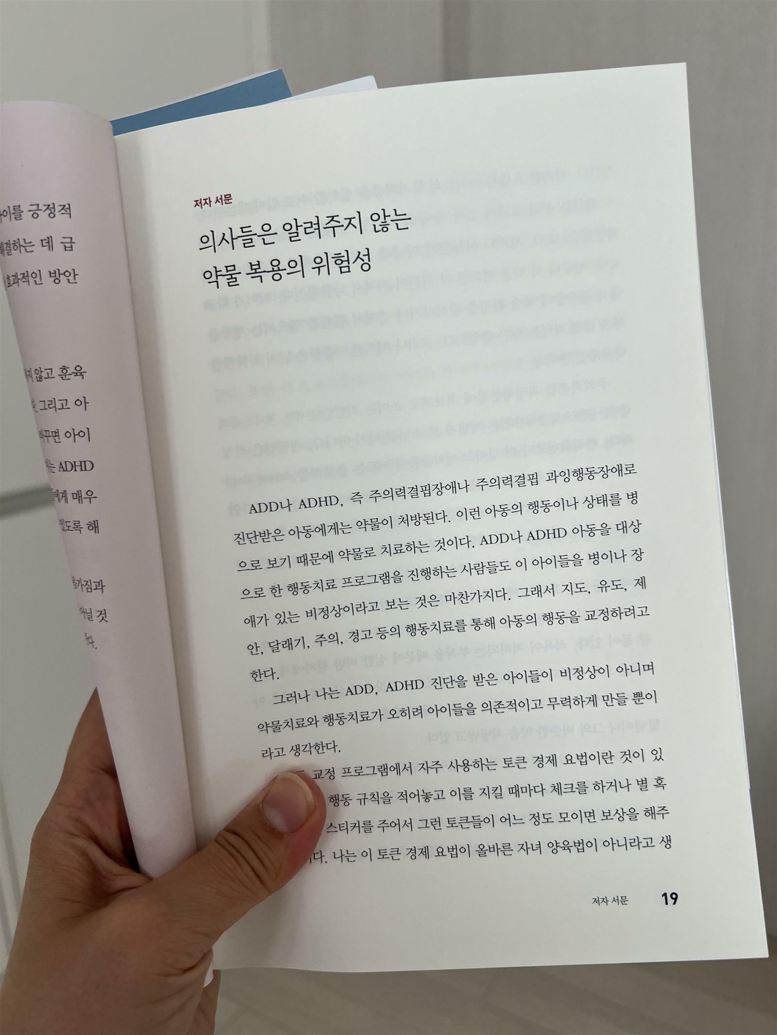 ‘ADHD는 병이 아니다’ 책을 읽어 보았습니다. 이 책은 직접 아이들을 키우고 치료한 정신과 의사의 책입니다. 자신의 아이들도 adhd 진단을 받아서 약을 복용했지만 지금은 행동치료를 통해 약물은 끊었다고 합니다. 이 책의 저자는 약물은 필요 없다고 말합니다. 약물의 부작용은 생각보다 심각하고 아이들도 호전되기 힘들다는 이야기릉 하고 있습니다. 그렇다면 어떻게 아이들을 훈육해야 하는 것일까요? 궁금증을 가지고 책을 읽어 보았습니다. 품행장애 아이들의 고쳐야 하는 행동들에 대해 어떻게 대처하고 훈육해야 하는지 자세히 나와 있습니다. 이러한 훈육법에서 가장 중요한 것은 부모의 믿음과 무한한 사랑입니다. 훈육에서 처벌은 해당되지 않습니다. 아이들이 스스로 생각하도록 만들어주는 방법응 사용합니다. 무시하기와 타임아웃은 어디서 들어보았던 방법인데 이 책을 통해 정확한 방법을 알 수 있었습니다. 꼭 품행장애나 adhd가 아니더라도 아이들의 문제행동을 고치기 위해 사용한다면 좋을 것 같다는 생각을 했습니다. 이러한 방법들 뒷편에는 아이가 칭찬을 받을 만한 행동에 즉각적인 사회적 강화가 필요합니다. 그 어떤 보상보다 효과적이고 필요한 것이 바로 사회적 강화입니다. 저자는 평소 부모의 칭찬과 사랑을 듬뿍 받은 아이는 문제행동응 하지 않는다고 합니다. 그러고 보면 우리 아이들은 참 칭찬을 좋아합니다. 그만큼 칭찬에 목말라 있다는 뜻이겠지요? 약물을 빠른 효과를 보려고 하기보다 이 책을 통해 아이들의 마음을 헤아리고 올바른 훈육을 해나가는 것이 중요한 것 같습니다. 이 리뷰는 컬처블룸을 통해 출판사에서 도서를 제공받아, 직접 읽고 작성한 리뷰입니다. #컬처블룸 #컬처블룸리뷰단 #전나무숲 #ADHD는병이아니다