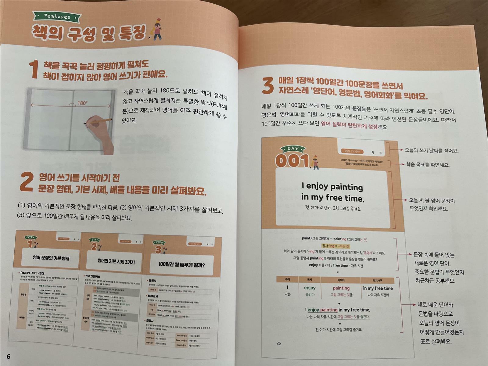 ‘매일1장 초등영어 쓰기 습관 100일의 기적’ 교재를 살펴보았습니다. 매일 1장 초등 영어 쓰기 교재는 3단계 레벨로 구성 되었는데 제가 소개해 드릴 교재는 마지막 단계 ‘Advanced' 입니다. 그래서 영어 수준을 중1까지 올리는 단계라서 조금 어려울 수 있습니다. 하지만 초등 고학년의 경우 책에서 제시하는대로 차근 차근 따라하면 잘 습득 할 수 있습니다. 이 교재는 매일 한장 공부합니다. 한 장안에 꼭 배워야 하는 내용이 있어서 아이가 집중해서 공부한다면 100일동안 초등 영어 잘 정리하고 입력 할 수 있습니다. 조금은 어려울 수 있는 문법들을 문장 속에서 배우고 단어도 정리해 나갈 수 있다는 점이 좋습니다. 매일 공부 할 때마다 튜알로 직접 듣기도 하면서 오감으로 익히고 배울 수 있는 교재입니다. 교재 초반에 앞으로 배워나가야 하는 것들을 단계별로 잘 정리되어 있습니다. 교재를 나가기에 앞서서 정리하고 알아두어야 할 내용도 한장으로 정리되어 있습니다. 한 눈에 내가 공부해 나가야 하는 내용을 볼 수 있다는 점이 장점입니다. 복습 할 때에도 정리된 내용을 보면서 내가 직접 설명해 본다면 잘 소화 시킬 수 있을 것 같네요. 일단 하루 분량이 적도 일일 체크 하는 체크표도 있어서 자기 주도로 충분히 할 수 있습니다. 매일 영어를 접하고 듣고, 쓰는 것이 정말 중요 한 것 같습니다. 확실히 언어라서 더 많은 노출과 관심이 필요 한 것 같네요. 초등 고학년 아이들이 공부하기에 참 좋은 것 같아서 추천합니다. 출판사로부터 도서릉 제공받아 직접 읽고 작성한 리뷰입니다. #시원스쿨닷컴 #매일1장초등영어쓰기습관100일의기적 #초등영어끝내기 #컬처블룸 #컬처블룸리뷰단