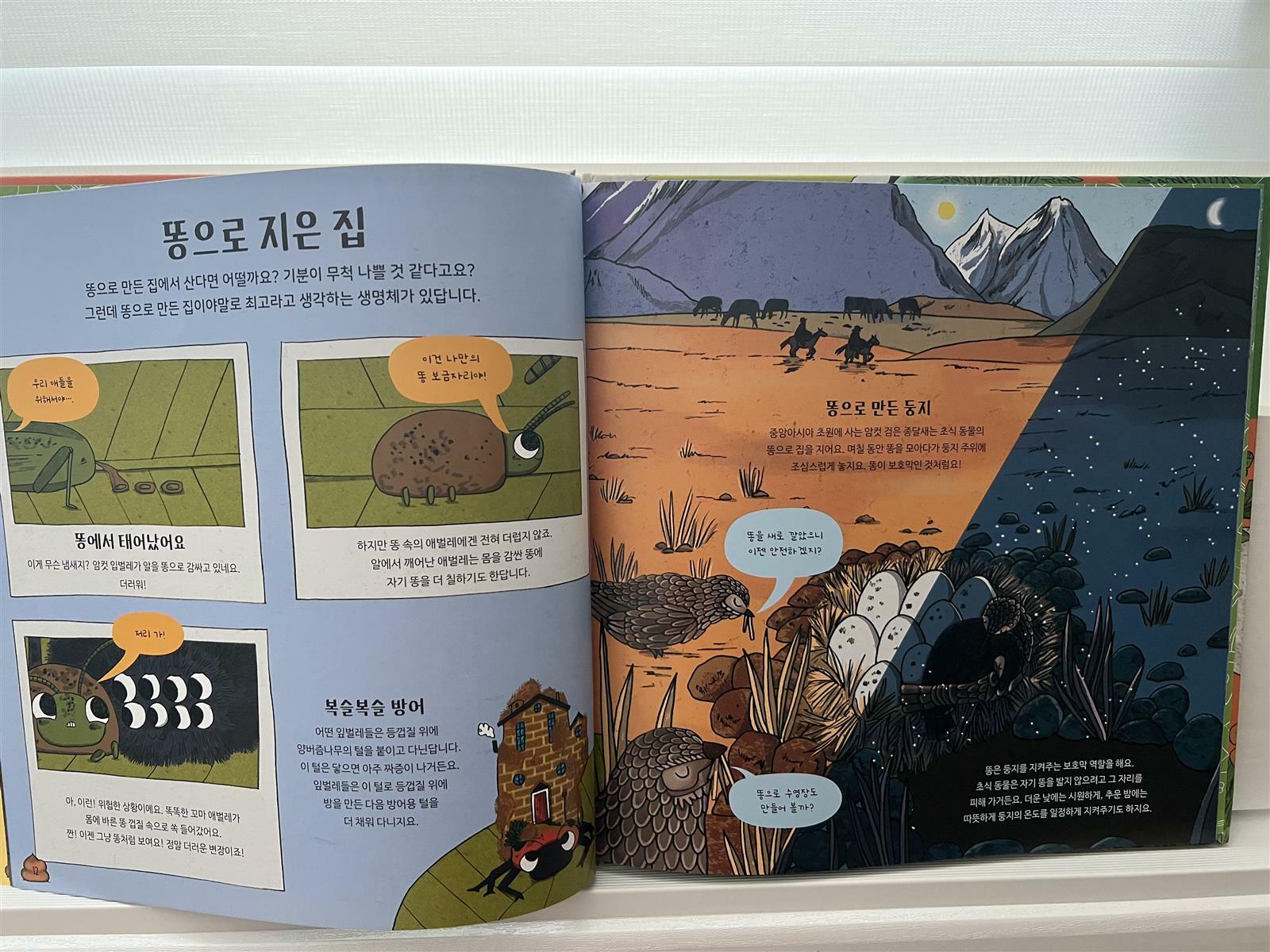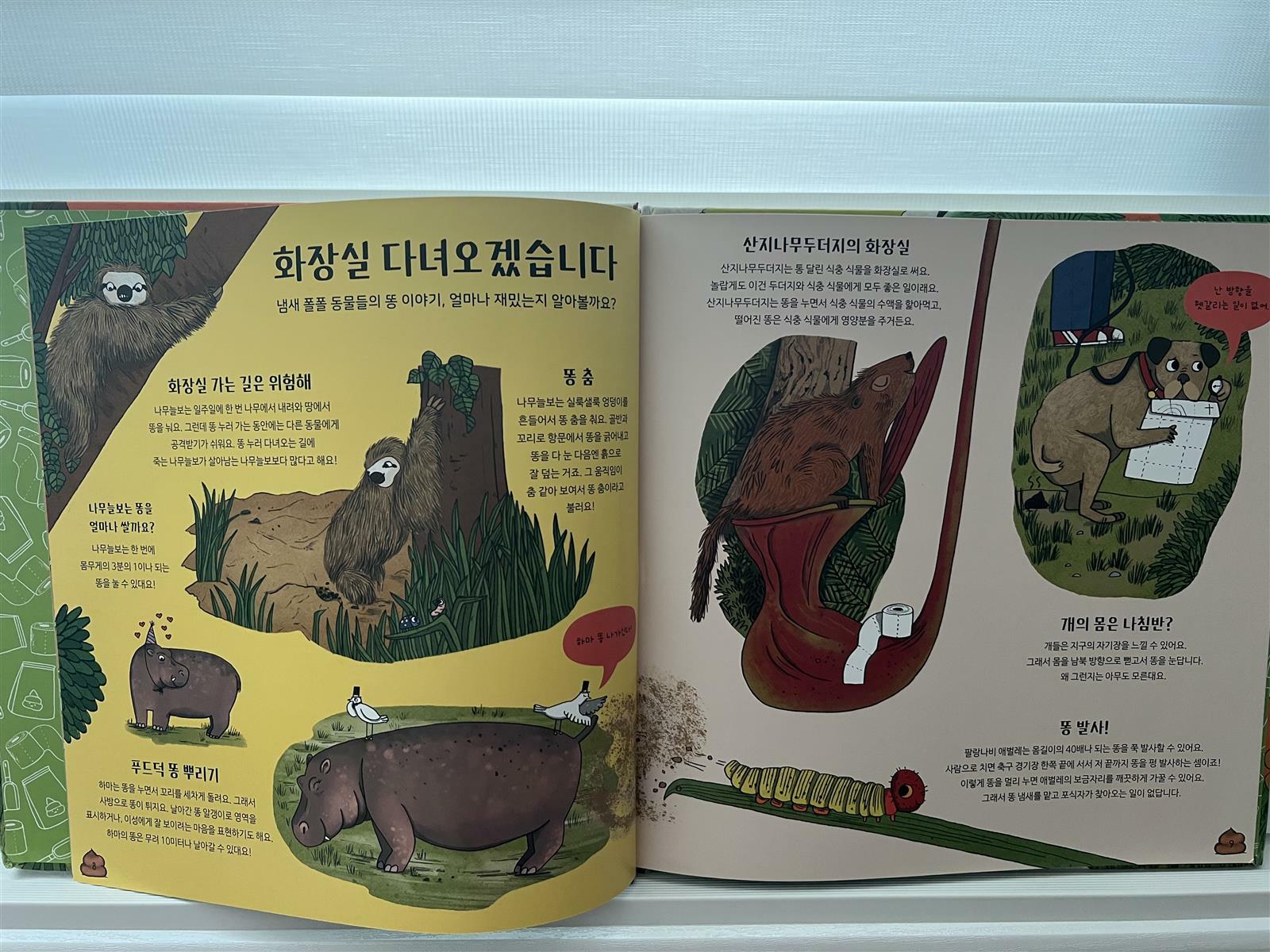 피카주니어 출판사로부터 도서를 제공받아 직접 읽고 작성한 리뷰입니다. ‘슈퍼 똥쟁이들’ 책을 보았습니다. 똥이야기를 무척 좋아하는 아이들과 함께 보면 참 유익한 책입니다. 단순한 똥이야기가 아닌 실제로 동물들의 배변이야기와 똥의 활용도에 대해 알 수 있는 책입니다. 그림책 형태의 큰 판형이라서 그림도 자세히 보면 읽기 좋습니다. 차례를 보면 다양한 동물들의 배설 습관을 알려줍니다. 나무늘보는 배설하는 동안 적들로 공격받아 죽는 경우가 많다고 합니다. 하지만 살기위해 싸야 하니 죽음을 무릎쓰고 나무 아래로 내려오는 것이겠죠? 새로운 사실들을 하나 하나 알아가는 재미가 있는 책입니다. 다양한 곤충들의 배설 이야기도 나오는데 참 신기합니다. 동물들의 이야기를 살펴보다보면 똥의 활용에 대한 이야기도 나옵니다. 다들 잘 아는 코끼리 똥으로 종이를 만드는 이야기부터 똥을 먹는 동물들 이야기까지 참 다양합니다. 지루할 틈이 없이 재미있게 읽으면서 배경지식을 쌓을 수 있는 책입니다. 보통 유아때부터 똥이야기 좋아하는 아이들이 많습니다. 저희집 아이는 초등학생인데도 아직도 똥 책이라면 좋아하더라구요. 유아들부터 초등아이들까지 함께 보면서 이야기 나누기 좋은 책입니다. 책을 보다 생긴 궁금증도 한번 찾아보고 똥에 대한 나의 아이디어도 생각해 보면 좋을 것 같더라구요. 책을 넘기다보니 똥으로 그림을 그린 예술작품도 있다고 해서 깜짝 놀랐습니다. 똥으로 전기도 만들고, 다양하게 활용되는 이야기가 신기하더라구요. 뭔가 쓸모없을 것 같은 똥의 활용도가 무궁무진 하다는 것을 통해 아이들의 호기심과 창의성이 샘솟을 것 같습니다. 책 제목처럼 알면 알수롣 신기한 동물들의 똥 이야기에 아이들과 한번 푹 빠져보시길 추천합니다. #책세상 #맘수다 #책세상맘수다카페 #피카주니어 #슈퍼똥쟁이들
