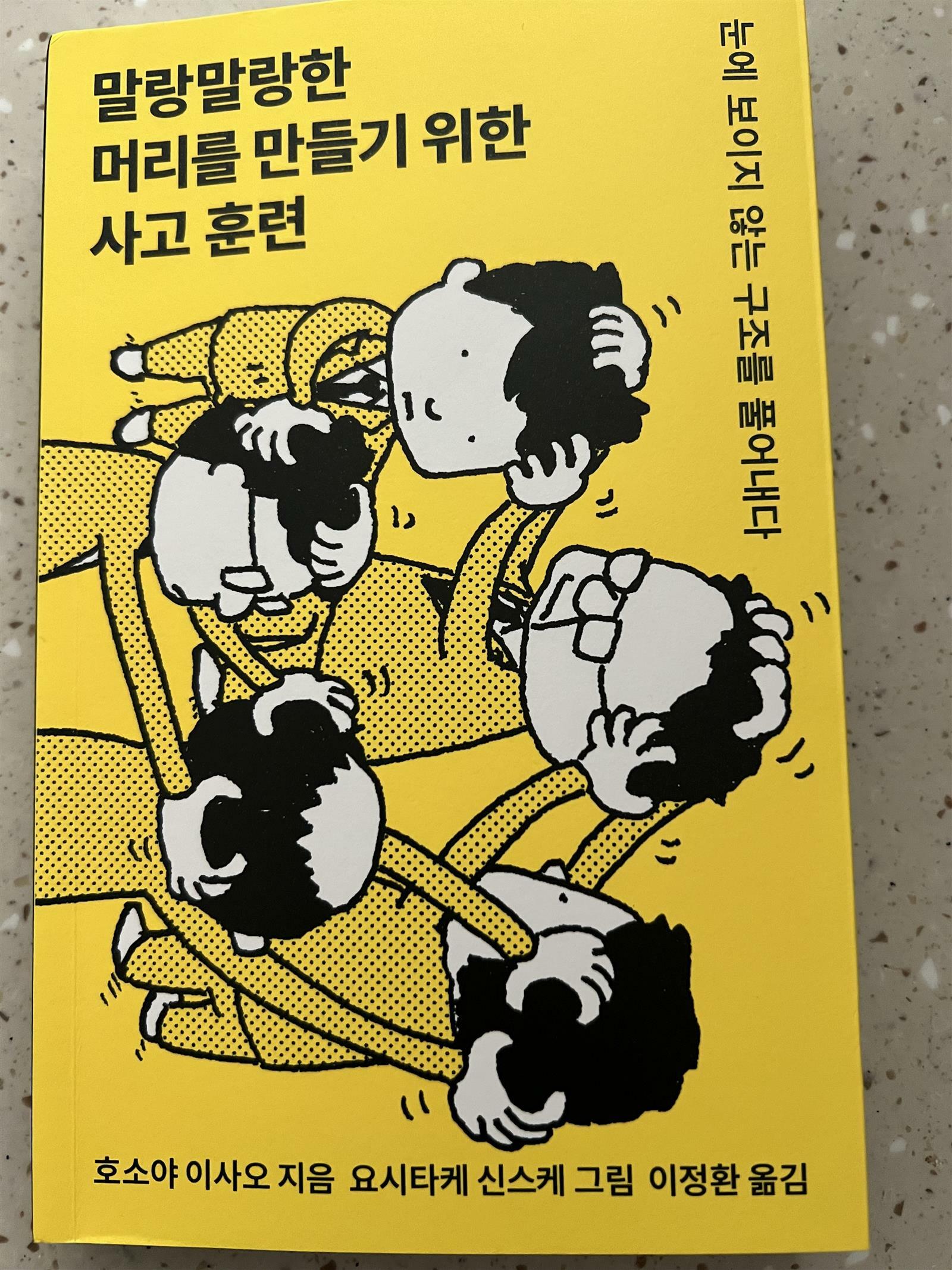 출판사로부터 도서를 제공받아 직접 읽고 작성한 리뷰입니다. '말랑말랑한 머리를 만들기 위한 사고 훈련' 책을 읽어 보았습니다. 한 손에 들어오는 노란색 표지가 마음에 드는 책입니다. 책 제목도 나의 사고를 훈련 시키다는 것이 궁금해지더라구요. 이 책은 요시타케 신스케 그림이라서 더 반가운 책입니다. 아이들 그림책 중에 요시타케 신스케 그림책이 참 신선하고 재미있었던 기억이 있기 때문이죠. 요시타케 작가의 그림체가 잘 들어나서 재미있게 볼 수 있었습니다. 이 책은 총4개 챕터로 구성되어 있습니다. 구성된 소제목들만 보면 내용이 어떨지 상상이 잘 가지 않더라구요. 그 중에서 물리법칙으로 이해하는 생각의 메커니즘 챕터 내용이 가장 흥미로웠습니다. 물리법칙과 생각을 연결시켜서 생각하다는 것이 쉽지 않은데 저는 전혀 생각하지 못한 이야기를 읽게 되니 재미있더라구요. 막상 읽어보면서 이해가 가는 부분은 더욱 신기하기도 했습니다. 왜 머리를 말랑말랑하게 하는 사고 훈련의 책인지 알 수 있었습니다. 그동안 미처 생각하지 못한 것들을 생각하게 하는 책이라서 자주 읽으면서 머릿속에 새겨야 겠더라구요. 어떤 틀에만 갇혀서 살아왔던 것 같아 아쉽기도 했습니다. 하지만 이제부터라도 이 책에서 알려주는 사고 훈련을 해야 할 것 같습니다. 좀 더 다른 사고를 함으로서 하루 하루의 삶이 더 의미있어 지는 것 같습니다. 조금은 색다른 생각과 사고를 넓히고 싶으신 분들에게 적극 추천드리고 싶습니다. #말랑말랑한머리를만들기위한사고훈련 #호소야이사오 #요시타케신스케 #이정환 #컬처블룸 #컬처블룸리뷰단