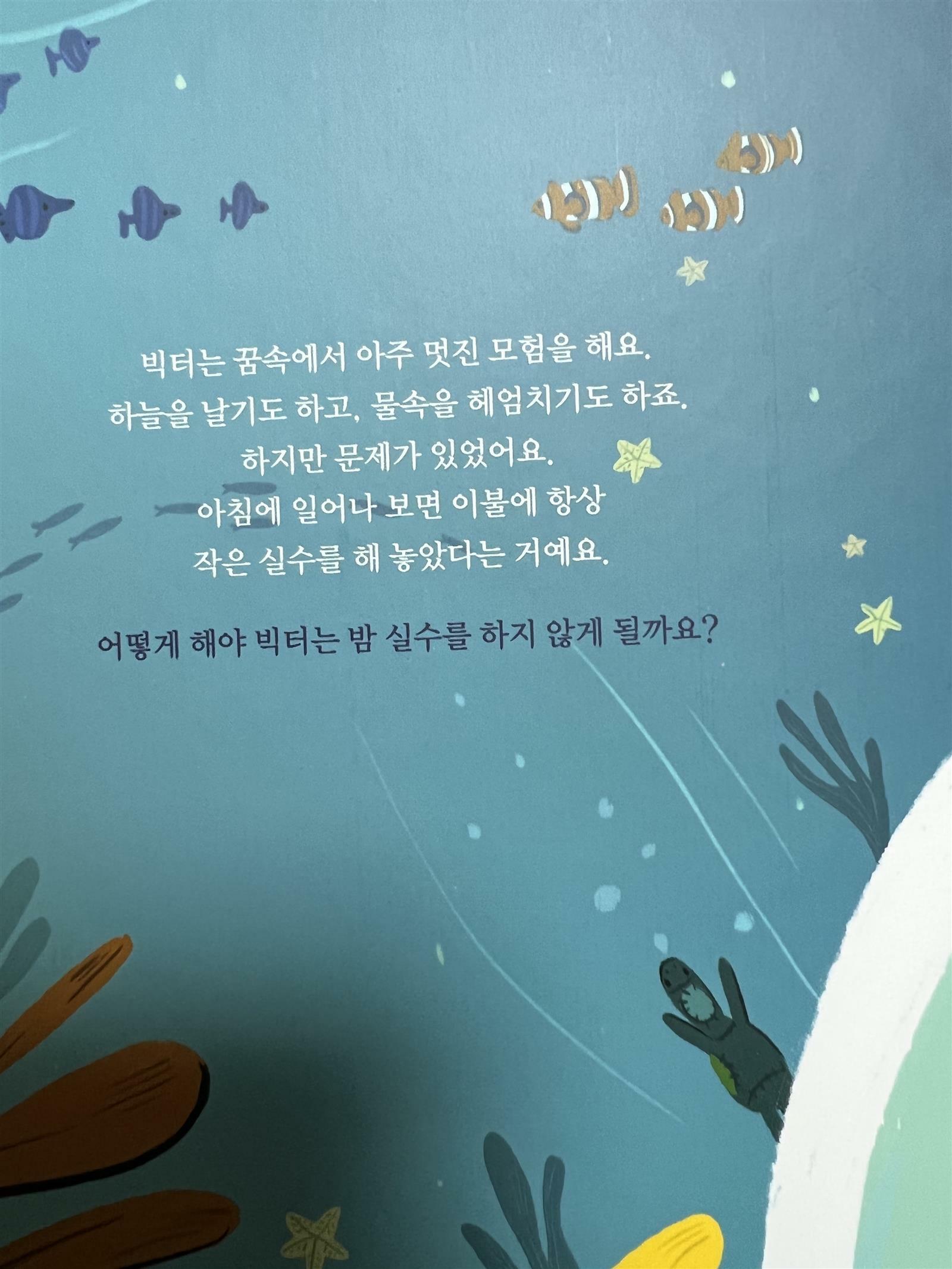 '밤에 한 작은 실수' 그림책을 보았습니다. 작은 실수와 밤이라는 시간을 보고 힌트를 얻을 수 있을 것 같아요. 작은 실수는 어떤 것일까요? 저희 집 아이도 이런 실수를 자주 합니다. 그럴때 어떻게 대처해야 하는지 사실 부모로서도 난감하지요. 이 그림책은 아이와 부모에게 같은 방향으로서 대처법을 제시해 주고 있습니다. 자연스럽게 잠을 자고 꿈을 꾸는 빅터의 모습을 통해 작은 실수도 어쩌면 자연스러운 과정이라는 것을 말해주는 것 같아요. 아이가 커가는 과정의 한 부분으로 작은 실수는 어떻게 대처하는지가 중요한 것 같습니다. 빅터의 다양한 꿈을 자세히 묘사해주는 책입니다. 책을 읽으며 빅터처럼 실수하는 아이들은 큰 공감을 할 것 같아요. 꿈이라는 세상은 아이의 희망과 모험이기도 하지만 우리의 무의식을 나타내주기에 오줌이 마려운 상황을 알려주기도 합니다. 하지만 아직 어린아이는 꿈의 메시지를 알아채기는 어렵지요. 그저 해맑게 꿈에서 영웅이 되는 것이 좋을 것 같습니다. 그게 바로 어린아이이기도 하지요. 자꾸 실수하는 빅터는 작아지기만 합니다. 하지만 빅터의 엄마는 빅터에게 혼을 내거나 나무라지 않습니다. 빅터에게 어떻게 대처해야 하는지를 알려줍니다. 다음부터 빅터는 임무를 수행하듯이 자신의 실수를 제대로 처리합니다. 세탁기에 직접 이불과 옷을 넣고 다시 제자리로 오는 것이지요. 이러한 대처법을 보고 조금 놀랐습니다. 솔직히 생각해보지 못했기 때문이죠. 하지만 빅터는 자신의 실수를 직접 해결하고 꿈도 조금 바뀌기 시작하면서 점차 성장하게 됩니다. 어느날 눈을 떳을 때 보송보송한 자신의 이불을 느끼며 빅터는 어떤 생각을 했을까요? 밤에 한 작은 실수를 멋지게 표현해주는 그림책 인 것 같습니다. 아이들과 읽어보며 공감하고 대처하는 방법을 배우기에 좋은 것 같아 추천합니다. 출판사로부터 도서를 제공받아 직접 읽고 작성한 리뷰입니다. #책세상 #맘수다 #책세상맘수다카페 #밤에한작은실수 #풀빛