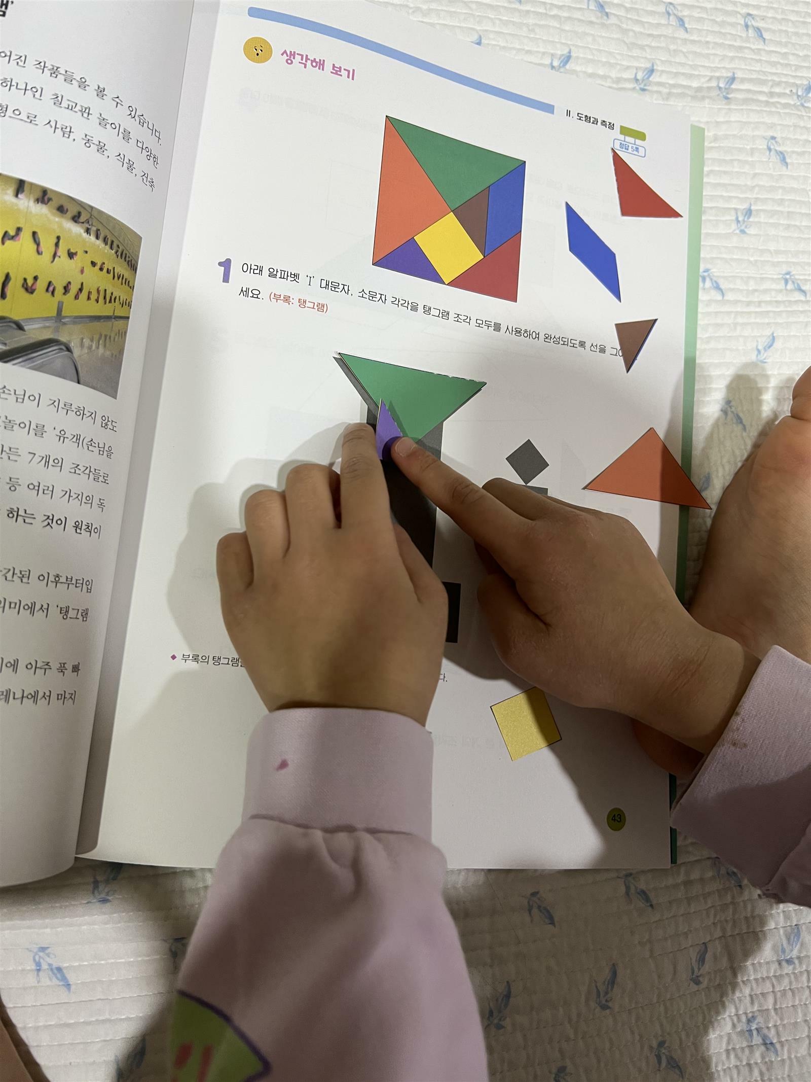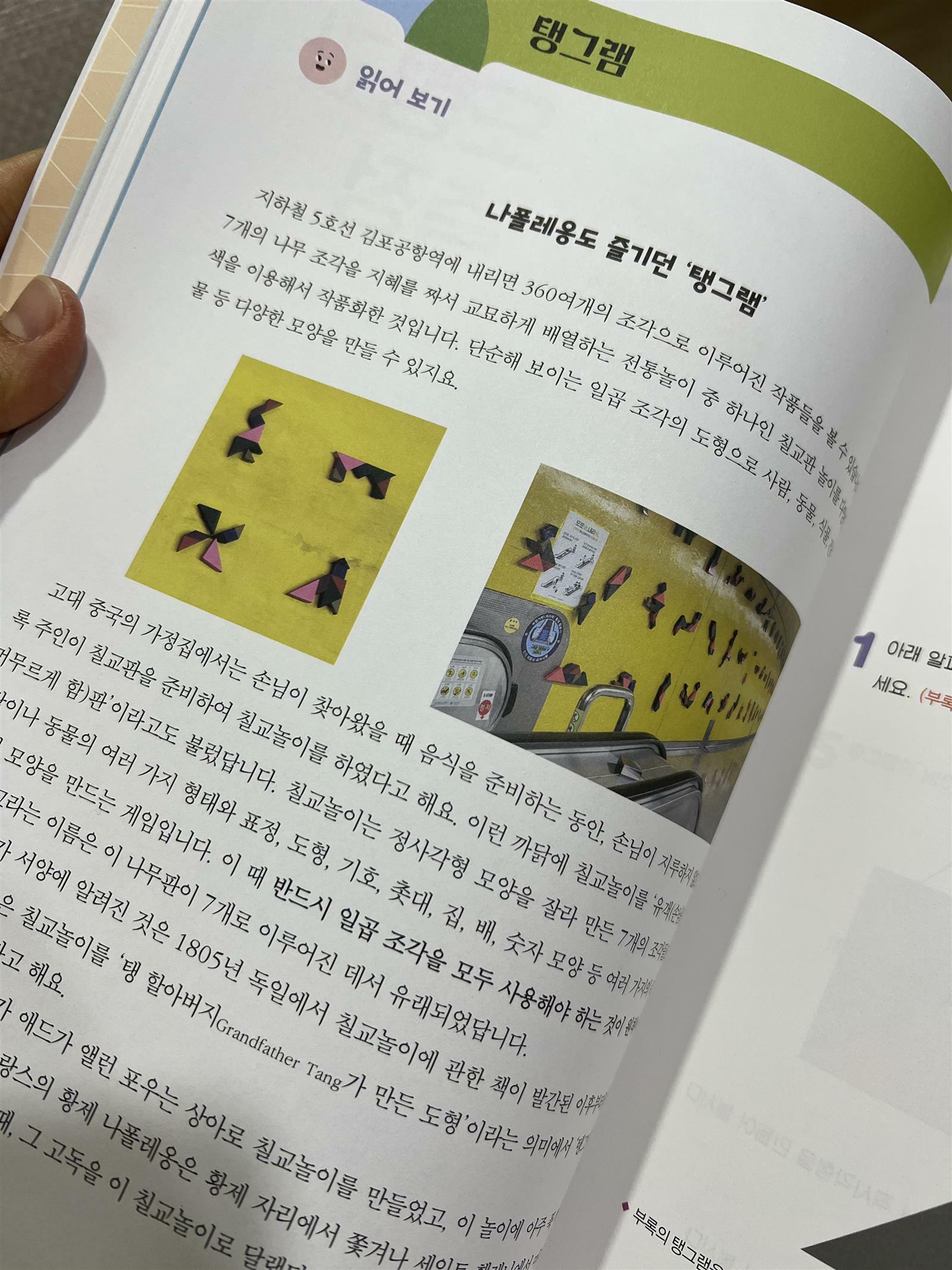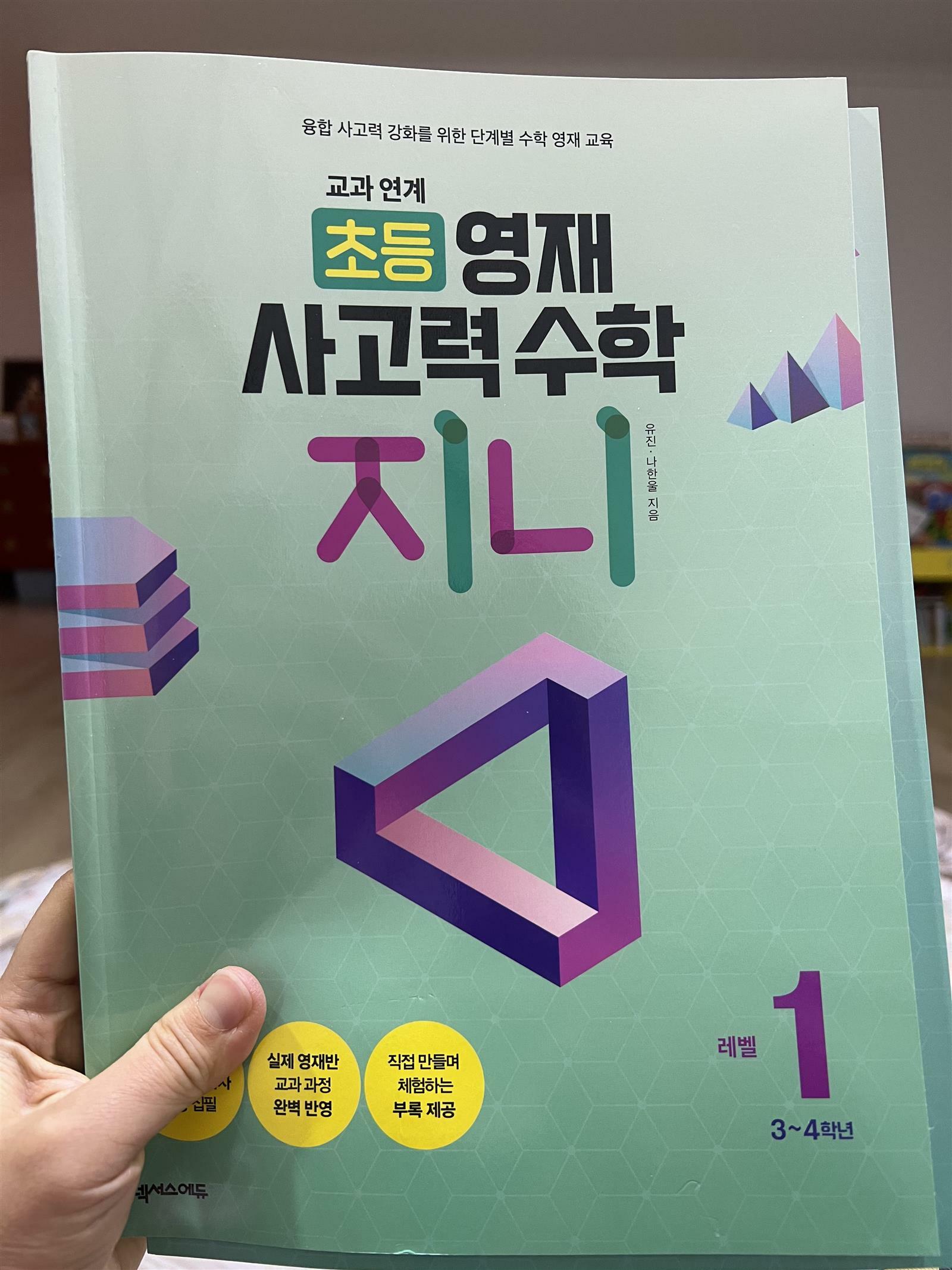 '초등 영재 사고력 수학 지니' 레벨 1단계를 아이와 보았습니다. 교과연계하여 수학을 좀 더 깊이있게 알아 갈 수 있는 책입니다. 현직 교사와 서울대 박사의 공동 집필이라서 믿고 볼 수 있는 책인 것 같아요. 문제집과 책을 합쳐놓은 듯합니다. 그냥 문제만 나열 된 것이 아니라 관련된 이야기와 함께 수학적 사고가 실제로 반영되는 것을 접해 볼 수 있습니다. 이 책은 실제 영재반 교과과정을 완벽하게 반영하고 있습니다. 책에서 문제 풀이를 위해 필요한 부록 교재도 함께 있어서 직접 만져보고 맞춰 볼 수 있으니 이해하는데 도움이 많이 됩니다. 책의 처음 파트는 수와 연산입니다. 이집트 숫자를 예로 들어서 호기심을 자극하는 그림들이 있습니다. 그림을보면 신기하고 호기심을 불러 일으킵니다. 그리고 어떠한 규칙을 가지고 적어보는지 고대 이집트 시대를 경험하는 문제같있습다. 저도 한참을 보며 생각했어요. 아이들이 사고 할 수 있도록 깊이있는 문제들이 많이 있는 것 같습니다. 일반 사고력 문제집과 심화 문제집보다 좀 더 난이도가 있는 것 같아요. 적정연령이 3-4학년인데 학년에 맞춰서 풀어보는게 좋을 것 같더라구요. 저는 아이와 도형 부분을 풀어 보았습니다. 탱그램이 가장 먼저 나옵니다. 평소에 아이와 칠교를 가끔 해보았는데 칠교의 다른 이름이 탱그램이더라구요. 단순히 칠교 맞추기 문제만 있는 것이 아니라 탱그램이란 이름의 유래를 설명해주고 있어서 좋은 것 같습니다. 나폴레옹도 즐기던 탱그램을 아이와 해보니 어느새 저도 집중하게 되더라구요. 부록에서 탱그램을 잘라서 직접 해 볼 수 있으니 집에 탱그램이 없어도 해 볼 수 있습니다. 부록 종이는 조금 두꺼운 재질이라서 큰 어려움 없이 아이가 해 볼 수 있습니다. 잘 찢어지는 종이가 아니라 보관 했다가 가끔 사용해보아도 될 것 같아요. 뒷 부분을 넘겨보면 펜토미노가 나옵니다. 아이와 다른 교재로 펜토미노를 해 본 적이 있는데 그동안 생각해 보지 못한 접근을 하는 문제들이라서 좀 더 어렵기도 했습니다. 아직 아이가 어리기는 하지만 이런 문제들을 조금씩 접해보면서 수학적 사고를 하더록 돕는 것이 중요 한 것 같아요. 영재반을 준비하는 아이들이라면 1단계부터 차근차근 풀어보며 준비해도 좋을 것 같습니다. 문제는 많지 않지만 실제 사용되는 것들을 수학적으로 풀어내고 설명하는 부분들이 남다른 것 같습니다. 좀 더 깊이 생각하게 도와주는 것 같아요. 자료와 가능성이라는 파트에서는 영양소에 관한 이야기와 표를 보면서 수학적으로 접근해 볼 수 있습니다. 표를 이해하고 적용해 볼 수 있는 문제라서 내가 얼마큼 영양소를 섭취해야 하는지 궁금해 하며 계산해 볼 수도 있을 것 같습니다. 레벨1부터 레벨3까지 있는데 같은 영역 안에서 점차 심화되는 내용 입니다. 자신의 학년에 맞게 꾸준히 풀어보면서 생각하는 힘을 길러간다면 아이들에게 많은 도움이 될 것 같습니다. 출판사로부터 도서를 제공받아 직접 읽고 작성한 리뷰입니다. #교과연계초등영재사고력수학지니 #초등영재사고력수학지니 #유진 #나한울 #넥서스에듀 #교과연계 #초등영재 #초등수학 #사고력수학 #지니 #수학 #창의력 #사고력 #상상력 #책세상 #맘수다 #책세상맘수다 #책세상맘수다카페