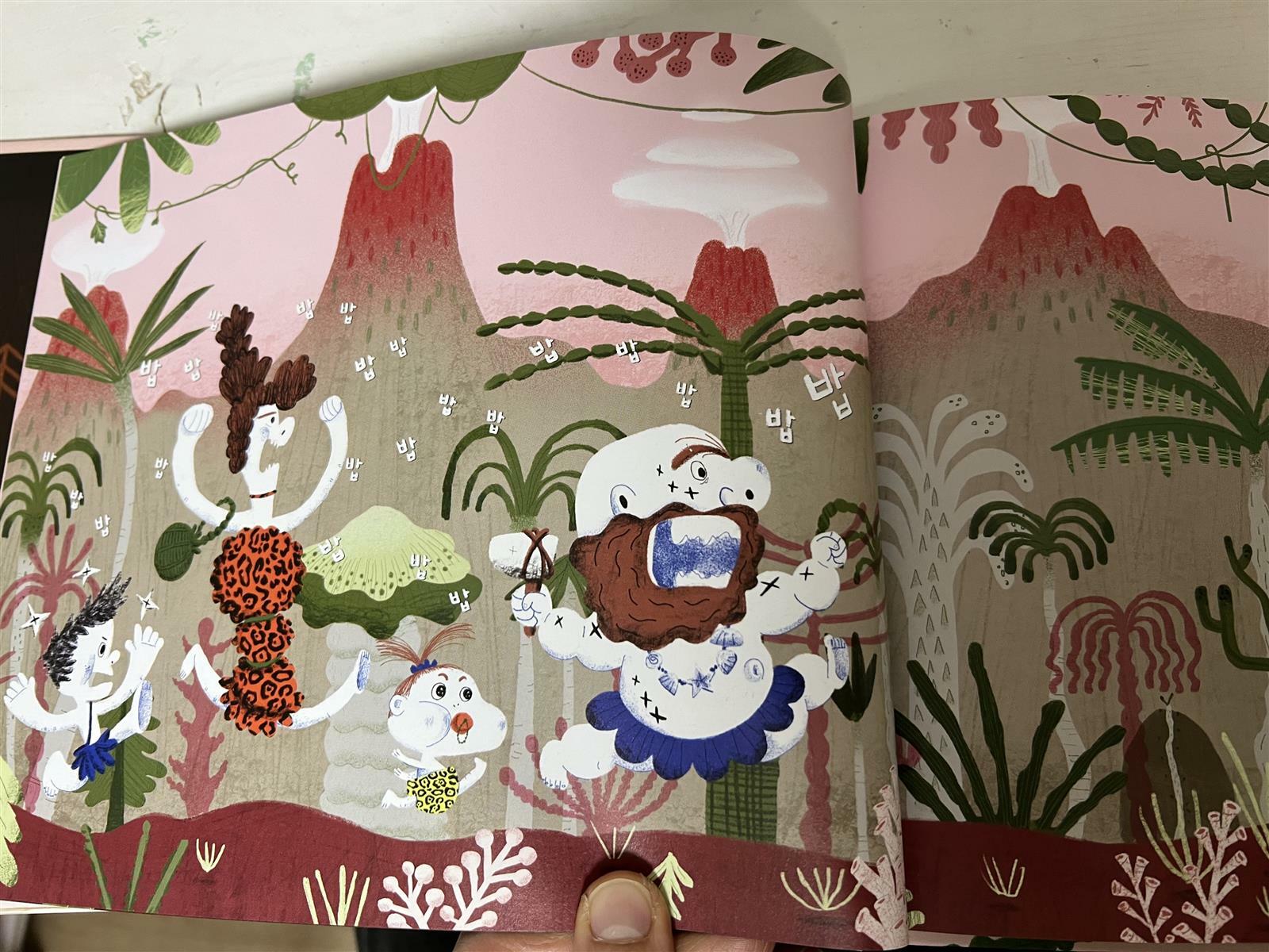 그림책을 한장씩 넘겨 보면 뭔가 참 다급한 상황들이 그려져 있습니다. 아마도 배경은 구석기 시대 같습니다. 원시인 같은 사람들이 무언가에 쫓기는 그림들이 생동감있게 잘 표현 되어 있습니다.