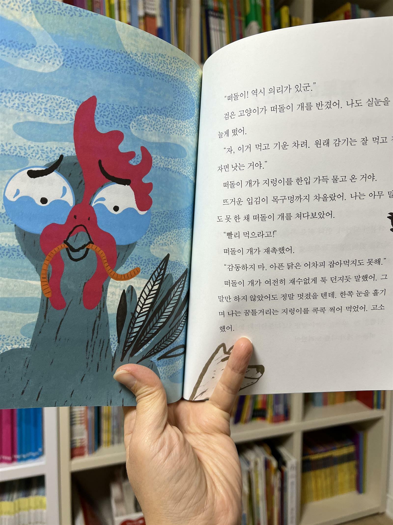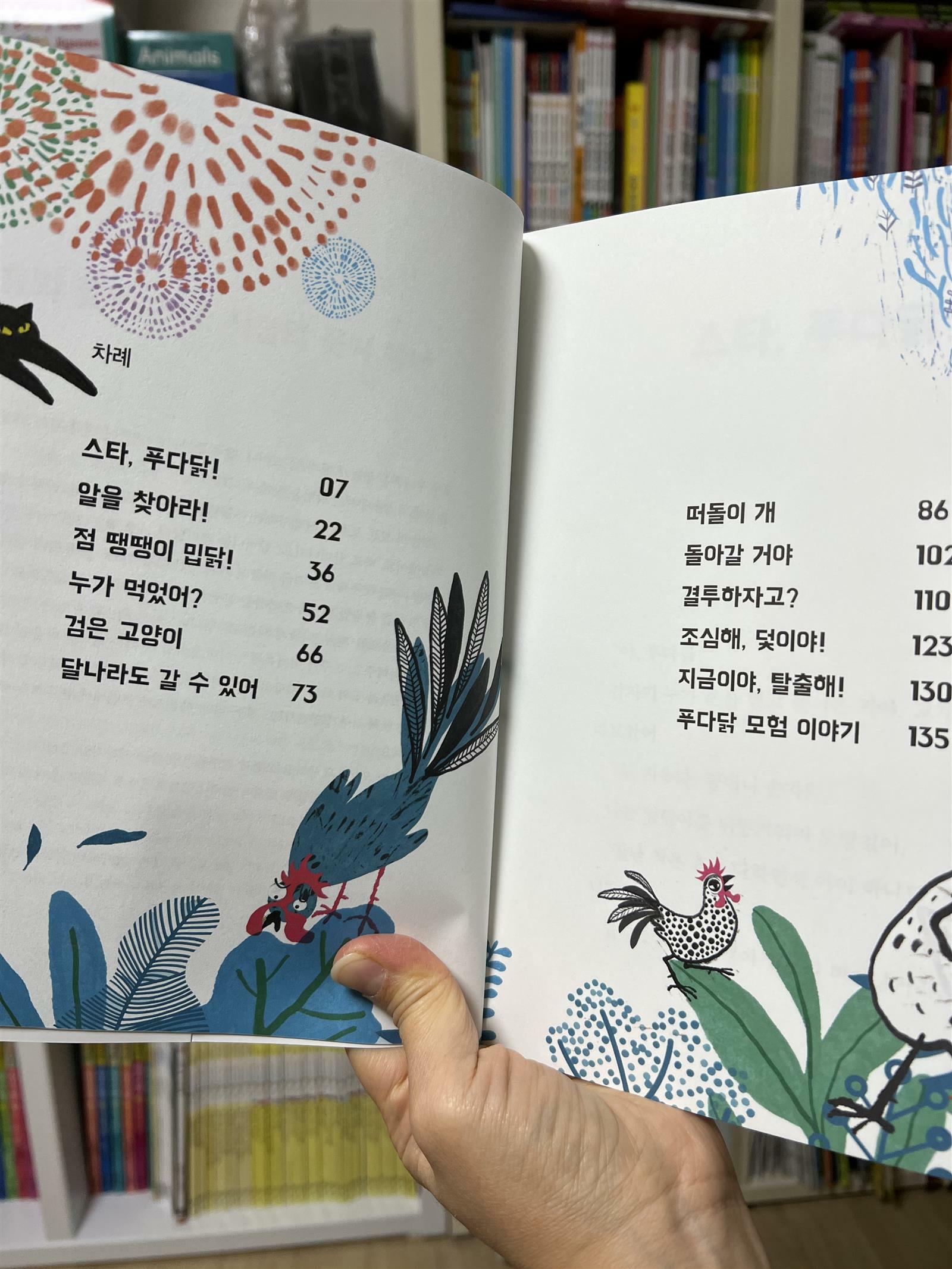 책고래 출판사에서 출간한 책고래 아이들 30권 '푸다닭'을 읽어 보았습니다. 책 표지 그림이 매우 인상적입니다. 수탉 한마리가 울상을 짓고 있는데 과연 무슨 일이 있는 것일까요? 이 책의 주인공은 수탉 입니다. '푸다닭' 이라는 이름을 가진 닭은 잘난체하면서 뽐내는 녀석입니다. 세상을 모르고 나대는 푸다닭의 우여곡절 모험이야기가 펼쳐집니다. 푸다닭은 자신의 아내와 알을 지키려는 용감한 닭입니다. 하지만 정작 해낼 수 있는 일이 별로 없습니다. 그리고 조금은 어수룩하지요. 매일 자신을 놀리는 밉닭의 말에 자극받고 생각없이 자주 집을 나가기도 합니다. 그런데 참 신기하게도 위험에 빠질 때마다 할머니가 나타나 도와주시지요. 할머니의 목소리가 들리고 할머니의 손길이 느껴집니다. 그리고 할머니의 사랑으로 다시 집에 돌아옵니다. 그러던 어느 날 푸다닭의 아내 알숙이가 떠돌이 개에게 습격을 당하고나서 푸다닭은 복수를 위해 또 집을 나갑니다. 알숙이는 다행히 죽지 않았지만 푸다닭은 검은 고양이의 말을 따라 모험을 떠나게 되지요. 검은 고양이의 말처럼 달콤한 것만 있는 것이 아닙니다. 쫓기도 도망치며 세상으로부터 보호받지 못하는 푸다닭은 점점 지쳐갑니다. 하지만 검은 고양이와 떠돌이 개의 도움으로 점점 그들에 대한 신뢰가 생기고 따르게 되지요. 배가 너무 고파 지친 이들은 결국 덫에 걸려들게 되지만 가까스로 잘 빠져나오게 됩니다. 할머니도 푸다닭을 찾고 너무 기뻐하십니다. 더불어 검은 고양이와 떠돌이 개까지 한 가족으로 받아들이게 되지요. 이 책에서 할머니는 푸다닭에게 무한 애정을 주십니다. 마치 푸다닭을 친손주처럼 여기시는 것 같습니다. 그런 사랑을 통해 푸다닭은 보호빋고 깨닫게 되는 것 같습니다. 어려운 모험을 통해 힘들지만 진한 우정도 경험하게 되지요. 우리 아이들이 이런 푸다닭을 보면서 사랑과 믿음, 우정을 배울 수 있을 면 좋을 것 같아요. 출판사를 통해 도서를 제공받아 직접 읽고 작성한 리뷰입니다. #푸다닭 #책고래 #책세상 #맘수다 #책세상맘수다카페