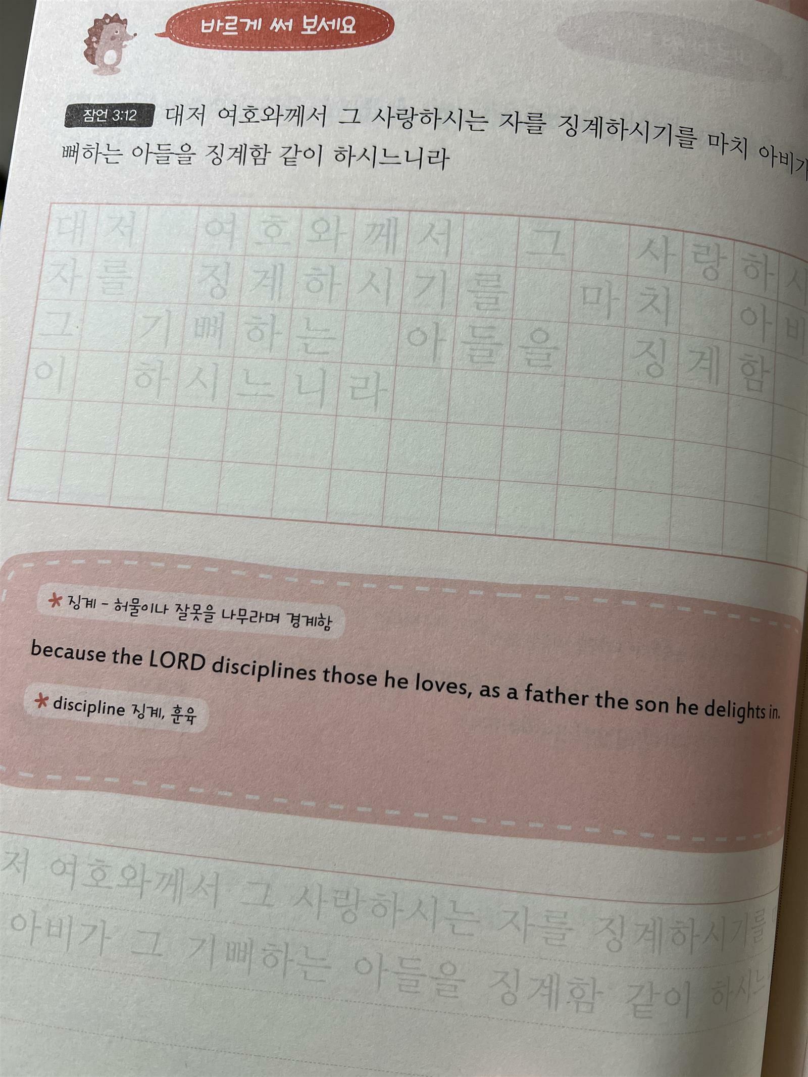 '따라쓰기 성경 잠언2'를 읽어보게 되었습니다. 좋은 습관 들이기 프로젝트를 함께 할 수 있는 책이라서 참 좋은 것 같습니다. 책이 얇아서 휴대하기에도 좋고 가볍게 쓰기에 좋습니다. 어떻게 좋은 습관 프로젝트를 하는지 간단하게 책 앞면에 나와있는데 만화형식이라 친근하고 이해하기 쉽네요. 무엇보다 어른도 아이도 같이 할 수 있는 것 같아서 좋습니다. 마음을 차분히 하고 자세부터 바르게 하는 것이 시작입니다. 먼저 소리를 내어 읽고 생각도 해 본다음 따라쓰기를 시작합니다. 무슨 의미인지도 생각하면서 암송해 본다면 책 활용을 100% 하는 것이라 생각이 듭니다. 일단 처음 시작이 중요한 것 같습니다. '시작이 반이다'라는 속담처럼 처음 시작을 하다보면 어느새 끝까지 잘 해나갈 수 있을 것 같아요. 책의 장점은 부담없이 시작할 수 있다는 것입니다. 일단 얇고 중요한 말씀 구절을 체계적으로 기록해 보면서 암송 할 수 있습니다. 영어로도 읽어 볼 수 있도록 되어 있어서 뜻을 이해하고 영어를 익히기에도 더 좋습니다. 영어단어도 뜻이 따로 나와 있어서 얇지만 알찬 책이라는 생각이 들었습니다. 어른들도 부담없이 쓰기에 좋고 아이들에게도 참 좋은 교재이며 책인것 같습니다. 한글쓰기 연습 뿐만아니라 말씀을 익히는데 어려움 없이 시작할 수 있습니다. 성경말씀 중에서 시편과 잠언을 먼저 암송하는 경우가 많은데 이 책이 그 역할을 잘 해 낼 수 있도록 도움이 될 것 같네요. 성경은 아직까지도 전세계적으로 베스트셀러라고 합니다. 그만큼 고전으로서도 가치가 있는 것 같습니다. 종교와 상관없이 한번씩 성경구절을 익히고 알고 싶으신 분들에게도 많은 도움이 될 것 같네요. 출판사로부터 도서를 제공받아 직접 읽고 작성한 리뷰입니다. #따라쓰기성경시편2 #따라쓰기성경잠언2 #스쿨존에듀 #컬처블룸 #컬처블룸리뷰단