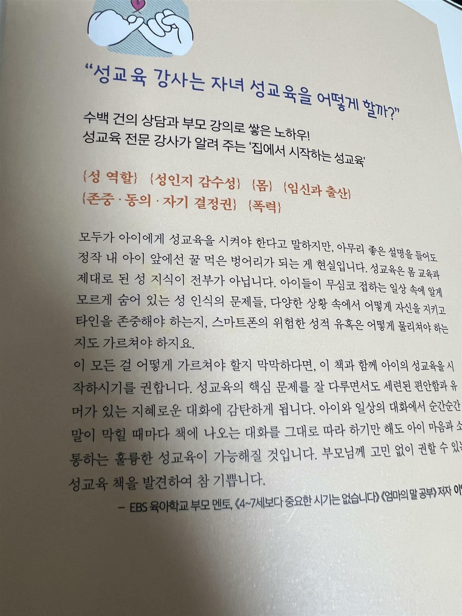 자매를 키우는 엄마의 입장에서 너무 중요한 것들을 알려주는 책인 것 같습니다. 아들맘이든 딸맘이든 정말 중요한 아이들의 성교육을 위해 이 책을 꼭 추천하고 싶네요.
