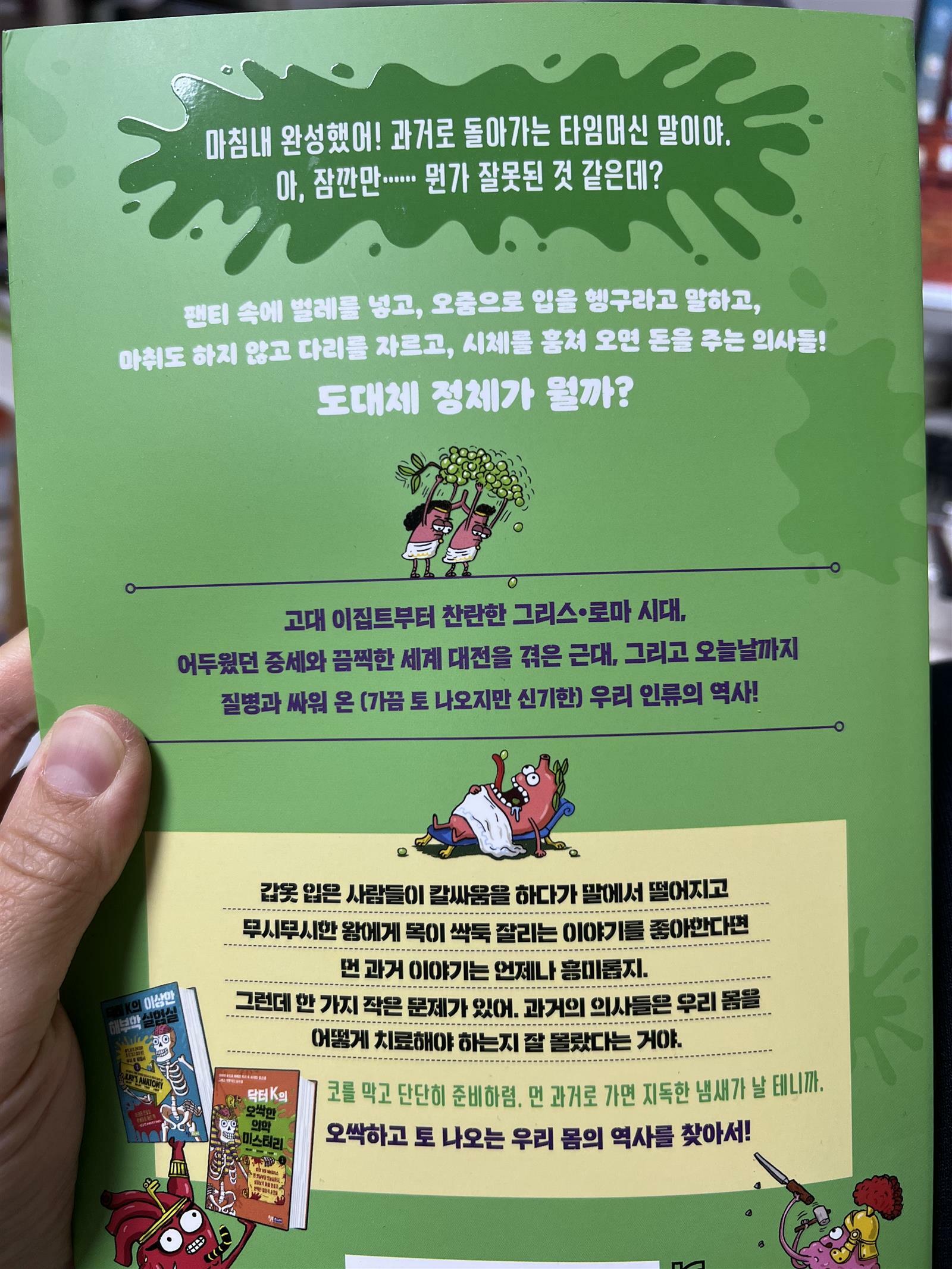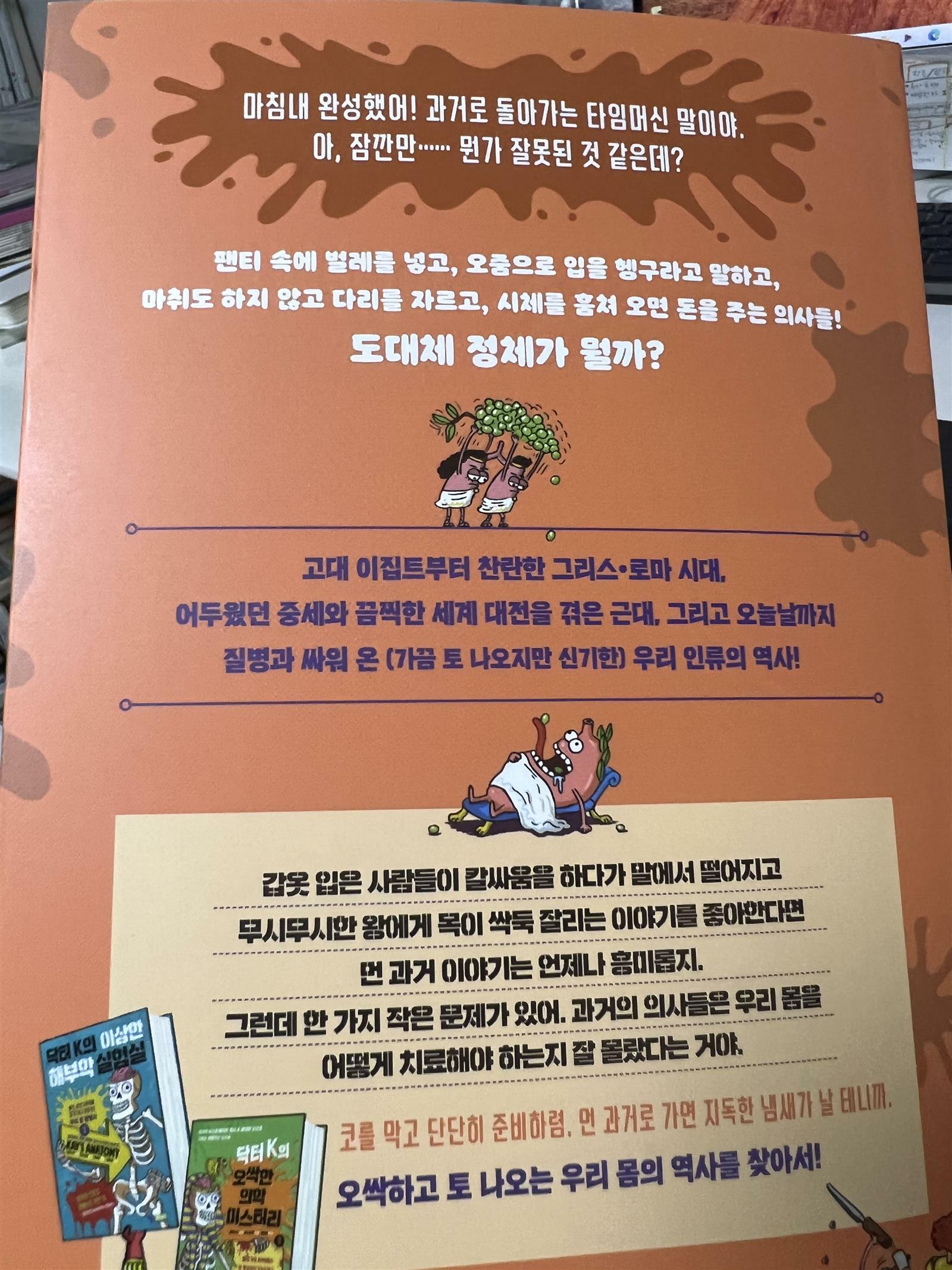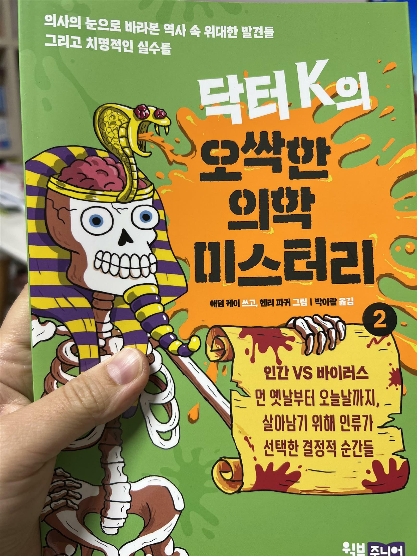 '닥터k의 오싹한 의학 미스터리' 책을 읽어 보았습니다. 의사의 눈으로 바라본 역사 속 위대한 발견들고 치명적인 실수에 관한 책입니다. 책 표지부터 정신없고 오싹합니다. 무슨 이야기들 이길래 오싹하다는 것일까요? 월북주니어 출판사의 책인데 총 2권입니다. 각 각의 책을 통해 오싹한 의학 이야기들을 살펴볼 수 있습니다. 의학 책들을 많이 읽어보진 않았지만 이번에 읽음 이 책은 정말 앉은 자리에서 술술 넘겨가며 읽어 볼 수 있는 책입니다. 특히 뇌에 관해서 나오는 이야기는 정말 어처구니 없기도 합니다. 예전에는 뇌가 쓸모없다는 생각을 했었다고 합니다. 솜뭉칭 역할을 하는 별볼일 없는 것이라고 생각해 주요하게 여기지 않았습니다. 심장을 중요하게 생각했다고 합니다. 이러한 이야기들을 딱딱하지 않게 구어체로 잘 풀어서 이야기해 주는 책이라 전혀 지루하지 않습니다. 심지어 정말로 오싹하기까지 합니다. 동물원 구경하듯 정신질환자를 분류해서 구경을 하기도 하는 등 지금 생각하면 정말 말도 안되는 엽기적인 이야기들도 있습니다. 그런데 중요한 것은 그런 이야기들이 우리 역사속에 실제 있었던 이야기라는 것입니다. 심지어 그 시절에 태어나지 않아 너무나 다행이라는 생각도 들었습니다. 그리고 한편으로는 지금 우리의 시대에서는 무엇인가 실수하고 있는 것은 없을까? 라는 생각도 해보았습니다. 지금 우리가 미래를 보지는 못하지만 미래에서 지금우리를 본다면 말도 안되는 일들이 있을 것 같더라구요. 이렇게 인류는 발전하고 실수하면서 나아온 것 같습니다. 오랜만에 재미있고 오싹하기까지 한 책을 본 것 같아 즐거웠습니다. 성인이 보기에도 너무 재미있는 책인 것 같네요. 아이들에게 조금 자극적인 내용인 것 같기도 하지만 분명 좋아할 것 같습니다. 출판사로부터 도서를 제공받아 직접 읽고 작성한 리뷰입니다. #닥터k의오싹한의학미스터리 #월북주니어 #책자람카페 #서평후기