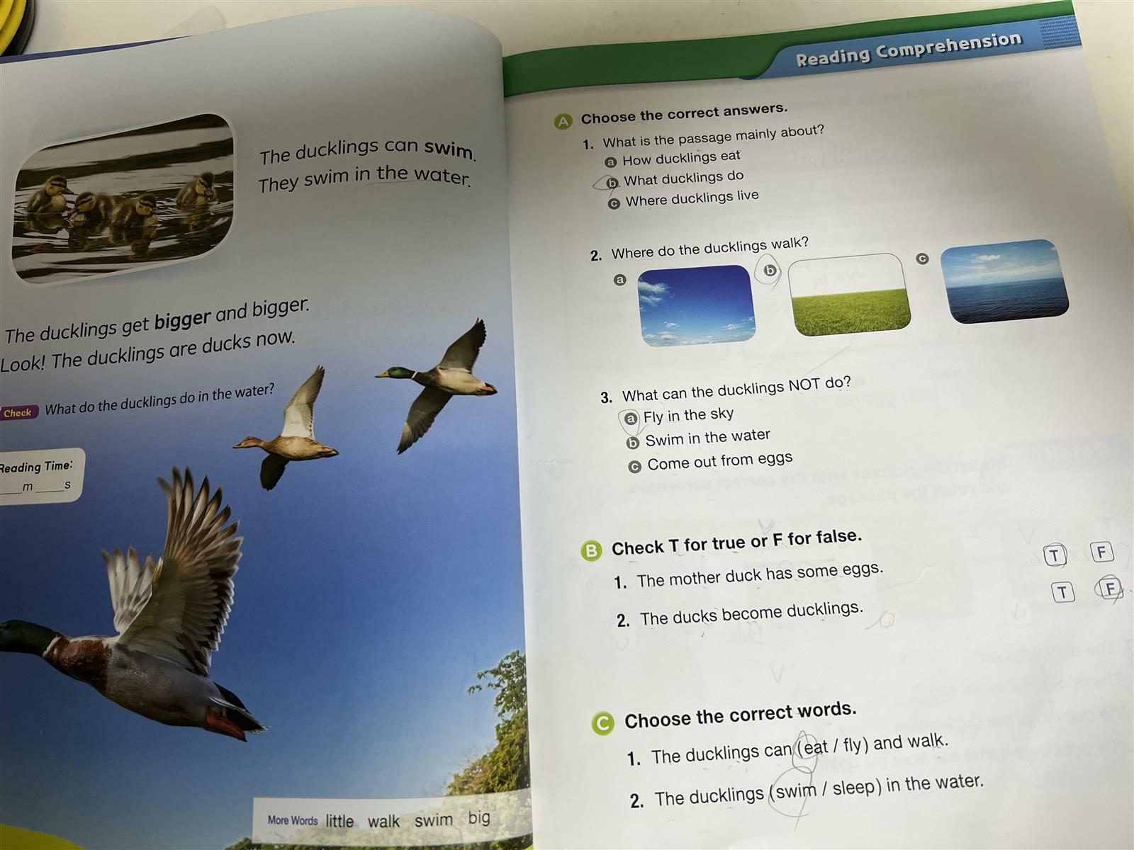 아이와 엄마표로 영어를 하다보니 놓치고 있는 것들이 있습니다. 그 중에 한가지 꾸준한 리딩이 어렵더라구요. 이번에 좋은 기회로 벤치마크리딩 교재를 아이와 살펴보게 되었습니다. 렉사일 180L -330L 수준의 2.1 교재를 풀어 보았어요. 일단 큐알코드가 있어서 어디서든 음원을 들으면서 풀어볼 수 있어서 좋습니다. 처음 교재를 펼치면 주제와 함께 단어를 먼저 살펴 봅니다. 그림과 함께 제시되는 단어를 보고 아이가 잘 기억할 수 있도록 만들어진 교재입니다. 본문으로 들어가면 중요단어에 표시도 되어있고 큐알로 들어 볼 수 있어서 좋습니다. 리딩을 끝내고 문제를 풀어보는데 영어질문이 조금 낯설기는 하지만 차츰 적응해 나갈거라 생각이 듭니다. 영어질문들에 익숙해져야 할 것 같습니다. 어느정도 반복되는 질문 패턴이 있어서 몇이루풀어보면 괜찮을 것 같더라구요. 예전에는 쓰기를 참 싫어했는데 그래도 조금 컸는지 제법 써보려고 노력해서 문제풀이에 큰 어려움은 없었습니다. 아이의 영어 리딩을 차근차근 올고 싶은 분들에게 적극적으로 추천해봅니다. 벤치마크리딩 교재는 영어 문제패턴도 익히고 단어도 짚어가며 즐겁게 리딩교재를 활용 할 수 있는 것 같아요. 책 뒷편에는 워크북이 따로 첨부되어 있어서 복습하기에도 참 좋은 것 같습니다. 아이와 영어리딩 레벨을 쌓아 올려보시길 바랍니다. 출판사로부터 교재를 제공받아 직접 읽고 작성한 리뷰입니다. #벤치마크리딩 #초등영어 #영어독해 #네이버도치맘카페 #서평