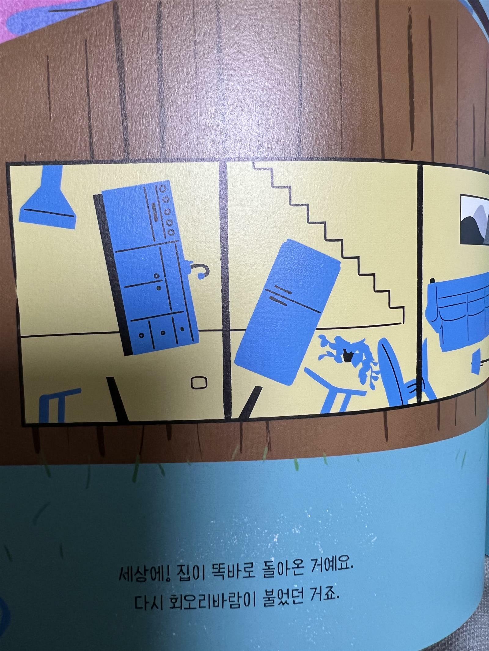 씨드북 출판사에서 출간한 '똑바로 씨와 거꾸로 집' 그림책을 읽어 보았습니다. 책 제목에 나온 주인공 이름처럼 주인공은 똑바로씨 입니다. 왜일까요? 똑바로 있는 것을 좋아합니다. 자신의 집안의 모든 것을 똑바로 해야 직성이 풀리는 것 같습니다. 똑바로씨는 똑바로 있지 않은 물건들에 대한 불안이 있는 것 같습니다. 물건들이 똑바르지 않으면 안 좋은 일이 생길 것만 같은 느낌이 듭니다. 왜 그럴까요? 똑바로씨의 행동을 보면서 왜 그럴까라는 생각도 들면서 누구나 하나쯤 그런 면이 있는 것 같기도 하다는 생각이 들었습니다. 똑바로씨의 집은 똑바로씨의 이름과 달리 거꾸로 집입니다. 회오리 바람으로 인해 거꾸로 뒤집힌 것입니다. 아무리 다시 세워보려고 해도 되지 않았습니다. 결국 집안의 물건들만이라도 똑바로 세워야 겠다는 생각을 한 똑바로씨는 힘들게 집안 정리를 다시 합니다. 그리고 잠이 집을 비운 사이에 이게 무슨일입니까? 집이 다시 똑바로 돌아와 있는 것입니다. 다시 회오리 바람이 불어서 집이 세워진 것이었지요. 아 그런데 이게 무슨일인지요? 집안의 물건은 거꾸로 되어 있는 것입니다. 지난번에 다시 세워둔 물건들입니다. 그리고 똑바로씨는 생각을 하게 됩니다. 똑바로 물건을 세워두었는데도 결국 안 좋은 일이 생겼다는 생각에 물건을 정리하다가 그만 두게 됩니다. 그리고 그냥 아무렇게나 내버려둡니다. 좋을대로 놔둔 물건들을 보면서 똑바로 씨는 마음을 고쳐먹습니다. 그리고는 생각합니다. 다른 것들을 고치기 보다는 마음을 바꾸는 것이 가장 쉽다는 것을요. 똑바로씨의 이야기를 통해 주변환경을 탓하며 불평했던 생각들이 떠올랐습니다. 주변의 것들을 바꾸려고 하면 정말 끝이 없는 것 같습니다. 결국 자신의 마음을 바꾸면 모든것에 평화가 찾아오는 것입니다. 이처럼 아이들도 조금씩 자신의 주장이 생기고 해결하기 힘든 문제들을 만나게 될때 이 이야기를 떠올려보고 적용해 보았으면 좋겠습니다. 출판사로부터 도서를 제공받아 직접 읽고 작성한 리뷰입니다. #똑바로씨와거꾸로집 #씨드북 #책세상 #맘수다 #책세상맘수다카페