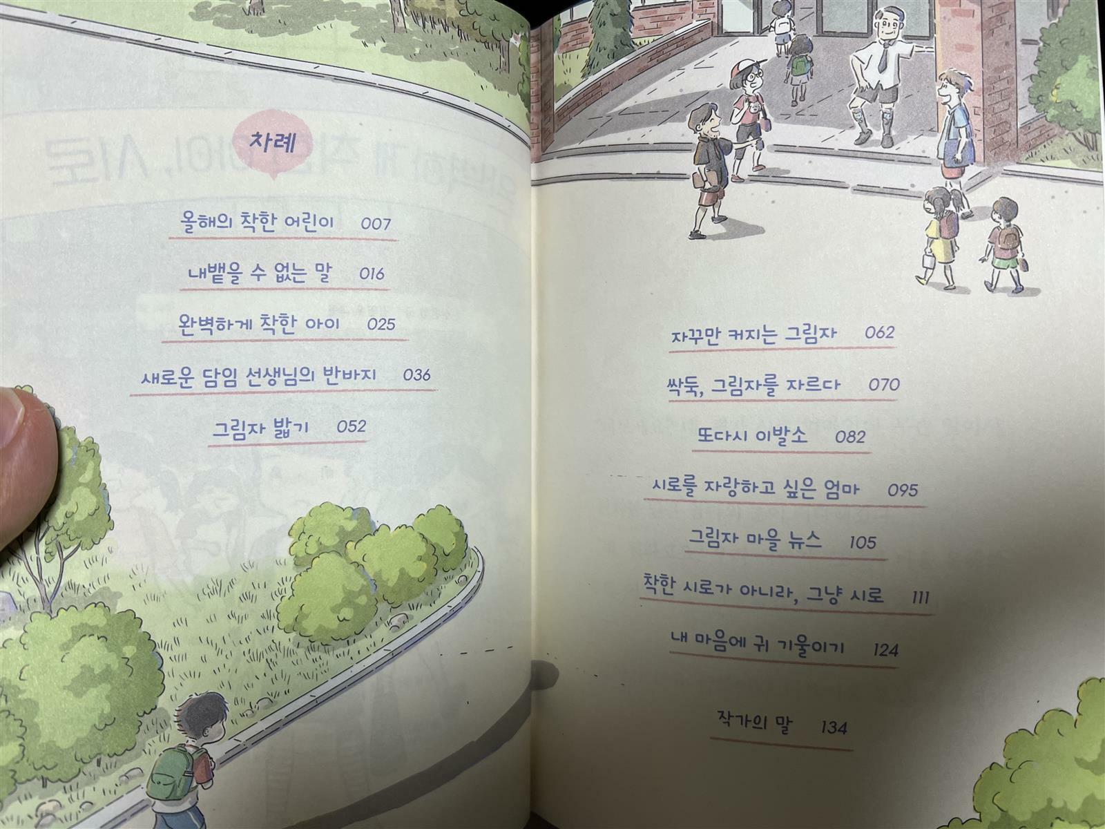 '완벽하게 착한아이 시로' 책을 읽어보았습니다. 책의 주인공은 강시로 입니다. 그림자마을에서 착한아이상을 받은 강시로는 어떤 고민이 있을까요? 이름에 힌트가 조금 있더라구요. 강시로는 싫어의 발음을 따서 만든 이름인 것 같습니다. 시로의 속마음은 싫은 것이 많지만 말을 하지 못합니다. 착한아이라는 프레임에 갇혀있는 시로는 자신의 마음은 들여다보지 못한 채 답답함을 가지고 살아갑니다. 친구들은 시로가 화내지 않는다며 짓궂은 장난도 서슴치않고 합니다. 그때마다 싫다고 말하지 못하는 시로는 어떤 마음 일까요? 이번에 이 책을 읽으면서 어린시절 나의 모습이 조금 떠올랐습니다. 작가의 말을 읽어보니 작가가 겪은 자신의 이야기라고 하더라구요. 작가 뿐만아니라 이런 경험을 한 어른들과 지금 겪고 있는 아이들이 많을 것 같다는 생각을 했습니다. 특히 아이들의 경우 자신의 마음을 들여다보는게 쉽지 않습니다. 주변의 기대에 집중하다보면 나의 생각과는 다른 삶을 살아 가고 있을 지도 모릅니다. 작가는 어린 아이의 시선에서 이해하기 쉽게 이 상황을 풀어 나갑니다. 그림자 동네의 규칙이 주변시선을 의미 하는 것 같습니다. 기본적으로 착한 아이들은 더욱 더 착하다라는 말에서 나오지 못하고 나를 잃어버리기 쉽습니다. 이 책의 주인공 시로처럼 말이죠. 하지만 시로는 강조아 선생님을 통해 깨닫게 됩니다. 강조아 선생님의 의미있는 말 한마디가 바로 우리 독자들에게 주는 메세지입니다. 시로는 자신의 마음을 돌아보고 나의 마음이 가장 중요하다는 것을 깨닫게 됩니다. 이 책은 내용이 어렵지 않지만 생각보다 두께가 조금 있어서 초등 저학년 아이들이상 볼 수 있을 것 같습니다. 하지만 글자가 큰 편이라서 금방 읽히고 편하게 읽을 수 있어요. 조금은 소심하고 착한아이들에게 적극 추천해 주고 싶은 책입니다. 출판사를 통해 도서를 제공받아 직접 읽고 작성한 리뷰입니다. #완벽하게착한아이시로 #리틀씨앤톡 #책세상 #맘수다 #책세상맘수다카페