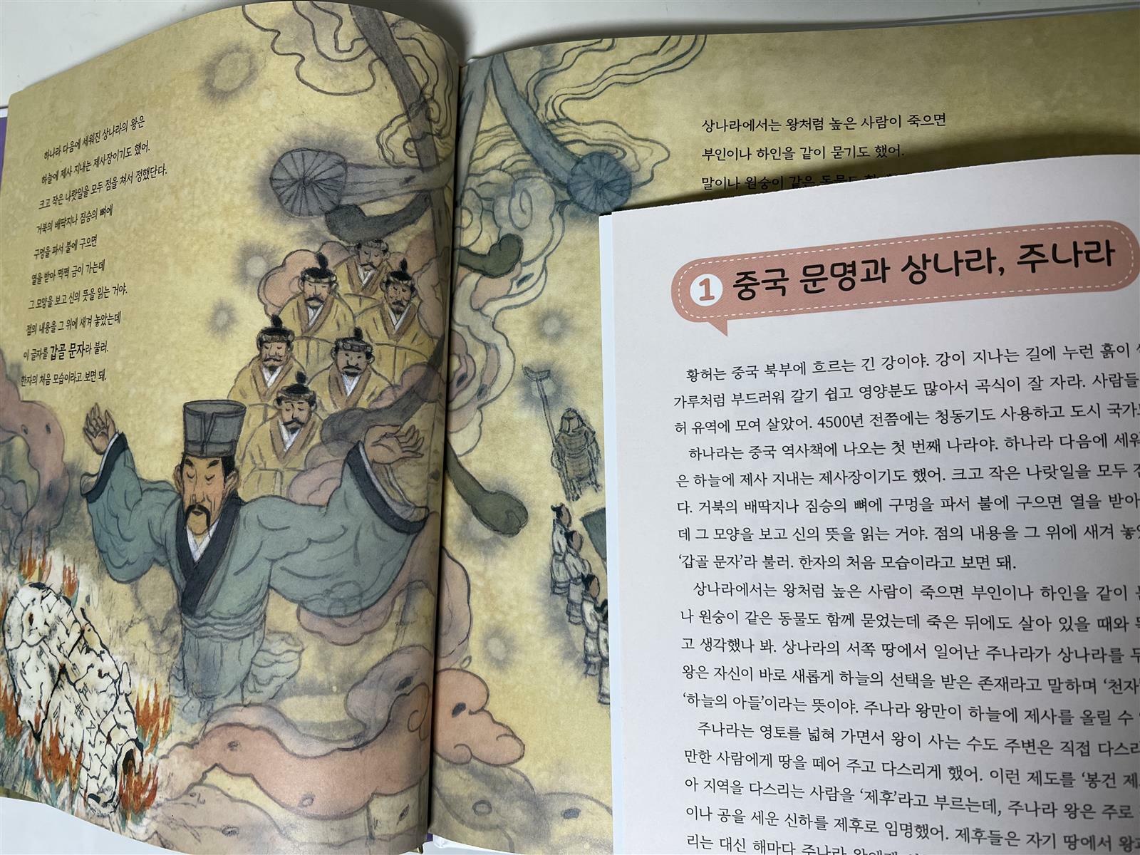 알록달록 첫 세계사 3권 책을 읽어 보았습니다. 이번에는 '하나의 중국을 만든 진 한 제국'이라는 제목입니다. 이전에 1,2권도 읽어보고 후기를 작성했었는데 이번에 좋은 기회로 3권도 만나 볼 수 있었습니다. 3권은 좀 더 깊이 있고 자세한 역사에 대해서 나옵니다. 중국역사에 대해서 이 책을 통해 살펴 볼 수 있습니다. 책 첫 부분에서는 중국의 신화로 시작합니다. 예전에 아이와 중국신화 만화를 본 적이 있어서 그런지 반고가 나오니 무척 반갑더라구요. 세계사의 시작은 신화를 먼저 보시면 도움이 되실 것 같다는 생각이 듭니다. 책을 자세히 살펴보겠습니다. 예전 1,2권과 마찮가지로 워크북이 같이 있습니다. 이 워크북은 책의 내용을 정리할 수 있는 중요한 부분이라고 생각합니다. 아무래도 세계사라는 것이 역사이기에 나라이름이나 지명이 많이 나옵니다. 이러한 것들이 사실 많이 헷갈리기도 하더라구요. 특히 아이들의 경우는 머릿속에 떠도는 이야기를 정리할 필요가 있습니다. 아무래도 역사 전체를 보는 통사가 가장 중요하고 그다음에는 세부적인 사항들도 참 중요한 것 같습니다. 책을 읽으면서 저도 세계사에 대해 깊이 알지 않기 때문에 아이와 함께 배워 나갈 수 있었습니다. 조금 익숙하지 않은 지명과 나라이름이 나오지만 여러번 읽어가면서 그림을 그려나가면 좋을 것 같습니다. 무엇보다 그림책이라서 그림이 글을 이해하는데 참 많은 도움이 됩니다. 그림도 함께 보면서 이해해 나간다면 세계사도 즐겁게 익힐 수 있겠다는 생각이 듭니다. 앞으로 알록달록 첫 세계사 책이 계속 나올텐데 많은 기대가 됩니다. 한 권 한 권이 참 중요한 책인 것 같습니다. 시리즈가 완결되면 꼭 소장해서 아이와 두고 두고 보면서 이야기 나눠보고 싶네요. 출판사로부터 도서를 제공받아 직접 읽고 작성한 리뷰입니다. #알록달록첫세계사 #하나의중국을만든진한제국 #상상정원 #책세상 #맘수다 #책세상맘수다카페