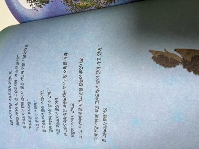 잠자기 독서 시간에 누워서 아이들과 읽어보는데 아이들도 그림에 집중하면서 참 따뜻한 느낌을 받았던 것 같습니다. 한글자 한글자 천천히 읽어가면서 그림들을 보고 있으면 뭔지 모르게 예쁜 꿈을 꾸도록 도와주는 책인것 같습니다. 우리를 둘러싼 세상이 너무나 아름답고 아이들이 무한한 상상의 나래를 펴도록 돕는 그림책입니다.