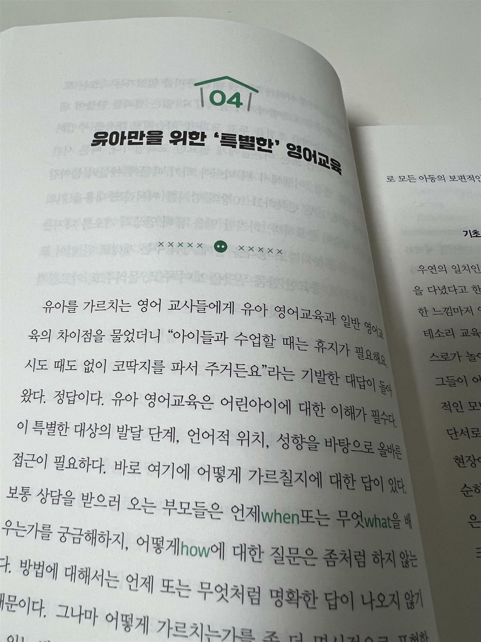 그리고 저처럼 엄마표로 진행하시는 분들도 어떻게 아이들에게 접근해야 하는지 영어교육의 방향성도 잡을 수 있을 것 같습니다. 영어조기교육에 대한 큰 틀을 생각하는데 많은 도움이 되는 책인 것 같네요. 우리 아이들에게 올바른 영어노출을 위해 한번 읽어보시길 바랍니다.