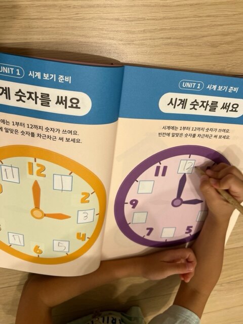처음에는 조금 수월하게 풀어갈 수 있도록 되어있고 세분화된 개념으로 접해볼 수 있는 교재라서 실생활에서 시계보는데 필요한 것을 느끼고 배울 수 있습니다.