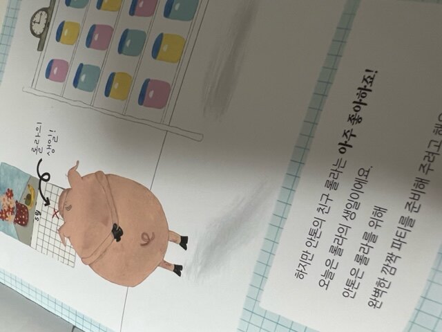 허둥지둥 준비하다가 그만 넘어지고 말지요. 케이크와 함께 말입니다. 그때 마침 친구들이 들어오면서 생일의 주인공 룰라도 등장합니다.