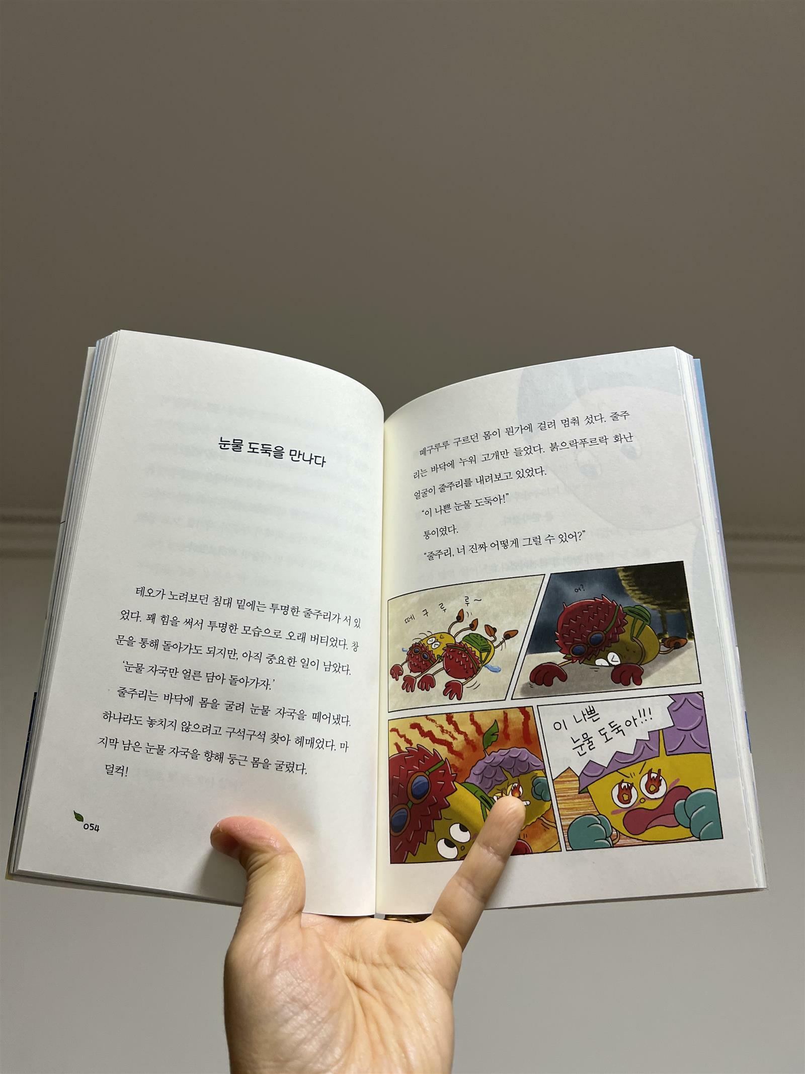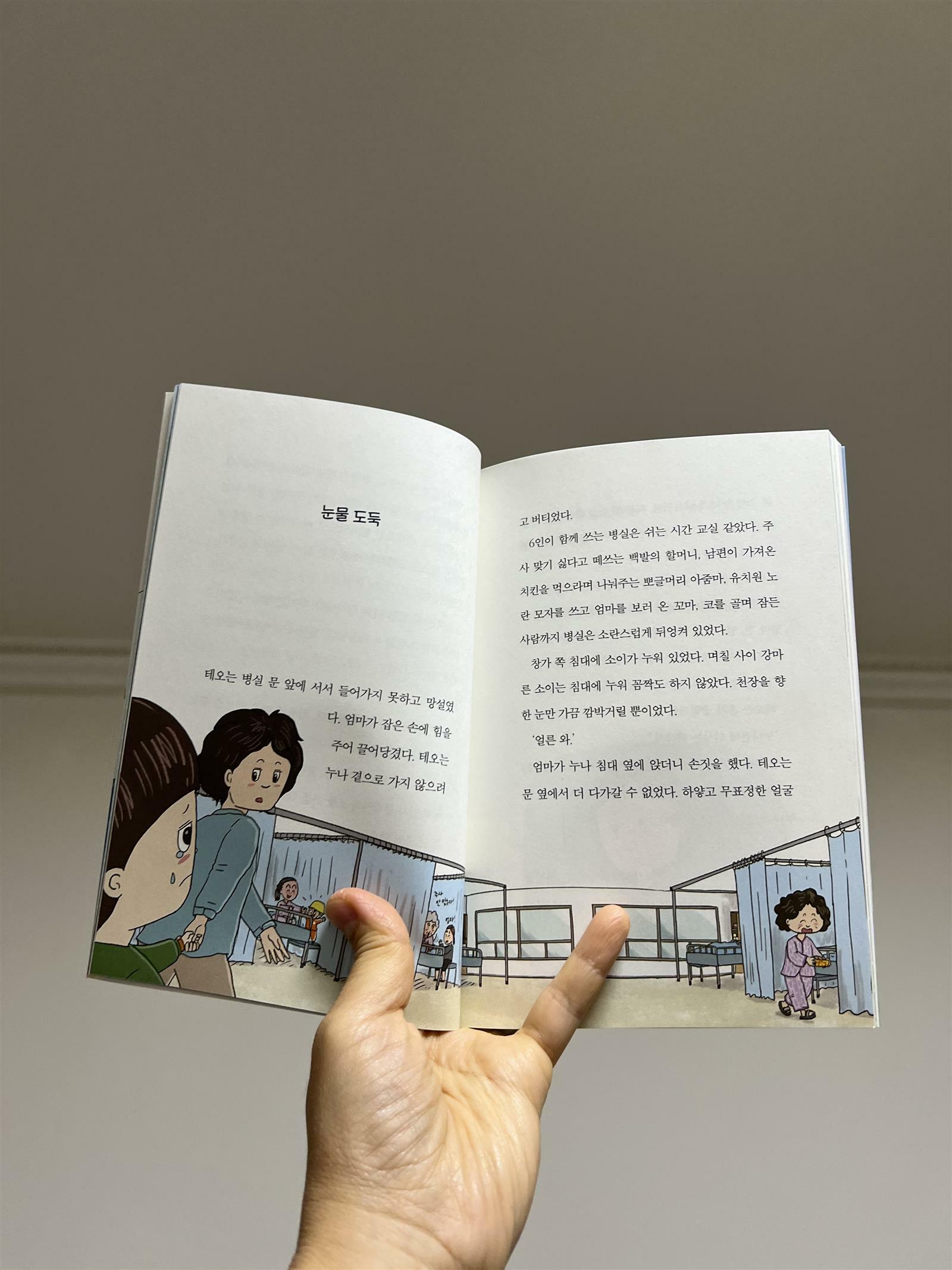 '눈물도둑' 문고책을 읽어보았습니다. 주인공 테오와 테오의 누나 소이의 이야기가 나옵니다. 소이는 아파서 병원에 입원해 있습니다. 테오는 누나가 얼른 낫길 바라지만 누나는 눈물이 말라버린 공황장애라는 병을 앓고 있습니다. 누나가 숨을 몰아 쉬면서 힘들어 하는 모습을 보면서 테오는 눈물을 흘립니다. 테오의 눈물이 흐르자 바쁘게 움직이는 무엇인가가 있습니다. 도토리 처럼 생긴 눈물 도둑입니다. 눈물도둑들은 사람마다 하나씩 있나봅니다. 누군가 눈물을 흘리면 그 눈물은 어디로 가는 걸까요? 이 책에서는 아이들의 상상력을 자극하는 요소가 많습니다. 그리고 그 상상력을 통해서 아이들이 눈물에 대해 다시 한 본 생각하도록 도와줍니다. 눈물이 그냥 사라지는 것이 아니라 각자의 마음 속 눈물바다를 이루고 있습니다. 우는 것이 창피한 일이 아니란 것도 이 책을 통해 생각해 볼 수 있습니다. 소이의 이야기를 통해서도 마음의 병이 얼마나 심각한 지를 보여줍니다. 내 마음의 감정을 표현 한다는 것은 자연스럽고 꼭 필요한 것입니다. 울어야 하는 상황에서는 울어야 하고 내 마음을 시원하게 말 할 수 있어야 하는 것 같습니다. 아이들은 아직 자라나는 과정이라서 감정 표현이 서툴 수 있습니다. 아이들이 책을 통해 감정을 표현하는 방법을 배우고 알아가야 하는 것 같습니다. 테오와 눈물도둑은 결국 만나게 됩니다. 테오의 눈물바다에도 가고 소이를 돕기위해 힘을 합치게 됩니다. 소이는 과연 어떻게 되었을 까요? 테오와 눈물도둑의 도움으로 소이는 자신의 마음을 들여다 보게 됩니다. 첫 눈물방울을 찾게 되면서 소이는 그동안 잃어버렸던 눈물을 찾게 됩니다. 자신의 감정을 표현하면서 소이의 마음의 병도 조금씩 나아질 것 같습니다. 아이들과 함께 읽고 테오와 눈물도둑의 이야기를 나눠보시길 추천합니다. 출판사로부터 도서를 제공받아 직접 읽고 작성한 리뷰입니다. #눈물도둑 #리틀씨앤톡 #책세상 #맘수다 #책세상맘수다카페