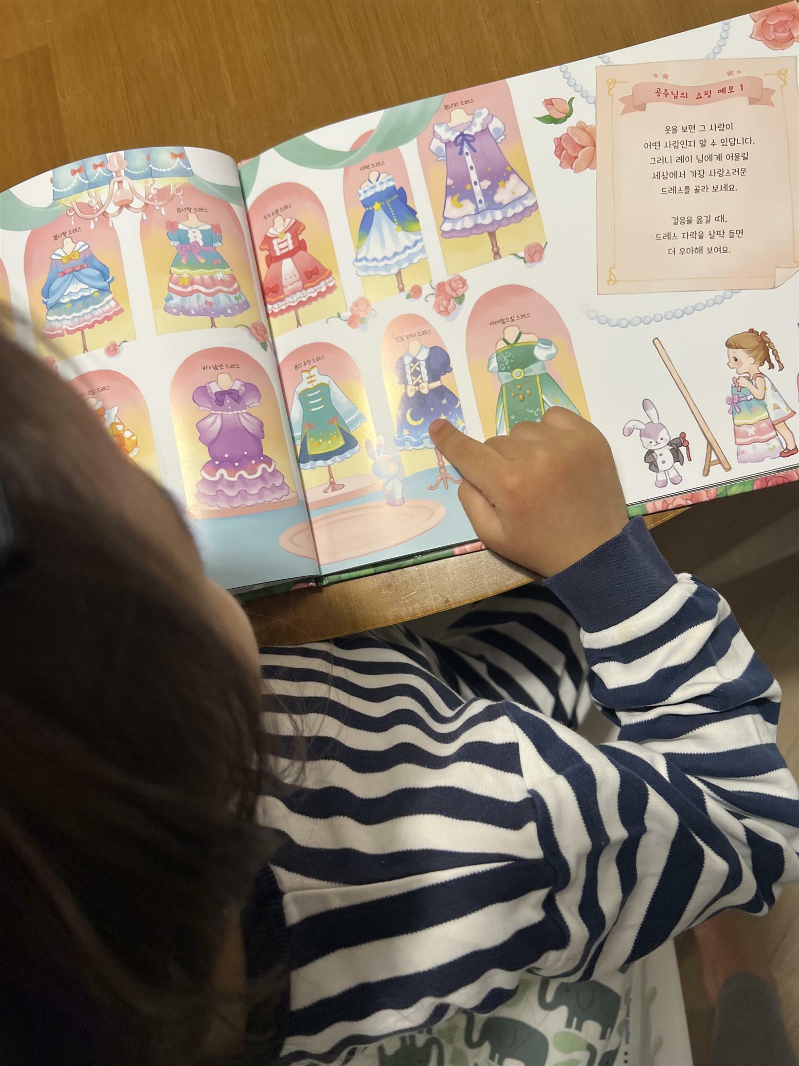 '공주님이 되는 마법의 문' 그림책을 보았습니다. 이 책은 아이들의 취향을 저격하는 그림책입니다. 특히 여아들의 심리와 놀이를 잘 이해하고 있는 그림책이라고 생각합니다. 물론 개인차는 있겠지만 저희집 아이들을 볼 때 정말 좋아하는 그림책인 것 같습니다. 책 표지부터 러블리하고 귀여운 주인공 그림이 나옵니다. 분홍색감과 귀여운 토끼까지 여아들이 참 좋아 할 만한 요소가 가득합니다. 책을 한 장 넘겨보면 정원에서 놀고 있는 소녀가 토끼 인형과 신기한 문으로 향합니다. 파티에 초대하는 초대장도 함께 있습니다. 이 장면에서 아이들과 함께 파티에 초대 받았다며 소녀의 마음에 공감할 수 있습니다. 소녀의 입장이 되어서 함께 문을 열고 들어가면 너무나 예쁜 가게들이 줄지어 있습니다. 여아들이 좋아하는 예쁜 드레스 가게부터 들어갑니다. 다양한 드레스가 줄지어 있는데 서로 드레스를 고르느라고 바쁜 상황이 됩니다. 자매들이라면 다소 소란스러울 수 있는 책입니다. 서로 자기먼저 드레스 고르겠다고 할 만한 장면입니다. 드레스 이름도 참 다양합니다. 하나 하나 읽어보면서 정말 신중하게 드레스를 골라보는 재미가 있습니다. 한 장씩 넘길 때마다 아이들이 기대하면서 볼 수 있는 책입니다. 제가 보아도 참 다양하고 예쁜 그림들이 많습니다. 하나 하나 자세히 보느라 시간 가는 줄 모르는 책입니다. 글을 읽지 못하더라도 그림만으로도 충분히 보면서 즐길 수 있는 책입니다. 구두 페이지를 넘기면 가방가게가 나옵니다. 가방 뿐만이 아니라 레이스장갑과 양산도 다양하게 준비되어 있습니다. 실제 가게보다도 더 다양한 상품이 그려져 있어서 재미있습니다. 내가 실제로 하지 않더라도 책을 통해 아이들은 만족감을 얻으며 주인공과 함께 상상해 볼 수 있는 그림책입니다. 여아들에게 강추하고 싶은 책입니다. 이 책을 통해 책을 즐겨 보지 않던 아이도 스스로 책을 꺼내 볼 수 있을 것 같더라구요. 또 어떤 가게들을 지나가게 될까요? 가게들을 다 지나면서 내가 고른 것들을 상상하며 마지막에 도착한 곳은 공주님이 기다리고 있는 정원입니다. 맛있는 음식이 기다립니다. 주인공은 참지 못하고 허겁지겁 음식을 먹지요. 그리고 이 책의 하이라이트인 공주님이 될 수 있는 예절이 나옵니다. 바로 바로 엄마들이 원하는 식사예절을 공주님을 통해 알려줍니다. 우리 아이들이 공주님이 되기 위해 아마도 이 책의 예절을 잘 따라 할 것 같습니다. 출판사로부터 도서를 제공받아 직접 읽고 작성한 리뷰입니다. #책세상 #맘수다 #책세상맘수다카페 #공주님이되는마법의문 #라이카미
