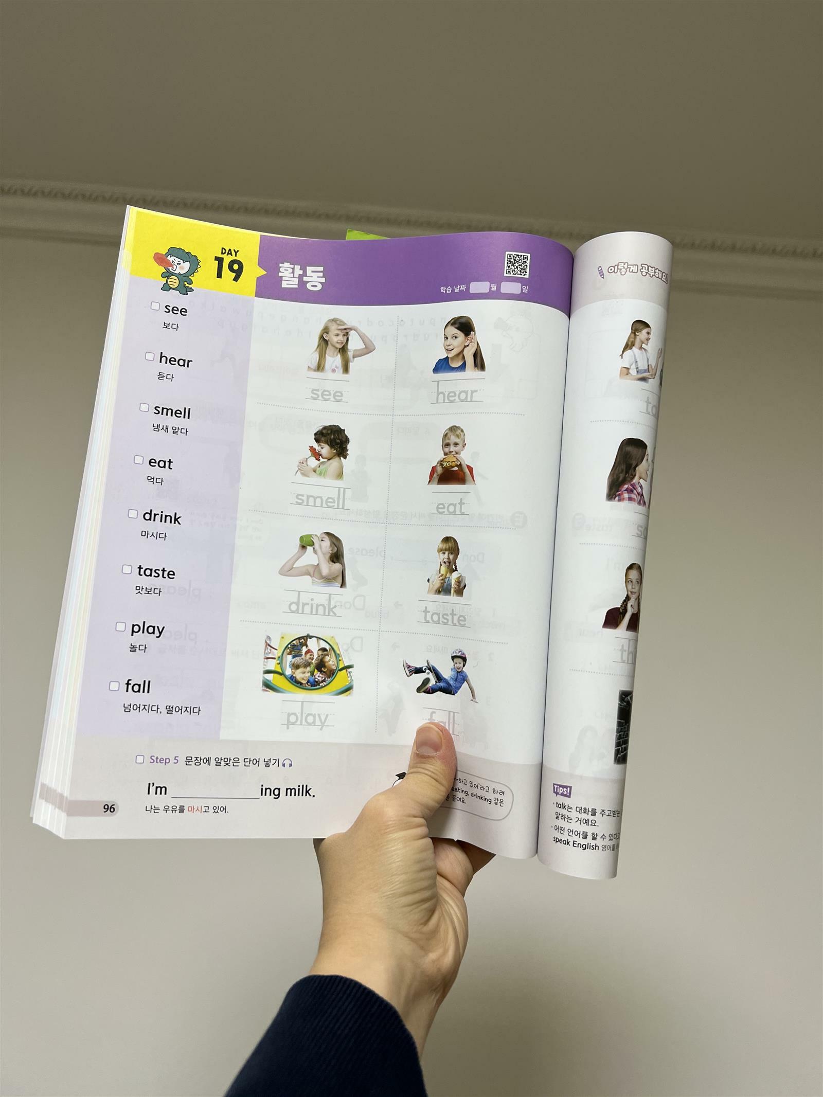 '맛있는 초등필수 영단어' 교재를 보았습니다. 맛있는 북스에서 출간한 영단어 교재입니다. 아이와 맛있는 북스 다른 교재를 풀어 본 적이 있는데 아이들이 보기 쉽고 재미있는 교재였습니다. 이번에 소개하는 영단어 교재도 아이들이 한 눈에 알아보기 쉽고 하루에 4쪽 공부로 단어를 차근 차근 익혀나가기 좋습니다. 하루 분량을 차분히 해나간다면 40일이면 끝나는 교재입니다. 주말을 제외하고 주중에만 공부한다면 두달 정도 걸릴 것 같네요. 이렇게 분량을 정하고 시작하면 아이들도 더 집중하는 것 같습니다. 책 한권 끝낼 때마다 보상도 함께 주어지면 더 즐거운 공부 시간이 될 것 같네요. '맛있는 초등필수 영단어 ' 교재는 초등학생이 필수로 알아야 하는 단어를 주제별로 매일 공부할 수 있도록 도와줍니다. 큐알 코드도 있어서 바로 바로 듣고 공부할 수 있는 장점이 있습니다. 언어라는 것은 역시 듣는 것이 먼저라서 큐알코드 정말 중요한 것 같습니다. 교재를 살펴보면 오늘 어떤 단어를 공부해야 하는지 그림과 글자가 나옵니다. 총4단계의 공부방법을 제시하고 있는데, 처음에는 아는 단어를 먼저 체크해 봅니다. 그리고 단어를 듣고 따라 말해봅니다. 세번째는 사진보면 단어를 따라 써봅니다. 마지막 네번째는 사진보며 단어를 말해보기 입니다. 이렇게 총4번에 걸쳐서 단어를 공부하고 나면 뒷장으로 넘어가서 연습문제를 풀어봅니다. 듣기문제부터 단어를 써보는 문제까지 다양한 문제를 통해 아이들이 공부한 것을 제대로 익히도록 도와 줍니다. 하루 분량 4쪽이 적은 것 같았는데 교재에서 제시하는 방법으로 꾸준히 하다보면 어느새 초등 필수 영단어를 내 것으로 만들 수 있겠더라구요. 일단 한 번 아이와 시작해 보시길 추천합니다. 출판사로부터 도서를 제공받아 직접 읽고 작성한 리뷰입니다. #협찬 #책세상 #맘수다 #책세상맘수다카페 #맛있는초등필수영단어 #맛있는북스 #초등영어 #초등영단어 #초등학생영어 #초등필수영단어 #어린이영어