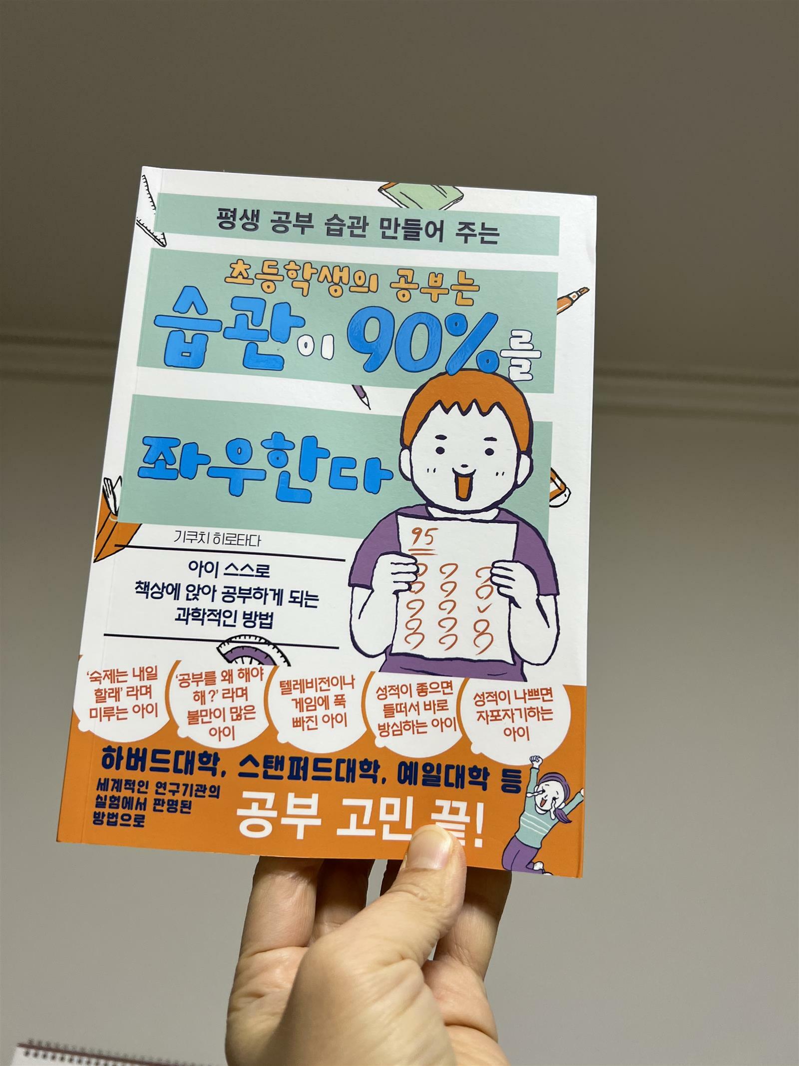 '초등학생의 공부는 습관이 90%를 좌우한다" 라는 책을 읽어 보았습니다. 습관이 중요하다는 이야기는 많이 들었는데 어떻게 습관을 만들어 줘야 한는지 항상 어려웠습니다. 하지만 이 책을 보고 의문이 풀렸습니다. 초등학생 아이를 엄마표로 가르치고 있다보니 이 책의 내용들이 참 많이 공감이 되더라구요. 아이와 매일 실랑이를 벌이며 공부 습관을 잡아 간다는 것이 결코 쉬운 일이 아닙니다. 하지만 이 책에서는 어떻게 아이들에게 습관 형성을 해줘야 하는지 나와 있습니다. 세계적인 연구기관의 실험에서 판명된 방법을 토대로 저술한 책이라서 신뢰가 가더라구요. 사람은 누구라도 마시멜로를 앞에 두고 참기 힘듭니다. 하지만 이 상황에서 전략을 세운다면 참을 수 있다고 합니다. 그 전략들을 이 책을 통해 배울 수 있습니다. 우리아이와 관계도 좋게 유지하면서 아이 스스로 습관을 잘 잡아주도록 부모는 조력자의 역할을 해야 합니다. 아이의 감정이나 생각을 통제하려는 것이 아니라 행동을 통제하도록 해야 합니다. 적절한 보상도 중요합니다. 무엇보다 보싱에 대해서 너무 나쁘게 생각하지 않아도 좋다고 합니다. 잘 사용한 보상은 아이들의 습관 형성에 도움을 줍니다. 어떻게 보싱을 활용해야 하는지 궁금하신 분들께 이 책을 적극 추천하고 싶네요. 출판사로부터 도서를 제공 받아 직접 읽고 작성한 리뷰입니다. #초등학생의공부는습관이90%를좌우한다 #주니북스 #기쿠치히로타다 #컬처블룸 #컬처블룸리뷰단