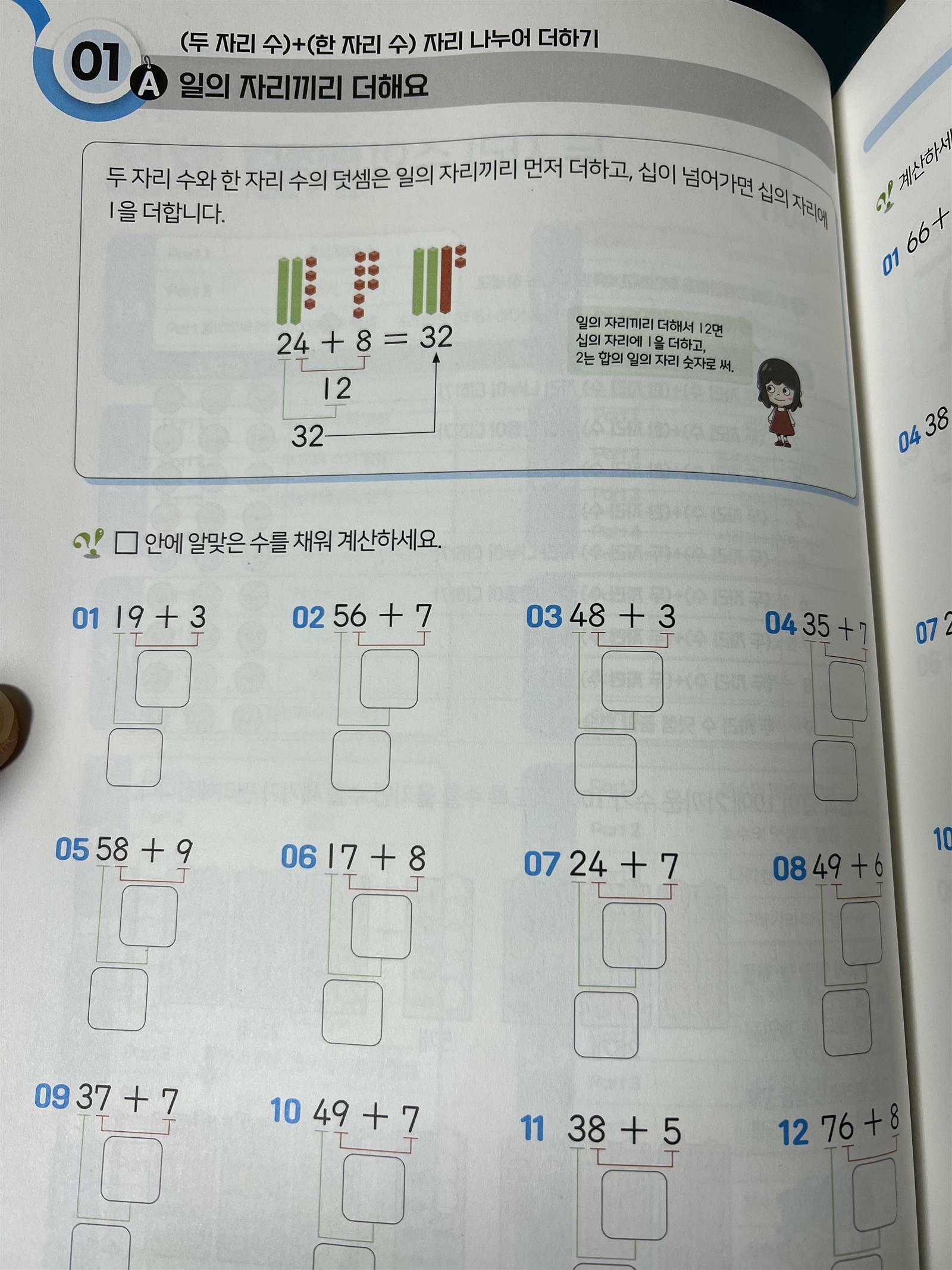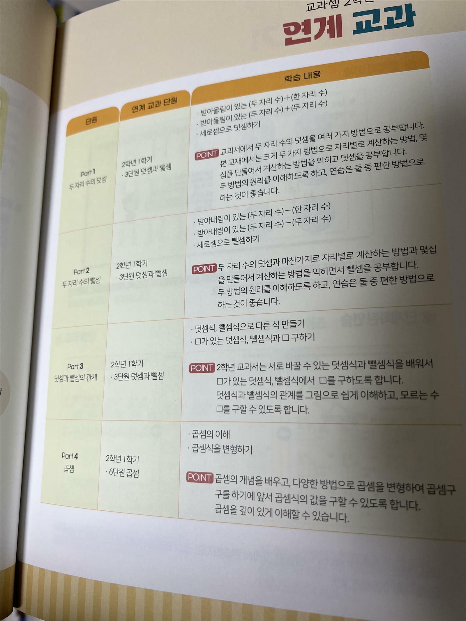 이번에 새로 나온 수학연산 교재를 소개하려고 합니다. 천종현수학연구소에서 출간된 교과셈이라는 교재입니다. 평소에 천종현 선생님의 강의를 자주 보고 아이들에게 어떻게 수학을 지도해야 하는 지 팁을 얻었습니다. 그런데 이번에 교과셈 교재가 출간된다고 해서 많은 기대를 하고 있었습니다. 워낙에 유명한 '원리셈' 교재도 있는데 이번 교과셈은 어떤 부분이 다를까요? 교과셈은 말 그대로 교과서에 충실한 연산 교재입니다. 교과서 내용을 잘 따라 갈 수 있도록 아이들의 연산을 잘 정리해 둔 교재입니다. 문제집을 펼쳐보니 총4파트로 나눠져서 정리되어 있습니다. 한 학년에 2권이면 교과서 연산을 정리 할 수 있어서 좋습니다. 또한 일반 연산문제집에 비해서 문제 사이의 간격이 넓은 것 같아 반가웠습니다. 저희 아이의 경우 문제가 빽빽하게 있는 문제집은 거부하는 경향이 있습니다. 연산문제집은 답만 적도록 문제가 가득 있어서 아이들이 힘들어 할 수 밖에 없습니다. 하지만 이번 교과셈은 연산문제집이지만 조금의 여유가 있어서 다행인 것 같습니다. 하루 한장 풀어 볼 수 있도록 되어 있고, 문제를 풀기전에 어떻게 풀어 보는지 예시가 나와있어서 어려움이 없습니다. 두자리 수의 덧셈을 여러가지 방법으로 제시된 방향을 살펴보며 풀어나가다 보면 익숙해 질 것 같습니다. 저희 집 아이와 올해 겨울방학 예습교재로 '교과셈'을 풀어보려고 합니다. 유난히 긴 겨울방학도 교과셈 하나면 든든 할 것 같습니다. 다들 겨울방학에 교과셈으로 예습하시길 추천 합니다. 출판사로부터 도서를 제공받아 직접 읽고 작성한 리뷰입니다. #교과셈 #교과수학의시작 #천종현수학연구소 #초등2학년1학기 #컬처블룸 #컬처블룸리뷰단