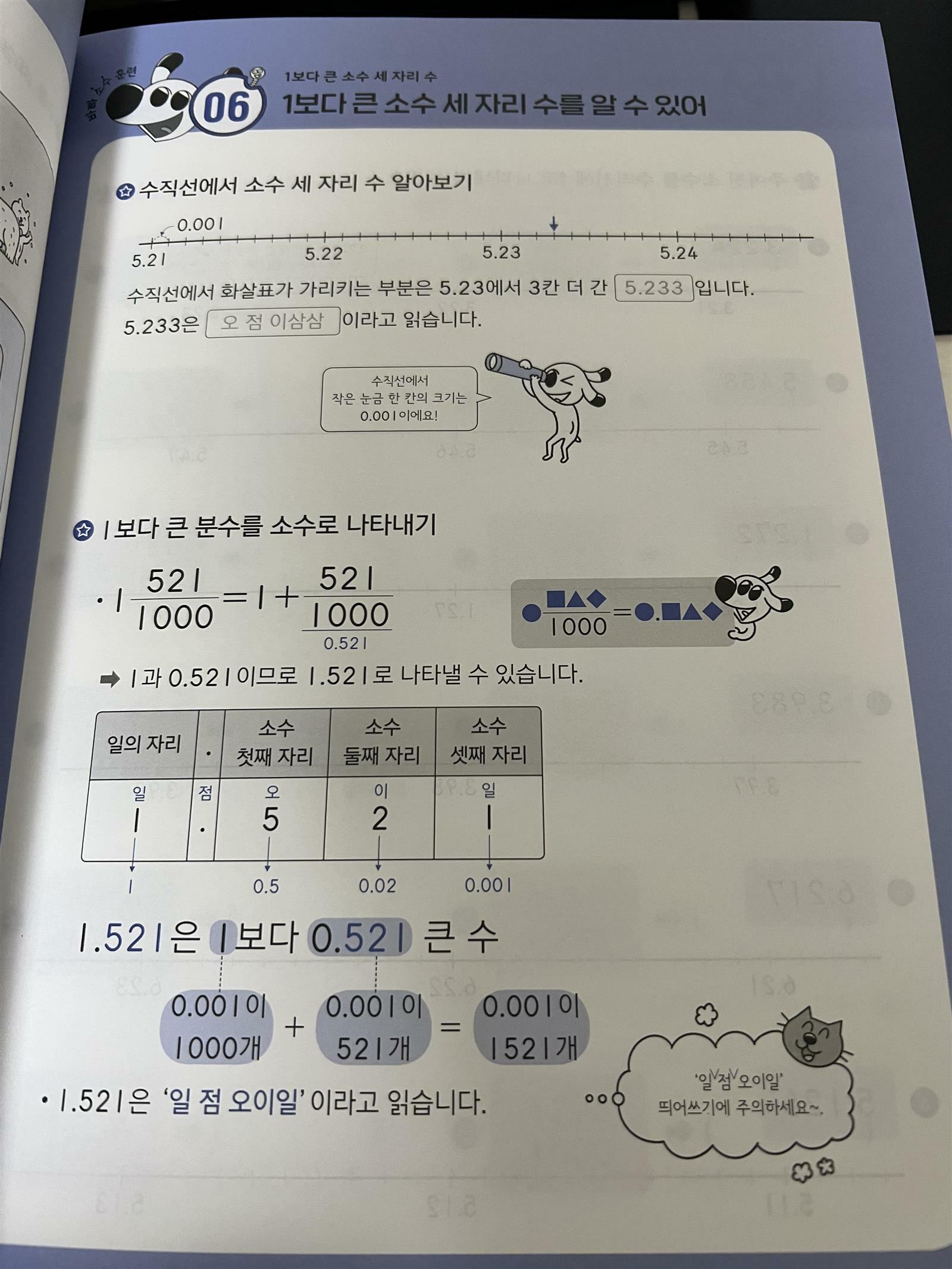 아이들이 소수에서 중요하게 보아야 하는 부분은 소수점의 위치와 소수 사이의 관계라고 합니다.