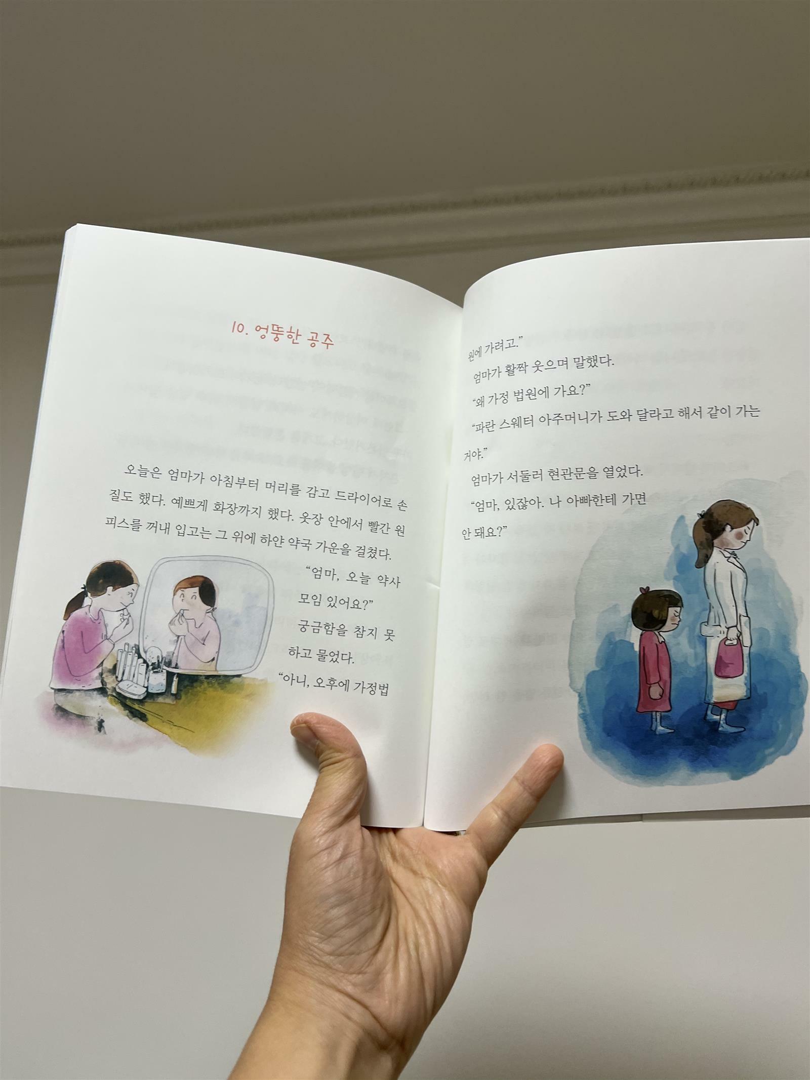'최엄지, 손엄지' 문고책을 읽어 보았습니다. 책에 대한 소개를 보지않고, 제목만 보았을 때 이름이 같은 두 아이의 이야기를 연상했습니다. 하지만 뜻밖에도 한 아이에 대한 이야기네요. 최엄지였던 아이가 손엄지가 되어서 겪는 이야기 입니다. 엄지의 감정 변화와 생각들이 잘 나타나 있어서 감정이입이 되는 책입니다. 엄지는 아빠와 엄마가 이혼하고 나서 손엄지로 성을 바꾸게 됩니다. 최씨였던 원래 아빠가 큰 가방을 들고 글을 쓰러 간다던 장면을 또렷이 기억하고 있습니다. 비오던 날 아빠를 배웅하던 엄지의 마음은 어땠을까요? 그 때 아빠는 마지막 밥상을 차리고 떠났습니다. 아빠와의 추억이 많은 엄지는 아빠를 그리워합니다. 이혼하고 떠난 것인 줄은 몰랐던 것이지요. 하지만 갑자기 이모의 소개로 손씨 아저씨와 엄마가 결혼을 하고 서울로 이사까지 와버립니다. 엄지와 상의하지 않고 엄지의 성도 손으로 바꿔버리지요. 이 모든 일의 원인은 이모때문인 것 같은 엄지는 이모가 마녀로 보입니다. 왜 마녀이모이지? 라는 생각을 했는데 엄지의 상황에는 충분히 그랬을 것 같아요. 2학년인 엄지는 생각보다 많은 것을 알고 이해하는 나이입니다. 하지만 어른들의 우려로 자세한 설명보다는 숨기는 것을 택했던 것입니다. 세상에는 참 다양한 가족의 형태가 있습니다. 아이들은 자신이 겪지 않은 것은 배척하기도 하고 낯설어 하기도 할 것 입니다. 그래서 이런 책을 통해 다양한 가족의 형태를 경험하고 이해해 보는 것은 참 좋은 교육인 것 같습니다. 말로 설명하는 것 보다 또래의 이야기를 통해 공감하며 알아가는 것이 더 이해하기 쉬울 것 같습니다. 엄지는 나중에 자신의 상황을 알게되고 이제 이모와 엄마를 보는 눈을 다르게 하였습니다. 더이상 이모가 마녀로 보이지 않았던 것입니다. 그렇습니다. 아무것도 모를 것 같지만 설명하고 알려주면 아이들도 다 이해하고 생각하는 것 같습니다. 아이들과 읽어보며 엄지의 마음을 함께 나눠보면 좋을 것 같네요. 출판사로부터 도서를 제공받아 직접 읽고 작성한 리뷰입니다. #책고래아이들 #국내창작동화 #이성자 #용달 #가족 #사랑 #친구 #우정 #위로 #꿈 #용기 #성장 #희망 #인생 #삶 #우수콘텐츠선정작품 #책고래 #책세상 #맘수다 #책세상맘수다카페 #최엄지손엄지