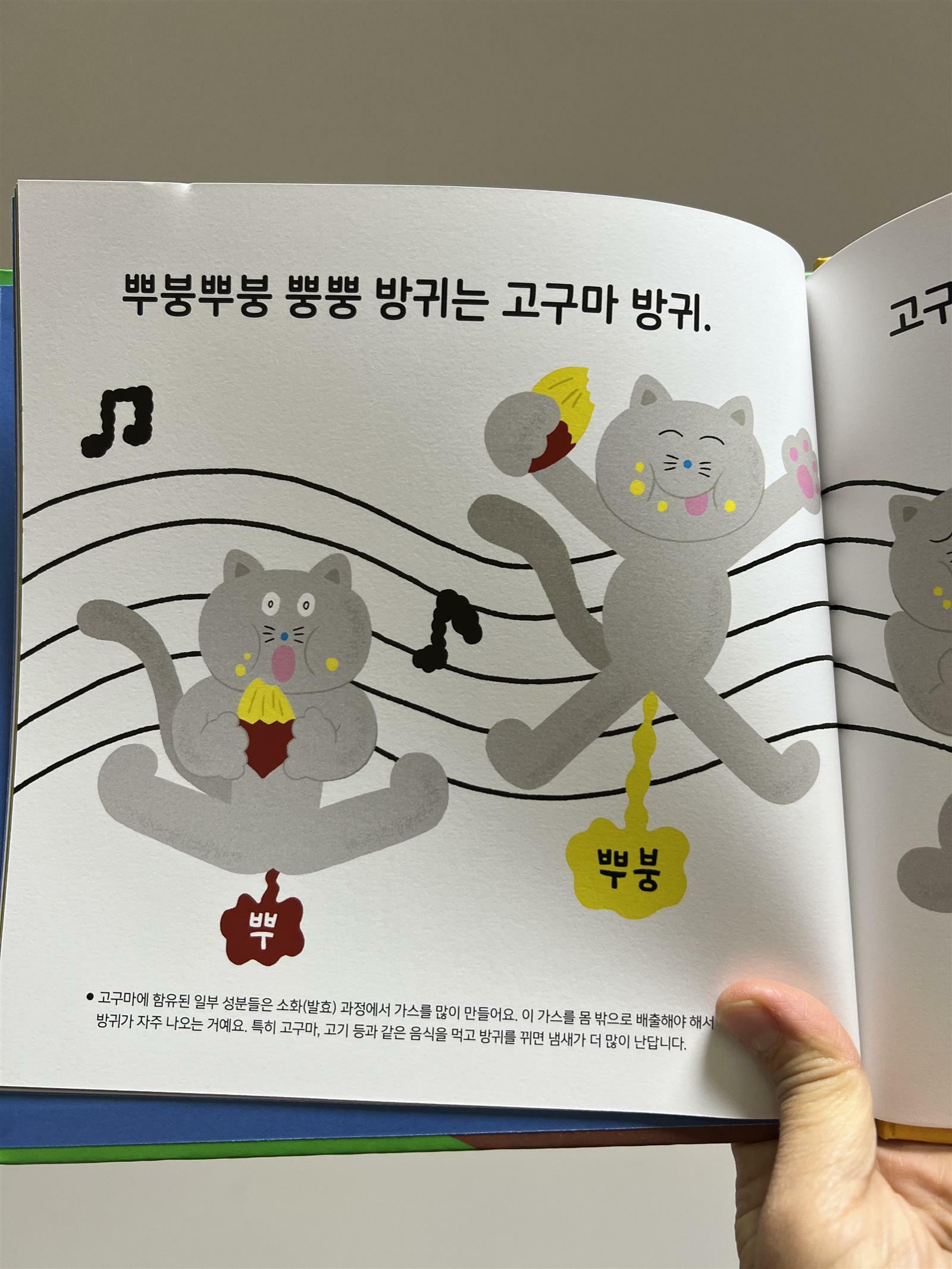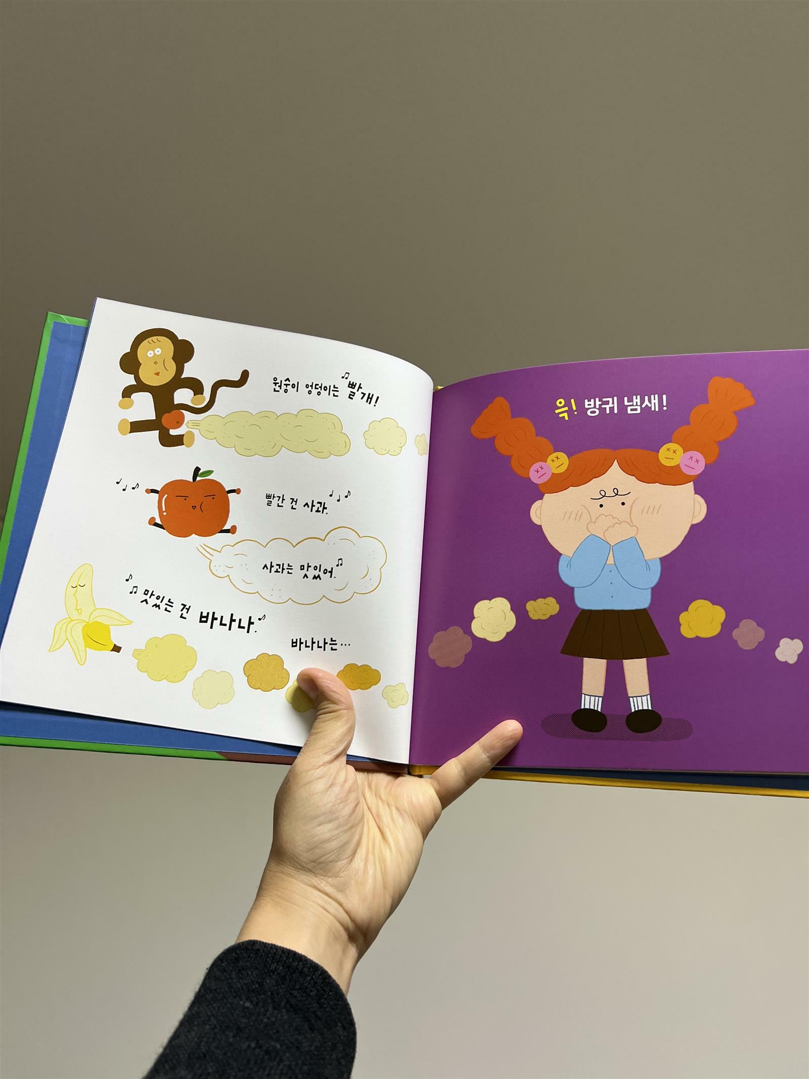 방귀 말놀이 그림책을 보았습니다. 예전에 본 응가 말놀이 와 같은 시리즈 책입니다. 아이들이 재미있게 읽을 수 있도록 그림과 글밥이 적당해요. 특히 아이들은 방귀난 응가를 참 좋아해서 이 책을 한 번 펼치면 자꾸 읽어 달라고 합니다. 첫 장에는 우리가 잘 아는 노랫말로 시작합니다. 아이가 노래를 모르더라도 엄마가 먼저 시작하면 귀를 쫑긋하고 집중해서 들을 것 같습니다. 저희 아이는 유치원에서 배웠다면서 같이 부르더라구요. 입에 착 붙는 말놀이라서 책을 읽는데 지루하지 않습니다. 책 장을 남길 때 마다 이어지는 방귀 이야기가 아이들의 흥미를 더욱 이끌어 내는 것 같습니다. 저희 집 초등 저학년 아이도 관심있게 책을 보더라구요. 조금 유치하게 생각 할 줄 알았는데 여전히 방귀나 응가를 좋아합니다. 책 장마다 작은 글씨로 배경지식을 익힐 수 있는 정보도 있습니다. 여러번 책을 보면서 조금 어려운 정보라도 이야기 해 주면 아이들은 금방 기억하더라구요. 유아부터 초등 저학년도 볼 만한 방귀 책인 것 같아 추천합니다. 그림만 보아도 재미있고, 한 장 한 장 다 꼼꼼하게 실펴보면 나름의 중요 지식 포인트도 있습니다. 스커크 방귀냄새가 지독한 것은 알았지만 어느정도 멀리 뿜는지는 몰랐는데 이 책을 통해 엄마도 같이 배워 갑니다. 책을 잘 보지 않던 아이들도 이 책은 잘 볼 것 같네요. 엄마와 같이 보면 더 재미있는 방귀 말놀이 책을 적극 추천합니다. 출판사로부터 도서를 제공받아 직접 읽고 작성한 리뷰입니다. #방귀말놀이 #컬처블룸 #컬처블룸리뷰단 #주니어rhk #키즈콘텐츠클럽