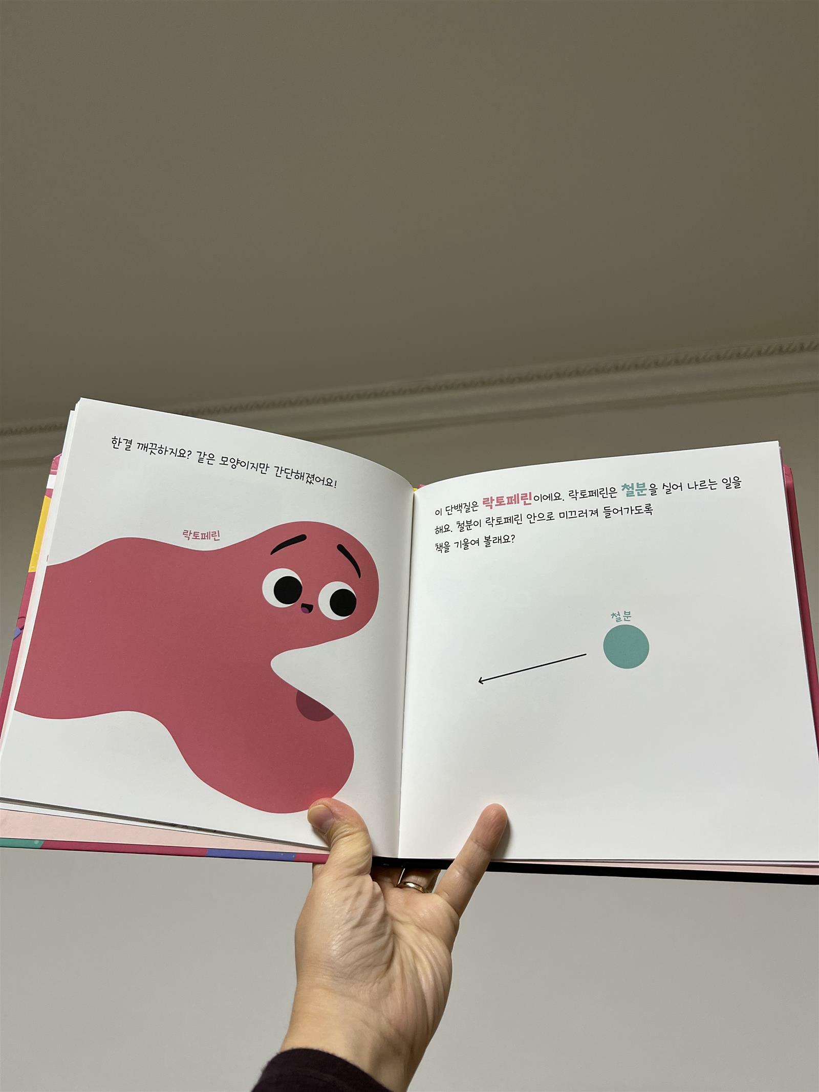 '단백질' 책을 보았습니다. 책세상 어린이 출판사에서 출간한 키즈유니버시티 시리즈 책입니다. 이 책의 장점은 쉽고 간결하게 그림을 통해 어려운 개념을 알려 준다는 것입니다. 이 시리즈 책을 여러권 보았는데 사실 어려운 내용들이지만 아이들의 눈높이에 맞게 잘 설명해 주고 있다는 것을 느꼈습니다. '단백질' 책도 일단 그림으로 자세히 아이들이 이해하기 쉽게 시작합니다. 다양한 직업이 있듯이 단백질도 다양한 역할이 있다는 내용으로 아이들의 호기심과 흥미를 일으킵니다. 단백질을 부르는 이름들이 참 많고, 어렵지만 그림과 함께 눈으로 먼저 익혀나가면서 읽으면 어렵다는 느낌보다는 있는 그 자체로 받아들일 수 있는 것 같아요. 저도 아이들과 책을 읽어주면서 같이 이해하고 이야기 나눌 수 있었습니다. 단백질이 먼지보다도 작다는 이야기를 하면서 책을 보면 그림을 통해 더 많은 이야기를 해 볼 수 있습니다. 또한 조금 어려운 용어가 나온다고 해도 그림이 설명을 잘 해주고 있어서 아이들이 어려운 것도 쉽게 받아들이는 것 같더라구요. 책을 읽으면서 저도 아이와 같이 단백질은 철분을 나르는 역할도 하고, 어떤 단백질은 리간드와 결합하여 성장 신호를 보낸다는 사실을 배웠습니다. 성장을 한다는 것은 쉽게 키가 자란다고 표현 할 수 있는데 아이들과 아이들 눈높이에서 함께 키가 쑥쑥 자라는 것도 단백질 덕분이라고 알려 주는 책입니다. 생화학분야를 따로 아이와 이야기 나눌 기회가 없었는데 이 책을 통해 가볍게 시작 할 수 있어서 좋은 것 같습니다. 아이들은 우리가 생각하는 것 보다 잘 이해하고 받아들이는 것 같아요. 키즈유니버시티 시리즈 책들 한 번 살펴보시고 아이들이 어렸을 때부터 과학적 사고를 풍부하게 하도록 도와주면 좋을 것 같습니다. 출판사로부터 도서를 제공받아 직접 읽고 작성한 리뷰입니다. #책세상 #맘수다 #책세상맘수다카페 #키즈유니버시티 #책세상어린이 #단백질 #바이러스 #아미노산 #아미노산사슬 #락토페린 #성장호르몬수용체 #리간드
