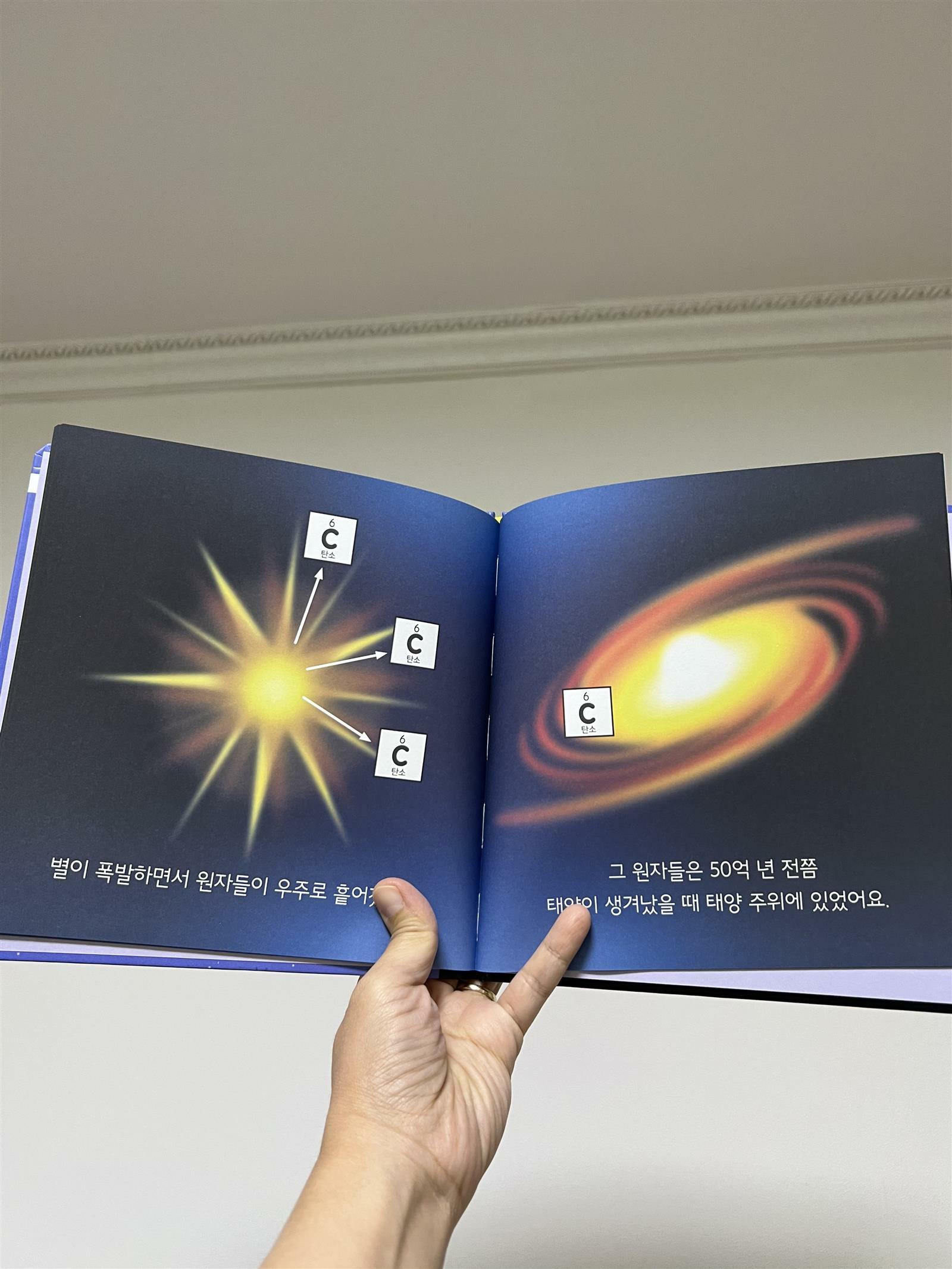 '천체물리학' 키즈 유니버시티 시리즈 책을 보았습니다. 이 책도 공을 시작으로 태양의 이야기까지 담고 있습니다. 태양에서 왜 많은 양의 에너지가 나오는지 이야기합니다. 원자들이 서로 뭉쳐지면서 많은 양의 에너지가 나오며 빛나고 뜨거운 것입니다. 저희 둘째는 호기심이 많을 나이여서 참 많은 질문을 합니다. 언젠가 태양이 무엇으로 만들어져 있는지 물어본 적이 있습니다. 물론 이 책의 내용을 그대로 전달하기에는 조금 무리가 있지만 그래도 이 책을 함께 보면서 아이의 호기심을 풀어나가보아도 좋을 것 같다는 생각을 했습니다. 우리가 알고 있는 원자의 종류들 대부분이 별에서 만들어졌다고 합니다. 그리고 우리 몸 속의 원자들도 별에서 만들어졌습니다. 결국 새로 태어난 별은 오래된 별이 만든 원자들로 이루어져 있습니다. 원자는 돌고 도는 순환을 하고 있고 우리 또한 돌고 도는 순환의 일부입니다. 오래된 별에서 나온 원자가 우리 몸속에서도 살고 있다는 것입니다. 천체 물리학이라고 해서 멀리 떨어진 우주 속의 이야기라고 생각했는데 우리 몸 속의 원자가 별에서 나온 것이라고 하면 참 신기한 것 같습니다. 이 책은 앞서 소개한 유기 화학 책을 읽고 나서 보면 좋을 것 같습니다. 우리의 삶 속에 천체 물리학이 함께 있다는 사실을 아이들과 이야기 하면서 책을 보면 좋을 것 같습니다. 아직 어려운 용어를 완전히 이해하기는 어렵지만 항상 과학이 가까이 있다는 것을 알고 있다면 어렵게 생각하지 않을 것 같습니다. 출판사로부터 도서를 제공받아 직접 읽고 작성한 리뷰입니다. #천체물리학 #책세상어린이 #키즈유니버시티 #크리스페리 #줄리아크레제노 #컬처블룸 #컬처블룸리뷰단