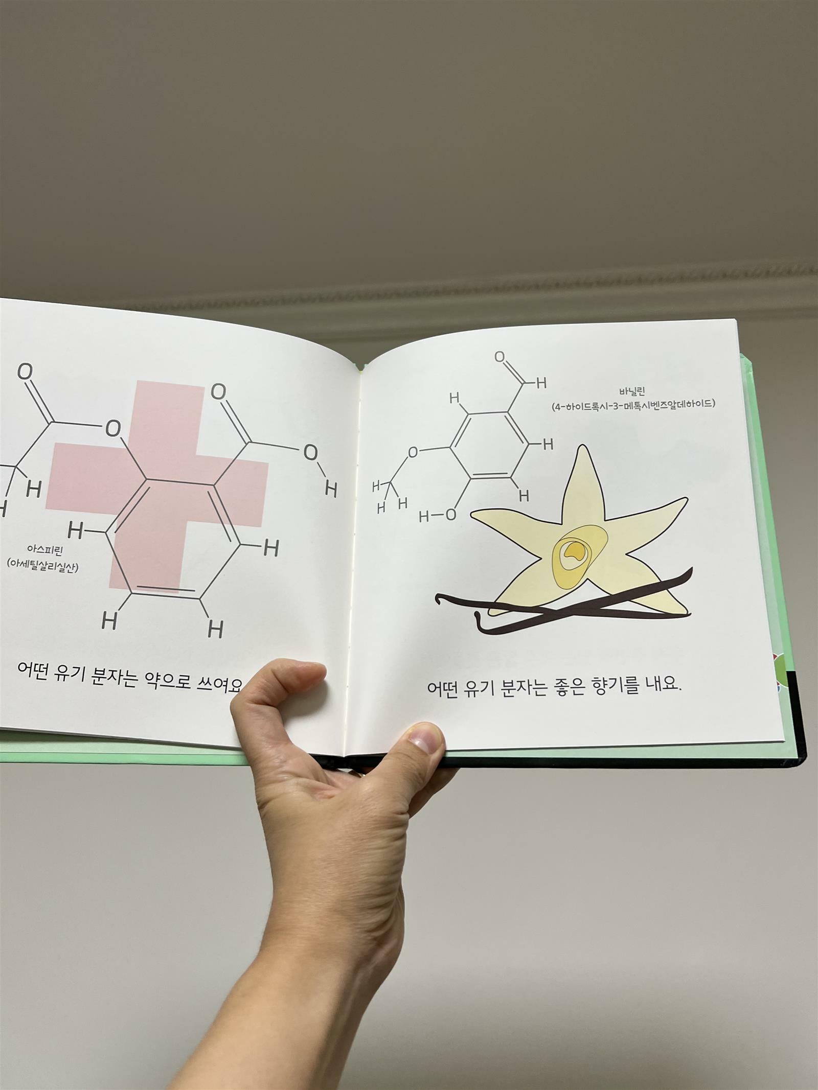 '유기화학' 키즈 유니버시티 시리즈 책을 읽어 보았습니다. 책의 크기도 작은 편이고 쪽수도 많지 않습니다. 하지만 그 안에 유기화학의 기초가 되는 이론적인 이야기가 잘 풀어져 있습니다. 사실 어른들도 이 분야를 공부하지 않았다면 잘 모를 것 같습니다. 저도 유기화학이라는 말을 자주 듣지 못했던 것 같습니다. 하지만 이 책을 통해 우리의 삶에 많은 부분을 차지하고 있는 분야임을 알았습니다. 공 하나로 시작하는 책의 내용은 짧고 명확하게 그 개념을 그림과 글로 설명하고 있습니다. 탄소원자라는 것에 대한 설명과 함께 결론적으로 우리는 늘 탄소원자와 함께 하고 있다는 것을 알려줍니다. 우리에게도 탄소에 수소가 결합한 유기분자가 포함되어 있는 것입니다. 탄소원소로 시작하여 유기분자까지 이어지는 설명이 매끄럽고 쉽게 표현되어 있습니다. 과학이란 것이 어렵다고 생각하면 끝이 없는 것 같습니다. 어려서부터 과학과 친해지고 많이 접하는 것이 좋은 것 같더라구요. 다양한 나무와 곤충에 관심이 많은 첫째아이와 함께 읽어나가기에 좋습니다. 결국 지구에 사는 모든 생물은 유기분자를 가지고 있다는 이 책의 이야기가 아이에게 신선하게 다가올 것 같습니다. 과학이 우리와 함께 있다는 것을 아이와 이야기하며 책을 읽어나가면 좋을 것 같아요. 유아부터 초등아이들까지도 추천하고 싶은 책입니다. 출판사로부터 도서를 제공받아 직접 읽고 작성한 리뷰입니다. #유기화학 #키즈유니버시티 #책세상어린이 #크리스페리 #카라플로렌스 #컬처블룸 #컬처블룸리뷰단