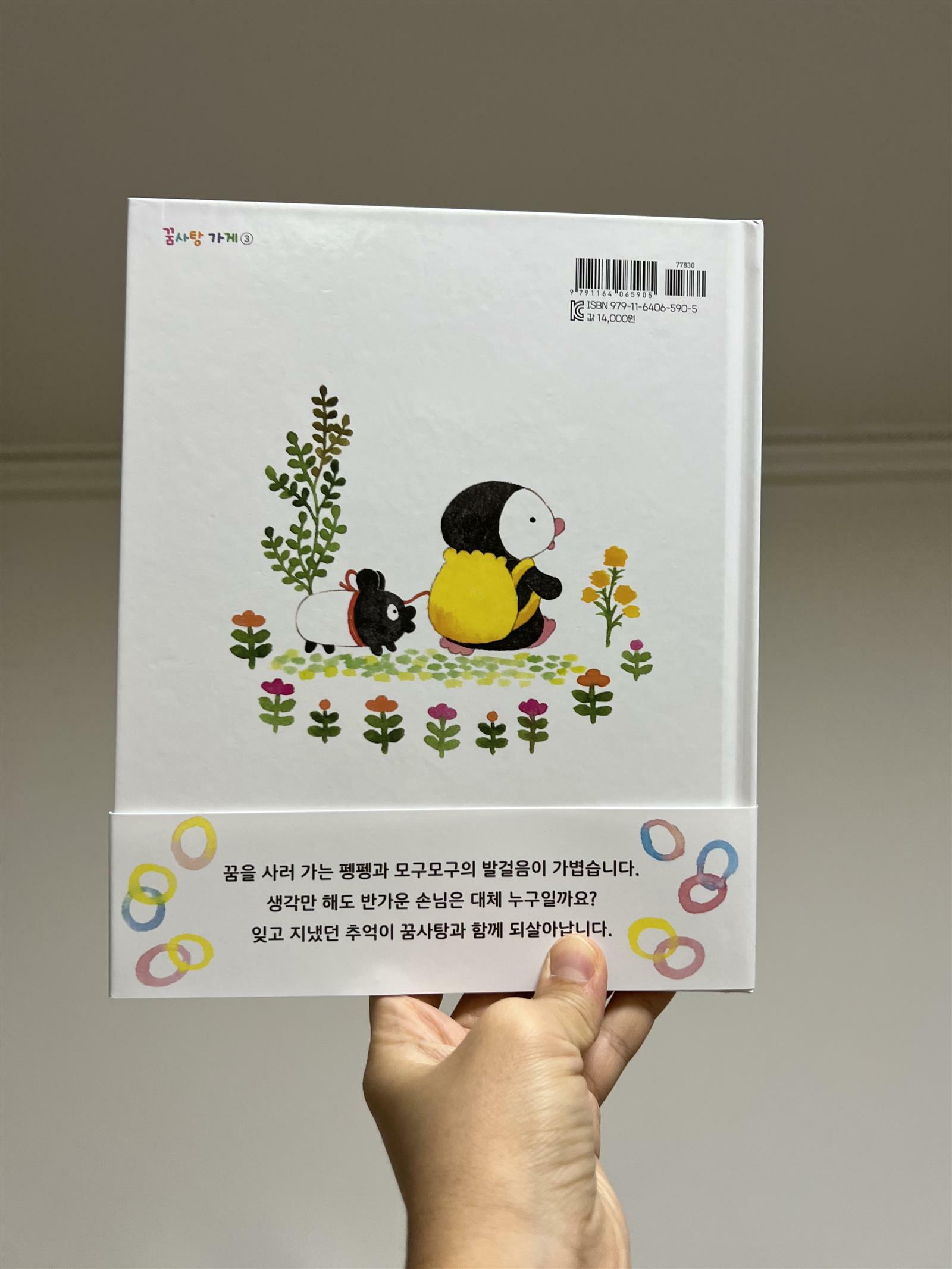 '반가운 손님과 꿈사탕 가게' 그림책을 읽어 보았습니다. 펭펭이라는 귀여운 펭권과 모구모구가 주인공입니다. 할아버지가 하시던 꿈사탕가게를 물려받아서 펭펭이 하고 있습니다. 모구모구는 펭펭을 쫓아다니며 꿈을 먹고 사탕으로 만들어줍니다. 이번에 꿈을 사러가는 집은 할아버지의 오랜 친구 페리 할아버지네 집입니다. 펭펭은 페리 할아버지와 추억에 잠겨 펭펭의 할아버지 이야기를 나누고 맛있는 과자도 먹는 시간이 좋습니다. 드디어 페리 할아버지께서 낮잠을 주무십니다. 모구모구와 펭펭은 페리 할아버지의 꿈을 봅니다. 꿈에는 그립던 할아버지나 나오네요. 꿈에서 할아버지께서 나무 아래에 상자를 묻고 계십니다. 잠에서 깬 페리할아버지의 이야기를 따라 나무 아래에 가보니 정말 상자가 있습니다. 펭펭의 할아버지 물건들이 상자안에 고스란히 남아 있었습니다. 추억을 꺼내보며 신기해합니다. 펭펭은 할아버지의 물건들을 챙겨서 돌아갑니다. 꿈이란 어떤 것일까요? 우리의 추억이 담겨 있는 꿈을 꾸기도 합니다. 펭펭의 꿈사탕 가게는 오늘도 문을 엽니다. 어떤 손님들이 올끼? 늘 궁금하고 기대됩니다. 아이들과 이 책을 읽고 잠자리에 든다면 기대와 재미를 가지고 잠들 수 있을 것 같아요. 맛있는 꿈사탕을 만들기 위해 좋은 추억을 만들고 달콤한 잠이 들수있으면 좋겠습니다. 유아부터 엄마와 함께 읽어보기 좋은 책인 것 같습니다. 다른 시리즈 책들도 궁금해지네요. 출판사로부터 도서를 제공받아 직접 읽고 작성한 리뷰입니다. #반가운손님과꿈사탕가게 #길벗스쿨 #콘도우아키 #컬처블룸 #컬처블룸리뷰단