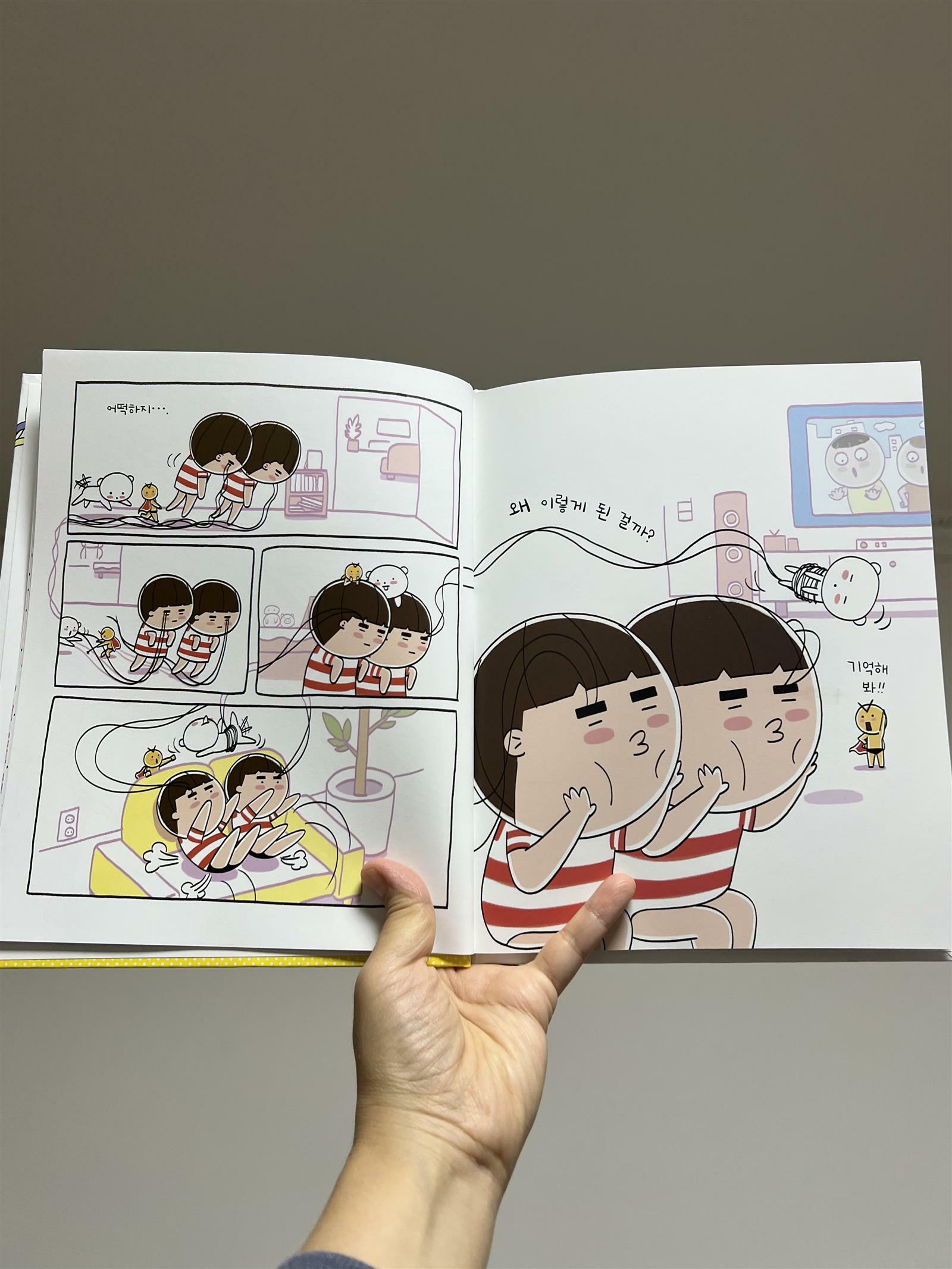 '하늘 하늘 긴 눈썹' 그림책을 보았습니다. 올리 출판사 책으로 그림체나 글밥이 유아들부터 보기에 참 좋습니다. 책의 주인공은 쌍둥이 형제입니다. 어느 날 아침 눈을 떠보니 쌍둥이의 눈썹이 길어져 있습니다. 왜 길어 졌는지 알 수 없어서 어리둥절만 하다가 생각해 봅니다. 소시지 많이 먹으날 소시지 영양분이 전부 눈썹으로 간 것일끼요? 쌍둥이 형제만의 상상력으로 긴 눈썹에 대해 생각합니다. 그리고나서 긴 눈썹으로 할 수 있는 일들을 하나씩 생각하 봅니다. 눈썹으로 연을 날리는 표지 그림처럼 기상 천외한 상상력이 많이 나옵니다. 아이들이 늘상 하는 상상력들입니다. 책 장을 한 장 씩 넘기다보면 그림을 자세히 보아야 합니다. 그림이 더 많은 이야기를 들여주고 있습니다. 긴 눈썹이 생긴다면 무엇을 할 수 있을까? 아이들과 질문하고 대답하면 끝없는 새로운 이야기들이 나올 것 같습니다. 이 책에서도 쌍둥이 형제가 긴 눈썹으로 하고 싶은 일들을 나열하고 있습니다. 그러다 문득 걱정도 되겠지요? 둘의 눈썹이 서로 엉켜버려서 묶이고 하나가 될까봐 걱정합니다. 정말 기발한 생각들이 참 많이 나오는 그림책입니다. 그리고 나타난 가위! 나름의 반전 해결책이 나옵니다. 엄마는 별로 대수롭지 않다는 듯이 긴 눈썹을 싹둑 잘라버립니다. 엄마를 통해 어른들의 모습을 볼 수 있습니다. 어쩌면 아이들의 많은 상상력을 쓸데없는 생각이라며 말을 싹둑 잘랐던 경험이 누구나 있을 것입니다. 저도 유난히 상상력이 뛰어나 아이 덕분에 매일 매일 귀가 따가울 지경입니다. 엄마도 아이도 함께 보면서 긴 눈썹에 대해 이야기하며 이 책을 볼 때 만큼은 실컷 상상해 보면 좋을 것 같습니다. 재미있는 독후 활동도 해 볼 수 있는 책인 것 같네요 출판사로부터 도서를 제공받아 직접 읽고 작성한 리뷰입니다. #하늘하늘긴눈썹 #올리 #오우성 #책세상 #맘수다 #책세상맘수다카페 #상상 #유머 #재미 #상상놀이 #쌍둥이 #반전 #편견깨기