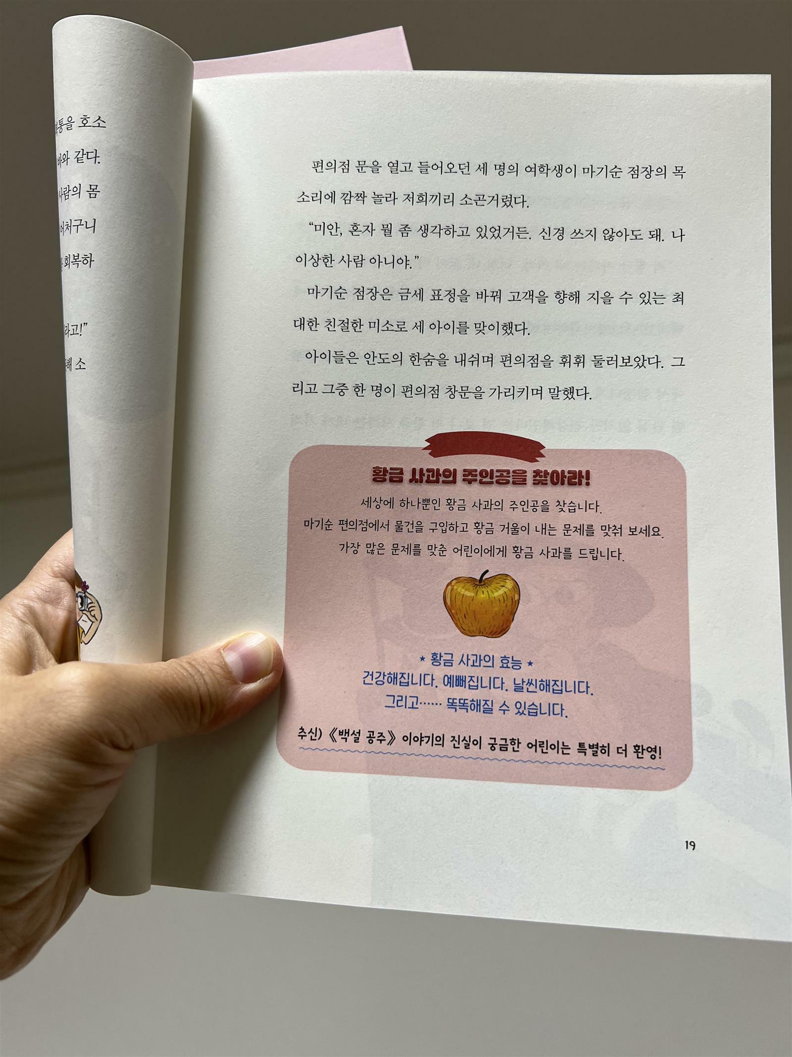 '편의점을 털어라; 인체편'을 읽어 보았습니다. 책 표지부터 발랄하고 개구진 아이들의 표정이 관심을 끌게 만듭니다. 이 책을 펼쳐보니 다양한 인체 관련 이야기가 나옵니다. 그 중에서 첫 번째 이야기 치아에 대한 것을 살펴보았습니다. 책의 본론을 읽기 전에 프롤로그를 꼭 읽어보아야 합니다. 왜 이야기가 시작되었는지 재미있게 나옵니다. 백설공주의 새엄마 이야기인데 사람들로부터 질타를 받았던 것이 오해라는 이야기입니다. 사실 사춘기가 와서 집을 나가 백설공주를 걱정하며 찾아가서 사과를 준 것이 오해를 불러 일으킨 것입니다. 저녁에 사과를 먹고 위가 좋지 않았던 백설공주가 복통을 호소했기 때문이지요. 뭔가 재미있고 신선한 이야기로 시작하다보니 더욱 흥미가 솟아오릅니다. 첫 번째 치아 이야기도 아이들이 이해하기 쉽게 치아의 그림을 자세히 보여주며 충치균에 대해서도 설명해 주고 있습니다. 이 책의 주인공들은 백설공주 새엄마의 편의점에서 문제를 맞추고 황금사과를 차지하기 위해 열심입니다. 황금사과라는 상이 있기 때문에 이 책을 읽어나가는 독자도 궁금증을 가지고 누가 과연 상을 차지할 것인지 집중해서 볼 수 있습니다. 챕터 별로 흥미로운 인체 이야기를 들려주고 있어서 초등 중학년들은 잘 읽어 나갈 것 같습니다. 초등 저학년의 경우 글밥이 조금 많을 수도 있지만 내용이 어렵지 않아서 차근차근 한 챕터씩 읽어나가면 금방 읽어 나갈 수 있을 것 같네요. 초등학생들에게 적극 추천하는 책입니다. 흥미로운 이야기를 통해 인체에 대한 배경지식도 쑥쑥 자라날 것 같습니다. 출판사로부터 도서를 제공받아 직접 읽고 작성한 리뷰입니다. #편의점을털어라인체편 #북멘토 #고은지 #도치맘서평