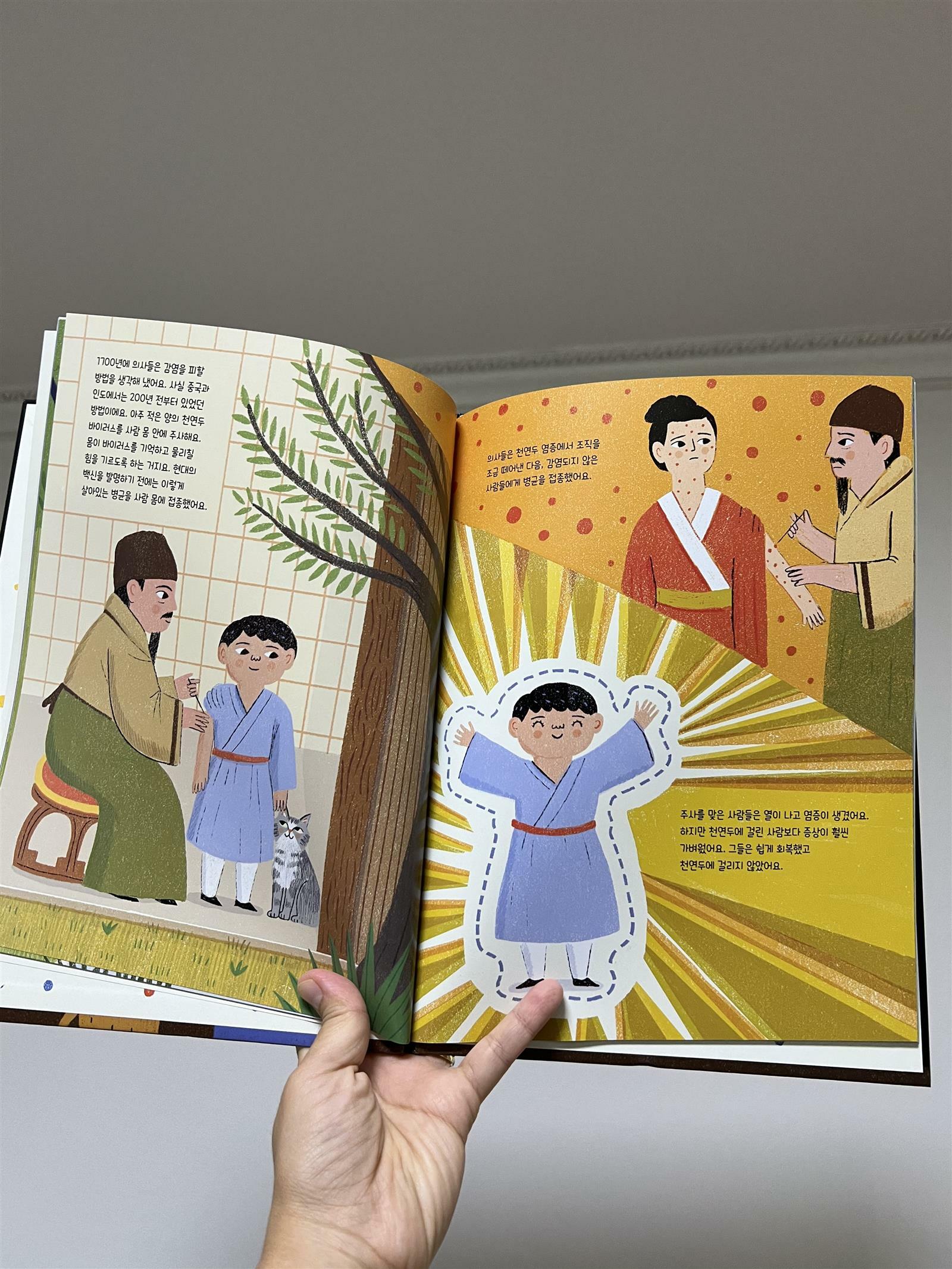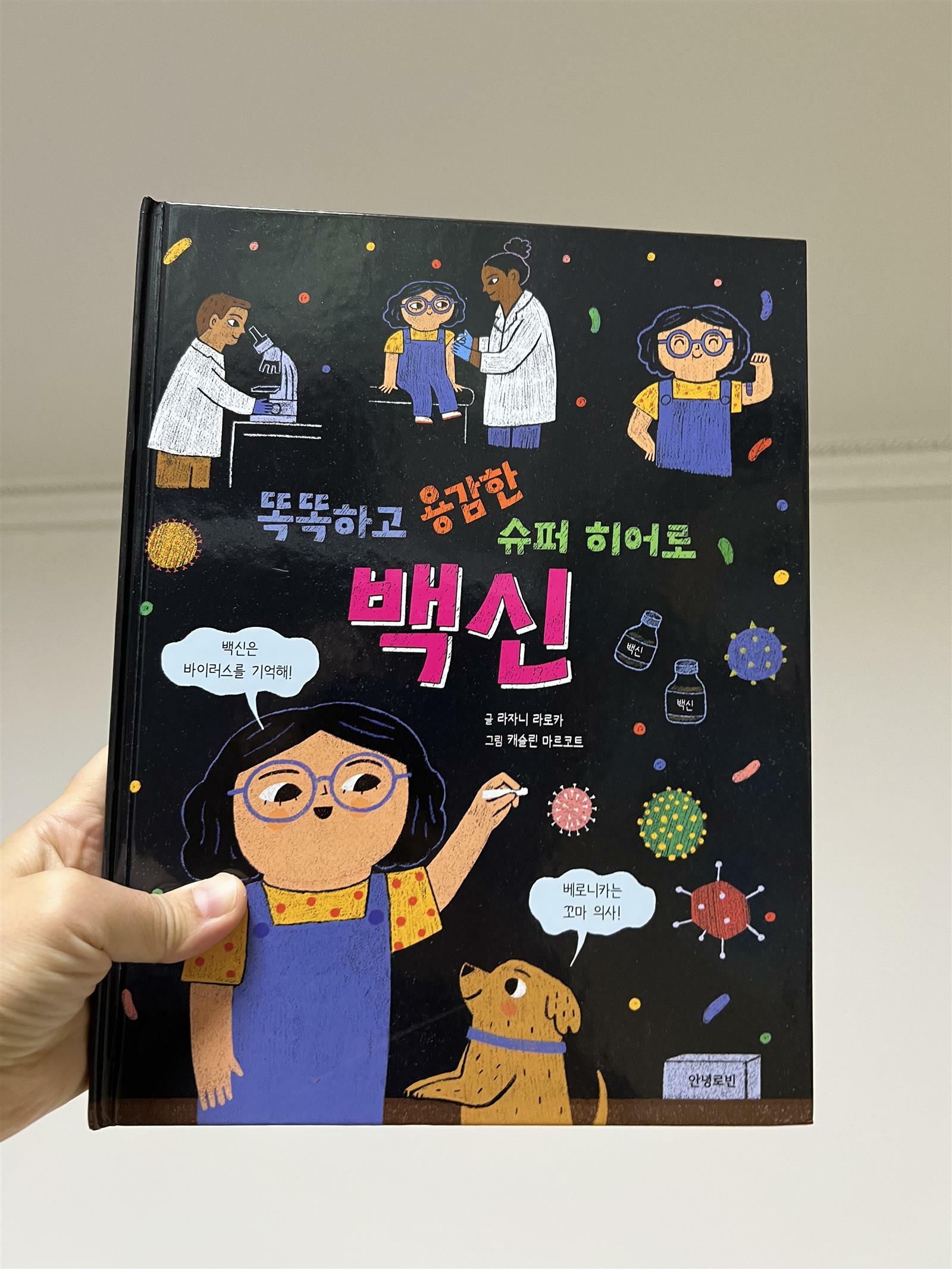 '똑똑하고 용감한 슈퍼 히어로 백신' 책을 읽어 보았습니다. 책 표지에 백신은 바이러스를 기억한다는 아이 말풍선이 눈에 확 들어옵니다. 코로나로 인해 전세계적으로 참 많은 일을 겪고 바이러스에 대해서도 관심이 많아졌습니다. 저희 둘째는 돌이 되자 코로나로 인해 외출이 어려웠었는데 얼마나 나가고 싶으면 마스크가 힘든 유아임에도 자발적으로 마스크를 쓰겠다고 했었습니다. 그만큼 코로나로 인해 아이들도 많은 피해를 입고 어려움을 겪었습니다. 이 책은 코로나 뿐만 아니라 백신에 대한 이야기를 전해주고 있습니다. 코로나라는 말을 많이 들었던 아이들이 코로나 백신이나 다양한 백신에 대해서도 궁금해 할 것 같습니다. 그런한 궁금증을 이 책을 통해 해결할 수 있습니다. 조금은 어려운 내용이지만 그림과 함께 아이들 눈높이에서 설명을 해주고 있습니다. 어떻게 백신이 개발되었는지 과거 천연두 이야기부터 쭉 진행되어 옵니다. 백신이 무엇인지 자연스럽게 받아들이면서 이해해 볼 수 있는 그림책입니다. 유아들에게 조금 어려운 내용 일수도 있지만 가볍게 엄마와 이야기하며 읽어본다면 도움이 될 것 같습니다. 초등학생이라면 스스로 읽으면서 이해해 나갈 수 있을 것 같아요. 요즘 독감백신을 맞아야하는데 이 책을 한번 같이 보고나면 독감백신에 대한 거부감도 좀 줄어들 것 같습니다. 아이들이 주사가 무섭긴 하지만 꼭 필요하고 나에게 어떻게 도움이 되는지 이해한다면 백신을 맞는데 조금은 더 용감해 질 수 있을 것 같습니다. '똑똑하고 용감한 슈퍼 히어로 백신' 책을 읽으면서 우리 생활에 꼭 필요한 백신을 이해하고 감염병에 대해서도 배경지식을 넓혀보는 시간이 되었으면 좋겠습니다. 아이들과 함께 읽어보시길 추천합니다. 출판사로부터 도서를 제공받아 직접 읽고 작성한 리뷰입니다. #똑똑하고용감한슈퍼히어로백신 #안녕로빈 #라자니라로카 #책세상 #맘수다 #책세상맘수다카페 #백신 #의사 #병원 #코로나19 #바이러스 #세균 #의학
