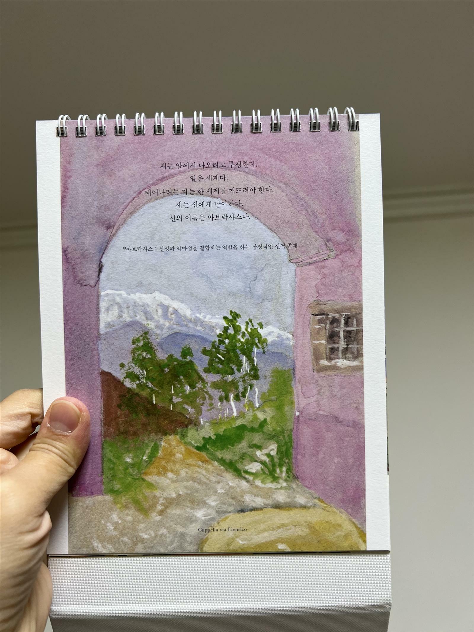 벌써 올해 가을이 저물어 가는 것 같습니다. 곧 추워지면서 겨울이 오고 금방 2024년이 오겠지요?! 내년을 계획하고 준비하는 마음으로 헤르만헤세 데미안 달력을 소개하고자 합니다. 제가 소개하는 달력은 탁상용 소형입니다. 크기가 적당해서 탁상에 많은 자리를 차지하지 않아요. 이정도 사이즈면 중요 일정 적기에 좋은 것 같습니다. 하지만 조금 큰 사이즈 원하시면 일반 사이즈로 선택하셔도 좋을 것 같습니다. 이번 달력은 소설 데미안의 좋은 글귀들이 함께 실려있습다. 그림도 보고 있으면 차분해집니다. 이 그림들도 해르만헤세의 작품이라고 합니다. 소설만 쓰는 작가라고 생각했는데 그림실력도 화가 못지 않습니다. 해르만헤세의 그림과 글을 함께 볼 수 있는 달력이라소 더 큰 의미가 있는 것 같습니다. 한쪽 면을 통해 일정을 확인하고 돌려서 그림을 감상 할 수 있으니 일석이조입니다. 핸드폰으로 일정을 적는 일이 많지만 탁상달력은 꼭 하나쯤 필요 한 것 같습니다. 이왕이면 자주 보는 달력이니까 좋은 그림과 함께 있는 것을 선택하면 좋을 것 같습니다. 종이재질도 도톰하고 연필이나 펜으로 적기에 좋습니다. 미끌거리는 재질이 아니라서 저는 더 좋은 것 같아요. 열심히 내년 계획을 세우고 미리 준비하시면 좋을 것 같습니다. 아이들과도 함께 내년 생일도 적어 보면서 약간의 설림을 가져보기에도 좋을 것 같아요. 달력의 올해 12월부터 있어서 곧 달력을 펼쳐 볼 날이 올 것 같습니다. 출판사로부터 제품을 제공받아 직접 사용하고 작성한 리뷰입니다. #헤르만헤세달력 #탁상달력 #소형 #캘린더2024 #데미안 #컬처블룸 #컬처블룸리뷰단 #북엔