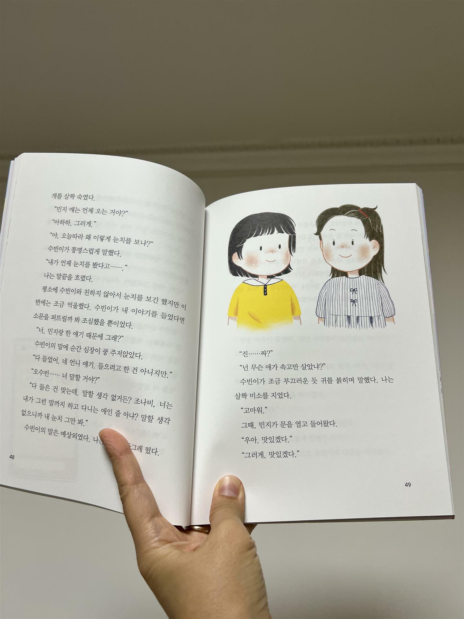 개암나무 출판사 문고책 ' 내 비밀, 지켜 줄 거지?' 책을 읽어 보았습니다. 아이에게 책을 주기 전에 제가 먼저 읽고 있었는데 아이가 다가오더니 읽어보고 싶다고 하더라구요. 먼저 읽어 보고 싶다고 하면서 관심을 보이니 뿌듯하였습니다. 이 책은 책 제목부터 아이들의 호기심을 불러 일으키는 것 같습니다. '비밀' 이라는 단어는 아이들이 민감하게 생각하는 주제가 아닐까? 생각합니다. 이 책의 주인공 조나비는 전학을 가게 됩니다. 그 이유는 아픈 언니의 병원 가까운 곳으로 이사를 갔기 때문입니다. 전학이라는 이슈도 아이들에게는 참 쉽지 않은 것 같습니다. 익숙한 곳을 벗어나 새로운 곳에 적응한다는 것이 어른도 쉽지 않기 때문입니다. 나비는 친구가 없어서 심심했는데 마침 한 친구가 다가와서 같은 그룹에 들어 가게 됩니다. 3학년인 나비는 또래 친구가 정말 필요한 나이입니다. 그래서 어쩌면 다가오는 친구에게 고마움을 느끼며 금방 친해질 수 있는 것 같습니다. 그러던 어느 날, 며칠 사이에 금방 친해진 친구들 사이에서 문제가 발생합니다. 마음을 열게 된 나비는 자신의 비밀을 털어 놓게 되고 다음날 자신의 비밀이 탄로가 났다는 것을 알게 된 것이지요. 과연 이 아이들은 어떻게 문제를 해결해 나갈까요? 초등 저학년 아이들에게 흔하게 있을 법한 이야기라서 그런지 몰입해서 읽어 나가게 되는 책입니다. 나비의 비밀은 언니였고, 언니가 아픈 것에 대해 나비는 숨기고 싶었던 것입니다. 장애가 있는 나비의 언니와 이 아픔을 함께 공유한다는 것을 책을 통해 간접적으로 느끼고 배울 수 있습니다. 내가 직접 경험 한 일이 아니라면 공감이 어렵고 편견이 생기기 마련입니다. 하지만 이렇게 책을 통해 나비의 이야기를 공감하면서 나에게 있던 편견을 바꿔보는 시간을 갖는다면 참 좋을 것 같습니다. 초등 저학년 아이들부터 추천해 드리고 싶은 문고책입니다. 출판사로부터 도서를 제공받아 직접 읽고 작성한 리뷰입니다. #개암나무 #내비밀지켜줄거지 #정승현 #편견 #장애 #비밀 #관계