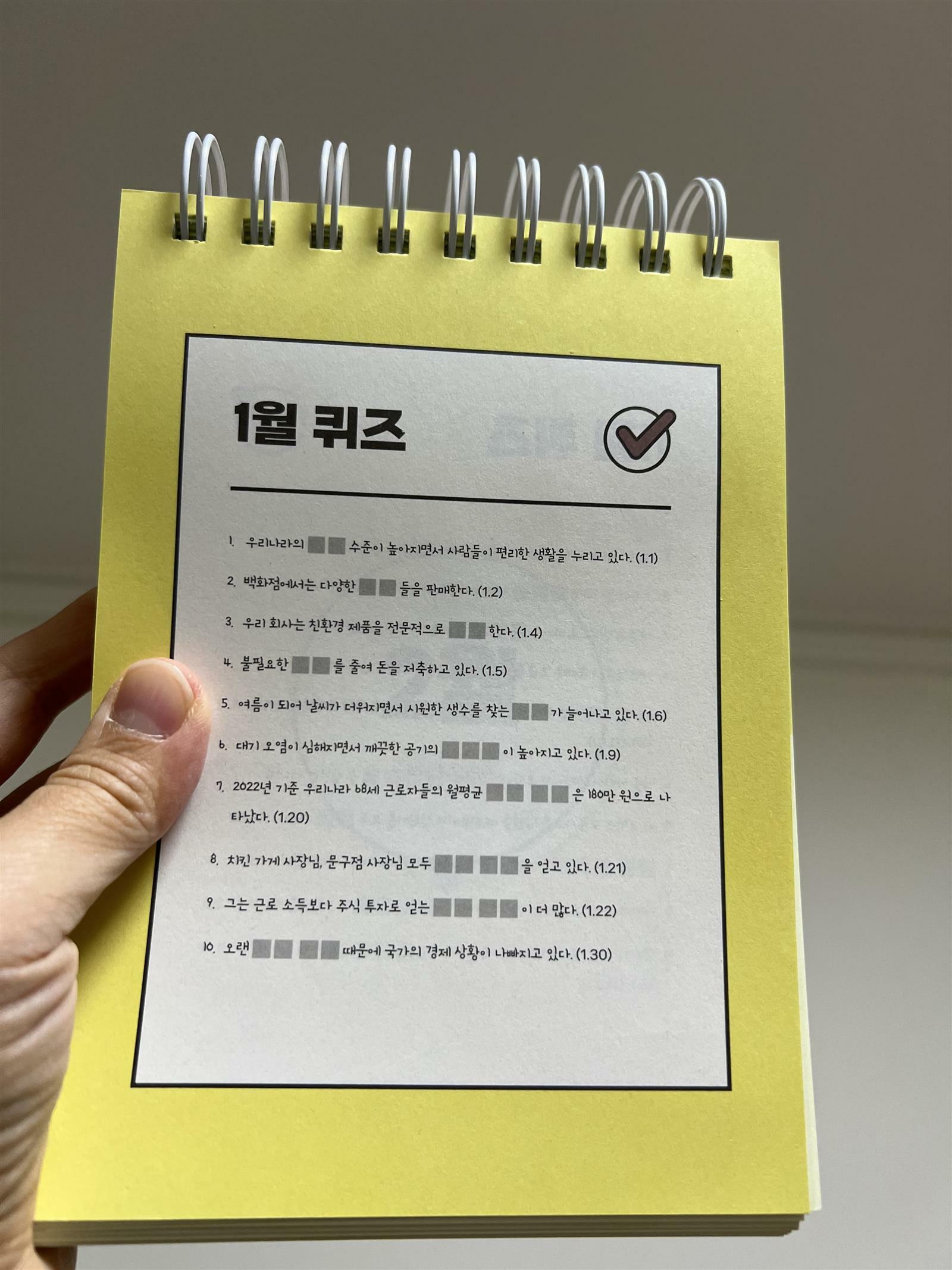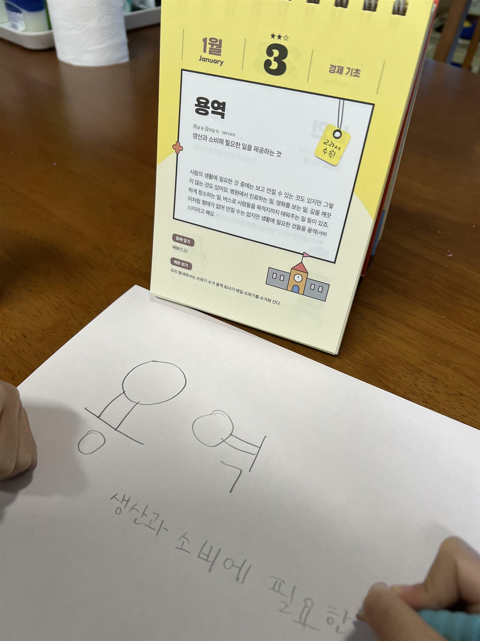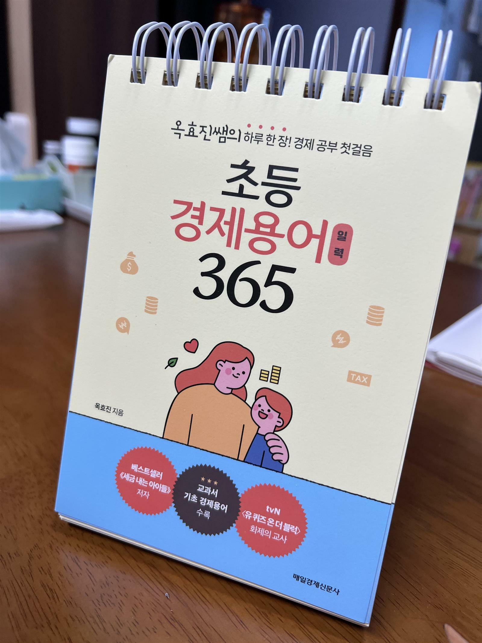 아이가 초등학교에 가면서 교과나 학습에 고민이 많아 지더라구요. 그 중에서 저는 경제 분야를 어떻게 알려주고 시작해야 하는지 고민이 많았습니다. 경제관련 서적도 챙겨서 보여 줬는데 아이가 관심이 없어서 포기하게 되더라구요. 그만큼 경제라는 분야가 접근하기 쉽지 않은 것 같습니다. 저부터 경제에 큰 관심이 없어서 더 힘든 것 같았습니다. 이를 극복하기 위해서 그리고 아이와 함께 한 발 나아가기 위해 '초등 경제용어 365' 일력을 보기 시작 하였습니다. 성인이 보면서도 많이 배울 수 있는 일력입니다. 오늘 날짜에 맞춰서 시작해도 좋지만 저는 첫 장부터 차근 차근 해보았습니다. 일력의 저자는 '세금 내는 아이들' 저자이신 옥효진 선생님입니다. 아이들과 직접 부딪혀가면서 경제를 가르치신 분이라서 믿고 볼 수 있겠더라구요. 무엇보다 경제라는 분야에 어려운 용어가 나오니 이렇게 일력을 통해 용어를 접하는 것은 큰 도움이 되는 것 같습니다. 교과서 기초 경제용어를 중심으로 나와있어서 일력을 통해 교과공부도 되는 것 같습니다. 미리 예습을 하기에도 용어공부가 먼저라고 생각이 들어서 이번 일력이 참 마음에 듭니다. 아이와 한 장씩 넘겨가면서 살펴보았습니다. 두툼한 일력이고 넘기기 쉬워서 탁상에 놓고 보기에 좋습니다. 반년이 지나면 돌려서 다시 넘겨 보면 됩니다. 저희집은 식탁에 놓고 눈에 잘 띄도록 놓아 보았습니다. 밥 먹을 때 한 번씩 보면 그 날 분량을 채우기 좋을 것 같습니다. 아이가 소리내어 읽어보는 영상도 찍어 보았습니다. 용어에 따른 간단한 정의와 설명이 구체적으로 잘 나와 있습니다. 아이가 혼자 읽으면서 이해하기에 좋더라구요. 용어 아래에는 작은 글씨로 한자도 함께 나와 있어서 도움이 되었습니다. 같은 소리여도 한자에 따라 뜻이 달라지기 때문에 한자를 빼 놓을 수 없는 것 같습니다. 용어 정의를 읽어 보고 나서는 아래의 예문도 함께 보면 좋을 것 같더라구요. 저는 아이가 굵은 글씨 정의만 옮겨 적도록 하였는데 초등 고학년의 경우는 직접 예문을 만들어 보아도 좋을 것 같더라구요. 예문을 만들다보면 완전히 내 것으로 흡수 할 수 있을 것 같습니다. 저희 아이는 아직 저학년이라서 한 줄 정의를 따라 써보는 것도 큰 도움이 되겠더라구요. 아이가 자발적으로 그림도 작게 그렸습니다. 저학년의 경우에는 자신이 이해한 것을 예시로 그려보아도좋을 것 같습니다. 노트 하나를 정해서 지속적으로 따라적다보면 나만의 경제용어 노트를 완성 할 수 있을 것 같습니다. 완성하고 보면 참 뿌듯 할 것 같네요. 일력을 넘기다보면 그 달에 배운 용어를 체크해 볼 수 있는 문제가 수록되어 있습니다. 간단하게 테스트를 해보면서 내가 얼만큼 알고 있는지 확인 해 볼 수 있어서 좋을 것 같습니다. 경제용어르고 하면 조금 부담 스러운데 '초등 경제용어 365' 일력을 통해 조금씩 노출해 보시길 추천합니다. 매일 한장씩 읽어보면서 경제와 친해 질 수 있는 것 같아요. 출판사로부터 도서를 제공받아 직접 읽고 작성한 리뷰입니다. #매일경제신문사 #옥효진 #초등경제용어365 #일력 #책세상 #맘수다 #책세상맘수다카페