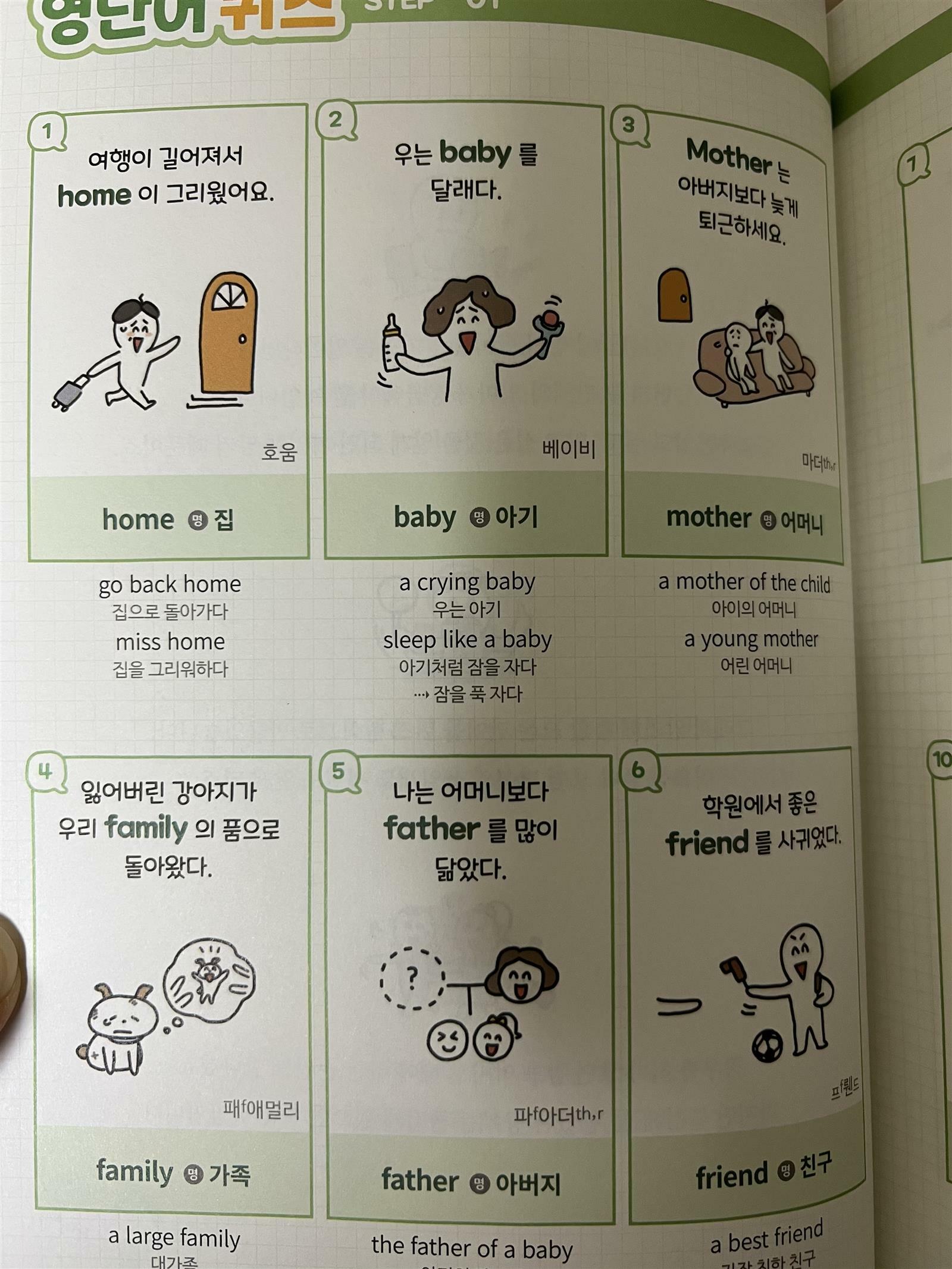 '읽으면 영어천재가 되는 만화책 영단어 퀴즈' 를 읽어 보았습니다. 영어천재가 된다고하니 호기심이 생기더라구요. 첫 장을 펼쳐보니 작가가 이 책을 만들게 된 이유가 나오네요. 아이들이 조금이라도 재미있게 공부하길 원하는 마음으로 만든 책 같습니다. 그리고 기억하기에 좋은 퀴즈라는 형태로 단어를 알려주기 때문에 아이들이 부담없이 인출하면서 공부 할 수 있는 책입니다. 책장을 넘겨보니 먼저 퀴즈가 나옵니다. 가볍지만 많은 내용을 담고 있는 퀴즈들을 재미있게 보면서 풀어 보면 좋을 것 같아요. 시험이 아니니 부담없이 풀고 내일 또 풀어보면 기억하게 쉬워 질 것 같네요. 일단 펼쳐서 봐야 입력이 되는데 어떤 책이든 공부와 연관된 책을 보기에 조금 어려움이 있을 것 같아요. 하지만 이 책은 공부를 한다는 느낌보다 정말 술술 읽어가면서 영단어를 습득해가는 책입니다. 상황에 맞는 만화와 중요 영단어들이 적절히 조합되어 있어서 영어가 익숙하지 않은 아이들이 처음 보기에도 좋습니다. 영어 문장을 통해 익혀가는 것이 좋긴 하지만 영어가 익숙하지 않은 아이들은 일단 단어를 빠르게 익히는 것이 중요합니다. 무턱대고 외우기에는 재미없고 지루하기 때문에 이 책이 더 큰 효과를 가져 올 수 있을 것 같네요. 영어가 아직 익숙하지 않고 영단어를 빠르게 익혀보고 싶은 초등 학생들에게 추천하고 싶은 책입니다. 영단어도 익히고 퀴즈를 통해 확인도 해보면 좋을 것 같아요. 컬처블룸을 통해 출판사에서 도서를 제공받아 직접 읽고 작성한 리뷰입니다. #읽으면영어천재가되는만화책영단어퀴즈 #올드스테이즈 #컬처블룸 #컬처블룸리뷰단