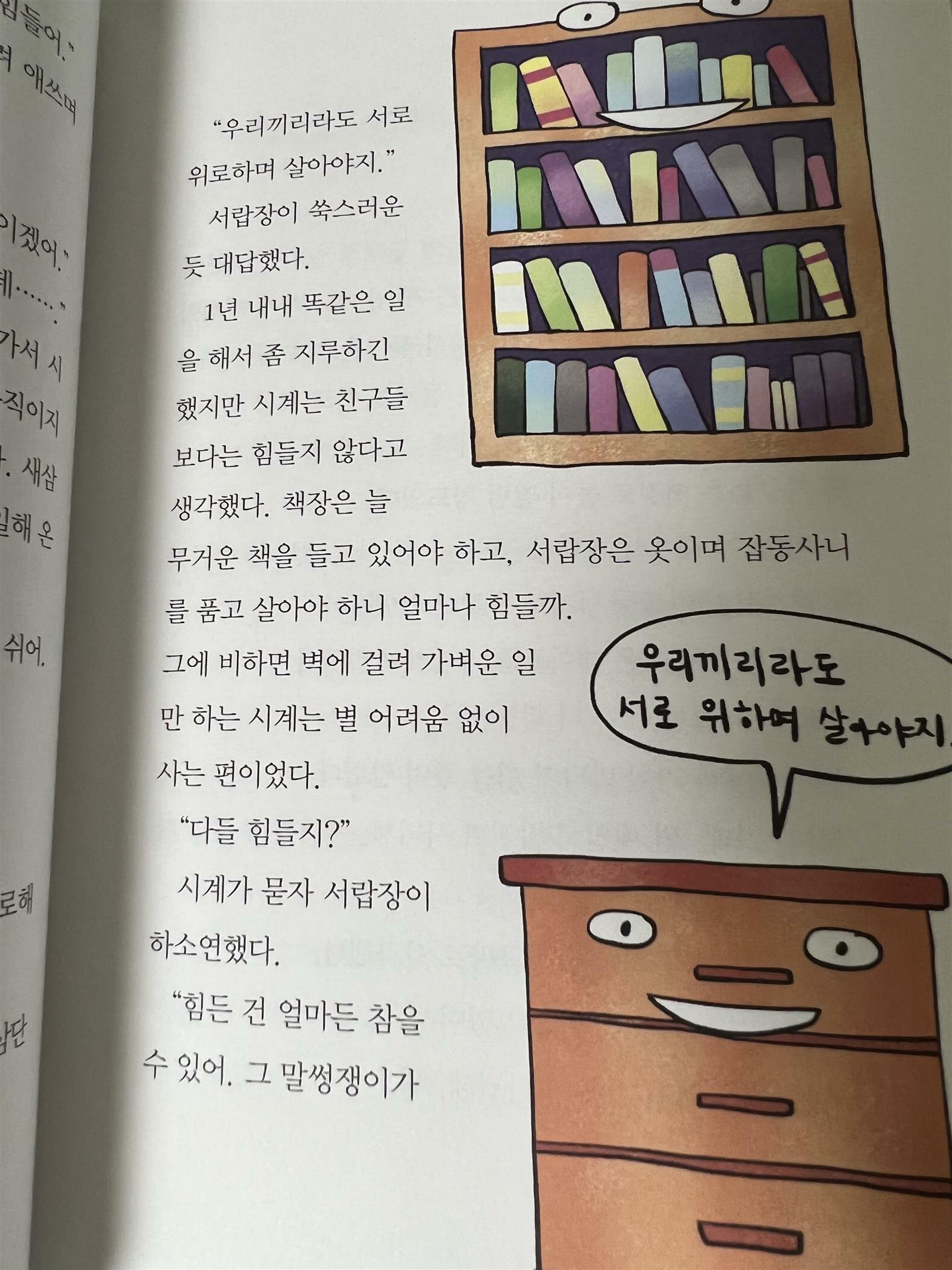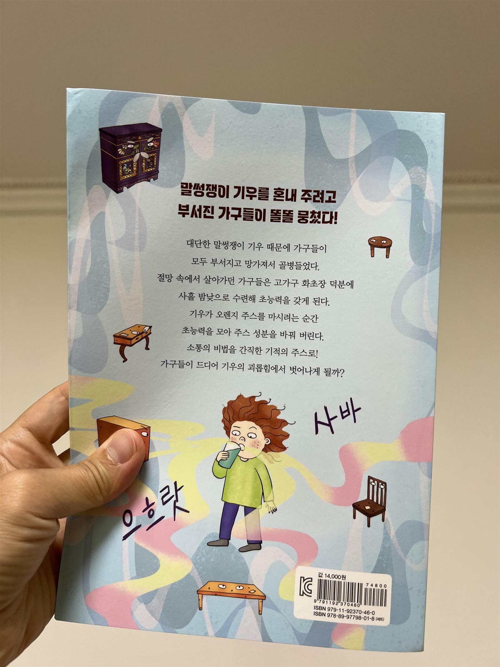 '가구들이 화났다' 문고책을 읽어 보았습니다. 책 제목과 그림이 참 흥미롭습니다. 가구들이 잔뜩 화가나 있고, 한 아이는 당황스러운 표정입니다. 과연 가구들은 왜 화가 났을까요? 이 책의 주인공 기우라는 아이는 신체적으로 참 활발한 아이입니다. 마구 뛰어 다니고 동생을 괴롭혀서 울립니다. 이곳 저곳 손이 닿는 곳은 상처투성이라서 집 안에 남아나는 물건이 없을 정도 입니다. 그래서 기우 집에 있는 가구들이 화가 났습니다. 도대체 방법이 없어서 답답할 노릇이지요. 그러던 어느 날, 기우 집에 새로운 화초장이 들어옵니다. 기우 엄마가 평소에 갖고 싶어했던 고가구인데 좋은 기회가 되어서 집안에 새로 들이게 되었습니다. 기우의 날뛰는 행동으로 걱정이 되긴 했지만 어쩔 수 없이 화초장도 집에 들어 오게 되었네요. 화초장은 나이도 많고 아는 것도 많습니다. 집 안에 있는 다른 가구들은 곧 화초장을 스승으로 모시며 화초장의 이야기를 귀담아 듣게 됩니다. 옛날에는 사람과 가구 사이에 대화가 가능했다는 이야기에 귀를 쫑긋하는 가구들은 기우에게 복수를 하고 싶어 합니다. 화초장의 도움으로 기를 모으는 연습을 하고나서 가구들은 기우와 소통을 하게 됩니다. 기우는 가구들과 대화가 가능하다는 것에 잠깐 놀라긴 했지만 이것만으로 기우의 나쁜 행동은 고쳐지지 않습니다. 과연 기우는 어떻게 될까요? 화가 난 가구들은 기우를 혼내줄 방법을 찾는데 기우가 가만히 있을까요? 생각보다 글밥이 많아서 저학년이 읽기 조금 어려울 수도 있지만 앉은 자리에서 술술 읽혀지는 책입니다. 기우의 이야기가 흥미진진하게 전개되어서 아이들이 재미있게 읽을 수 있는 책입니다. 초등학생 아이들에게 추천해 주고 싶네요. 특히 가구들과의 소통 장면과 기우 친구들과의 트러블을 보면서 공감하며 읽을 수 있을 것 같아요. 출판사로부터 도서를 제공받아 직접 읽고 작성한 리뷰입니다. #가구들이화났다 #별숲 #책세상 #맘수다 #책세상맘수다카페
