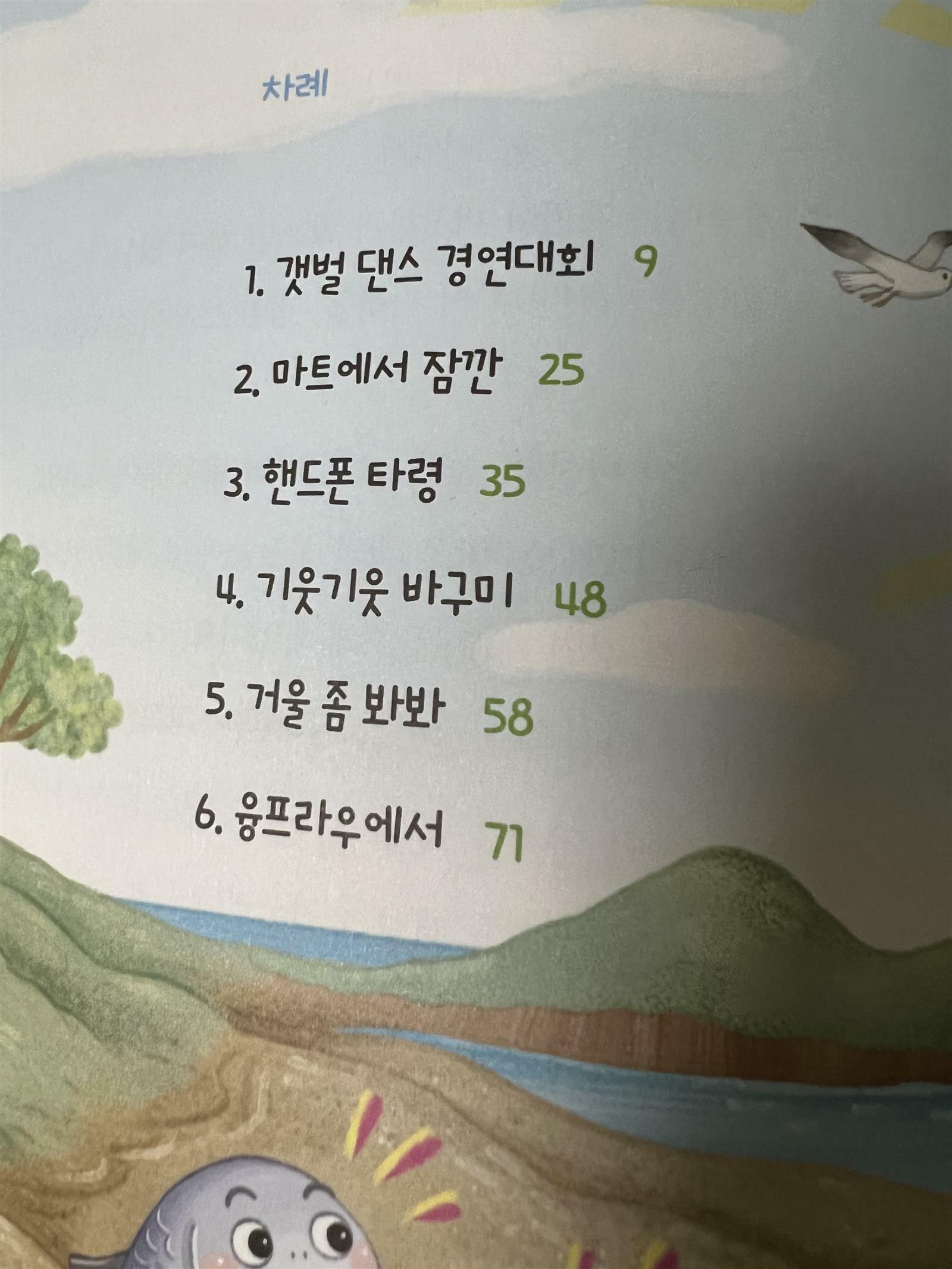 '갯벌 댄스 경연대회' 가문비어린이 출판사의 즐거운 동화 여행 175권을 읽어 보았습니다. 가문비 어린이 출판 도서를 아이가 재미있게 읽는데 이번 책도 아이들이 읽기에 적당한 글밥과 내용입니다. 초등 저학년까지 술술 잘 읽어 나갈 것 같습니다. 책 제목의 '갯벌 댄스 경연대회'는 이 책의 첫 단편동화 입니다. 그 외에도 5개의 단편이 함께 실려있습니다. 한 권의 책에 6권의 동화가 있는 책입니다. 내용이 짧고 간결해서 한 편씩 읽어 보기에 부담이 없습니다. 읽기 독립을 하는 아이들도 짧은 단편이라서 하나씩 읽어보기에 좋을 것 같습니다. 글밥도 적당하고 글씨 크기도 큰 편이라서 조금 긴 동화책 같습니다. 어른이 제가 읽어 보기에도 유치하지 않고 아이들이 공감할 만한 내용이라 추천하고 싶네요. 갯벌 댄스 경연대회 이야기를 시작으로 다양한 주제와 주인공이 나옵니다. 핸드폰 게임에 빠져서 겪는 일들도 나오고, 마트에서 엄마를 도우며 힘든 경험을 한 이야기도 나옵니다. 아이가 주인공인 이야기에서는 그 상황에 따른 심경 변화와 대사가 실감나서 아이들이 읽으면서 많이 공감 할 수 있겠다는 생각이 들었습니다. 쌀독에 사는 바구미 이야기도 나오는데 아이들과 함께 읽어 보기에 좋은 이야기 입니다. 스스로 읽을 수 있는 아이는 스스로 읽어보아도 좋고, 잠자기 독서로 엄마가 읽어 주기에도 부담없는 책입니다. 요즘 여행을 많이 가는 여름방학 시즌이라서 아이들과 이 책 한 권 들고 여행가서도 읽어 보기에 좋은 것 같습니다. 가볍고 짧은 단편동화를 찾는 분들에게 딱 인것 같습니다. 아이들이 조금씩 커가면서 하드커버보다는 소프트 커버를 선호하게 되는데 바로 이 책이 동화책에서 문고책 넘어가기에 참 좋은 것 같습니다. 아이들과 읽어보고 이야기 나눠 보시길 추천합니다. 출판사로부터 도서를 제공받아 직접 읽고 작성한 리뷰입니다. #갯벌댄스경연대회 #가문비어린이 #책세상 #맘수다 #책세상맘수다카페 #갯벌 #갯벌오염 #숭어 #농어 #인간관계