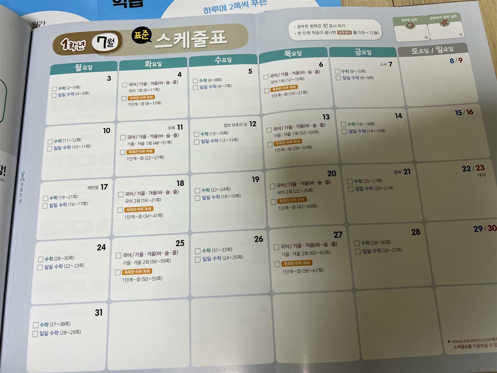 여름방학이 시작 되었습니다. 짧은 여름 방학 동안 어떻게 알차게 보낼 지 고민이 많이 되더라구요. 그래서 저는 2023년 여름방학호 월간 우등생 학습을 아이와 풀어 보려고 합니다. 우등생 학습 7-8월호는 여름방학호라서 한학기를 잘 마무리 할 수 있고 예습도 할 수 있어서 좋습니다. 수학 문제집이 두 권인데 하나는 복습용이고, 다른 하나는 예습용입니다. 예습과 복습을 할 수 있다는 점이 큰 장점입니다. 그래서 저는 이번 여름 방학 동안 아이와 열심히 풀어 보려고 합니다. 국어 교재도 가을과 겨울 내용으로 2학기에 배울 내용을 미리 볼 수 있습니다. 아직 저학년이라 내용이 많이 어렵지는 않지만 어휘를 미리 알고 간다면 수업 시간에 좀 더 수월 할 것 같습니다. 익숙한 것을 볼 때 아이들이 안정감을 느끼고 자신감도 생기는 것 같습니다. 한번 노출하는 것 보다 미리 노출하고 학교에서 배우면 기억하는데도 훨씬 도움이 됩니다. 국어 교재 앞에는 스케줄 표가 함께 있어서 엄미와 체크 하면서 매일 공부해 나갈 수 있습니다. 또 큐알 코드로 지문을 볼 수도 있어서 지루하지 않게 본문을 이해하면서 공부 할 수 있습니다. 우등생 과학은 여름 내용에 어울리는 알찬 정보들이 가득차 있습니다. 빙수 만들기나 전염병 같은 이야기가 다양한 방식으로 아이들이 지루하지 않게 볼 수 있게 되어 있네요. 배경지식을 재미있게 읽어 볼 수 있고, 잡지 형태의 지문도 직접 접해보면서 다양한 읽을 거리를 일찍부터 볼 수 있어서 좋습니다. 어려서부터 다양한 지문을 읽고 이해하는 것은 정말 중요 한 것 같더라구요. 알찬 내용으로 가득찬 우등생 과학과 우등생 학습 여름방학호를 적극 추천합니다. 아이들과 알찬 여름 방학 보내시길 바랍니다. 출판사로부터 도서를 제공받아 직접 읽고 작성한 리뷰입니다. #월간우등생학습 #여름방학호 #천재교육 #우등생과학 #맘수다 #책세상 #책세상맘수다카페