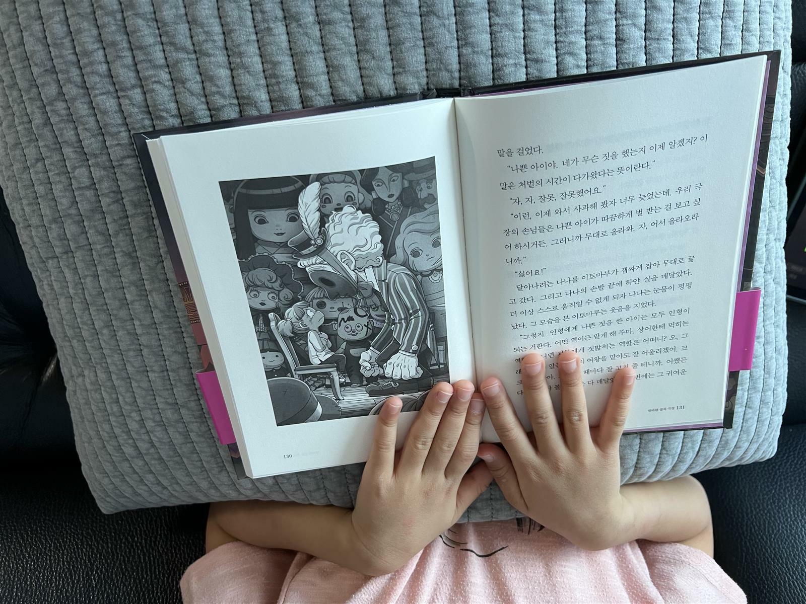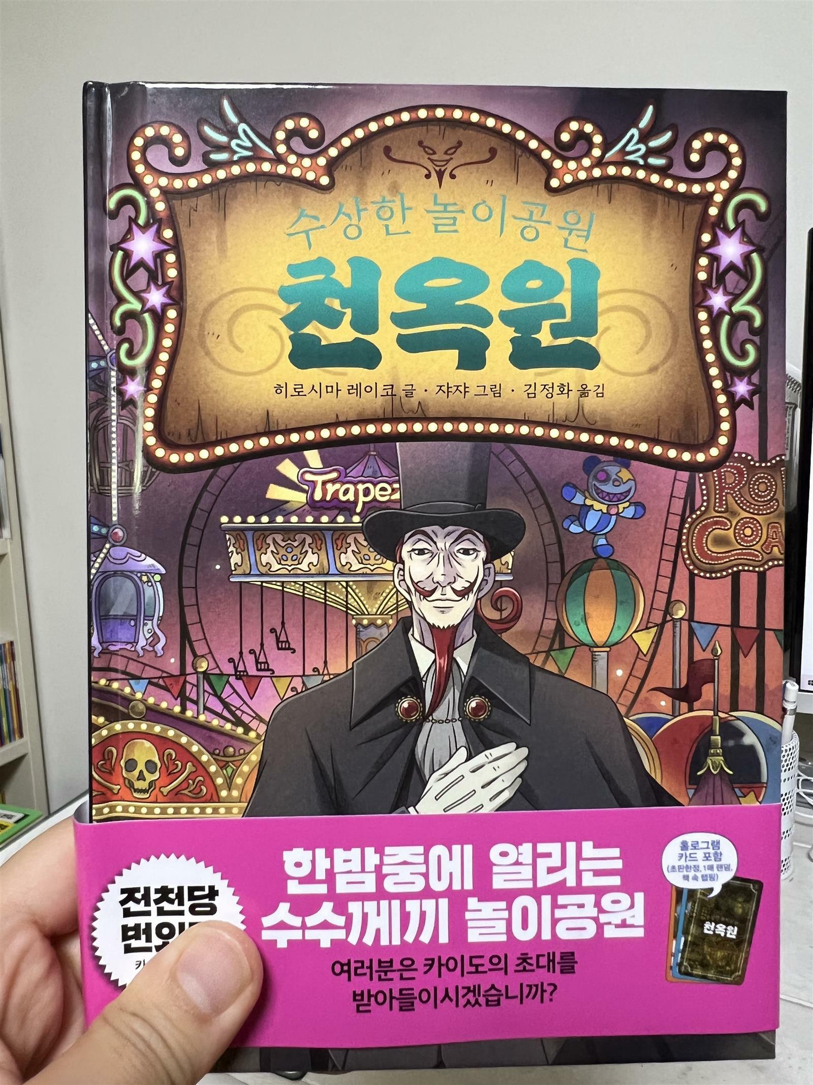 '수상한 놀이공원 천옥원' 책을 읽어 보았습니다. 아직도 유명한 전천당 책의 번외편이라고 해서 기대가되더라구요. 천옥원은 어디일까요? 제목부터 수상한 책입니다. 한 손에 들어오는 크기이고, 가벼워서 들고 다니며 읽기에 좋습니다. 아이와 도서관에 갈 때 함께 들고 가서 읽어보았는데 너무 재미있어서 저도 집중해서 읽게 되더라구요. 차례를 보면 7가지의 소제목이 있습니다. 제목 하나 하나가 으스스한 느낌입니다. 이 책은 프롤로그 부터 꼭 보셔야 합니다. 수상한 놀이공원 천옥원으로 안내하는 사장이 등장하기 때문입니다. 짧지만 강력한 임팩트를 주는 프롤로그 놓치지 말고 보세요. 저는 보통 책 읽을 때 프롤로그 안 볼 때도 있는데 이번에는 우연히 읽어보니 꼭 필요한 내용이더라구요. 천옥원의 사장은 무시무시한 놀이공원을 만들어 놓고, 누구를 초대하고 있는 것일까요? 여러가지 의문들 가운데 책이 시작됩니다. 초대되는 사람들은 무슨 불만이나 걱정이 있습니다. 그때 마침 천옥원 사장이 나타나서 놀이공원 티켓을 준다고 유혹합니다. 전혀 넘어갈 것 같지 않은 사람도 사장의 마술같은 묘술에 넘어가는 것 같습니다. 어느순간 눈을 떠보면 놀이 공원 앞에 와 있기 때문이지요. 이야기는 소제목에 맞춰서 각 각의 놀이공원 기구에 따라 다른 이야기가 펼쳐집니다. 각 각 나오는 주인공도 다르고 사연도 다릅니다. 이 이야기들 중에서 중독팝콘 이야기가 기억에 많이 남습니다. 누군가를 미워하는 마음에 누군가에게 복수하고픈 심정으로 중독팝콘을 샀지만 결국 자신이 먹고 중독되는 이야기 입니다. 책의 내용은 전반적으로 조금 끔찍한 이야기들입니다. 이런 무더위 속에서 에어컨 켜고 보면 더위가 싹 달아날 것 같은 책입니다. 천옥원 책의 마지막 이야기 밤바람 골목 극장은 인형을 함부로 괴롭히던 여자아이가 천옥원에 오게된 이야기 입니다. 할머니의 소중한 인형인데 자신이 화가난다고 함부로 인형을 괴롭힌 것입니다. 천옥원에서 우연히 보게된 인형극에서는 자신의 이야기가 나옵니다. 할머니의 인형이 얼마나 소중한 인형인지도 알게 되지요. 그리고 인형을 괴롭힌 아이는 인형이 되어야 한다면서 무서운 이야기를 듣는 순간 이 여자아이는 어떻게 될까요? 나도 모르게 눈을 감게되는 책입니다. 요즘 여름이라서 드라마도 으스스한 드라마를 많이 하고 있는데 책을 읽으면서도 으스스한 감정을 같이 느낄 수 있다니 손을 놓을 수 없는 책입니다. 초등 중학년부터 잘 볼 수 있을 책입니다. 글씨 크기가 조금 작은 편이지만 전천당을 좋아했던 아이들이라면 이 책도 재미있게 볼 것 같습니다. 무더위에 지쳐서 시원함이 필요할 때 꺼내서 자기전에 읽어보기에도 좋을 것 같네요. 저도 아이들과 자기전에 이야기 하나씩 읽어보면서 시원하게 자보려고 합니다. 여름밤에 읽어보시길 추천합니다. 출판사로부터 도서를 제공받아 직접 읽고 작성한 리뷰입니다. #천옥원 #수상한놀이공원 #길벗스쿨 #책세상 #맘수다 #책세상맘수다카페