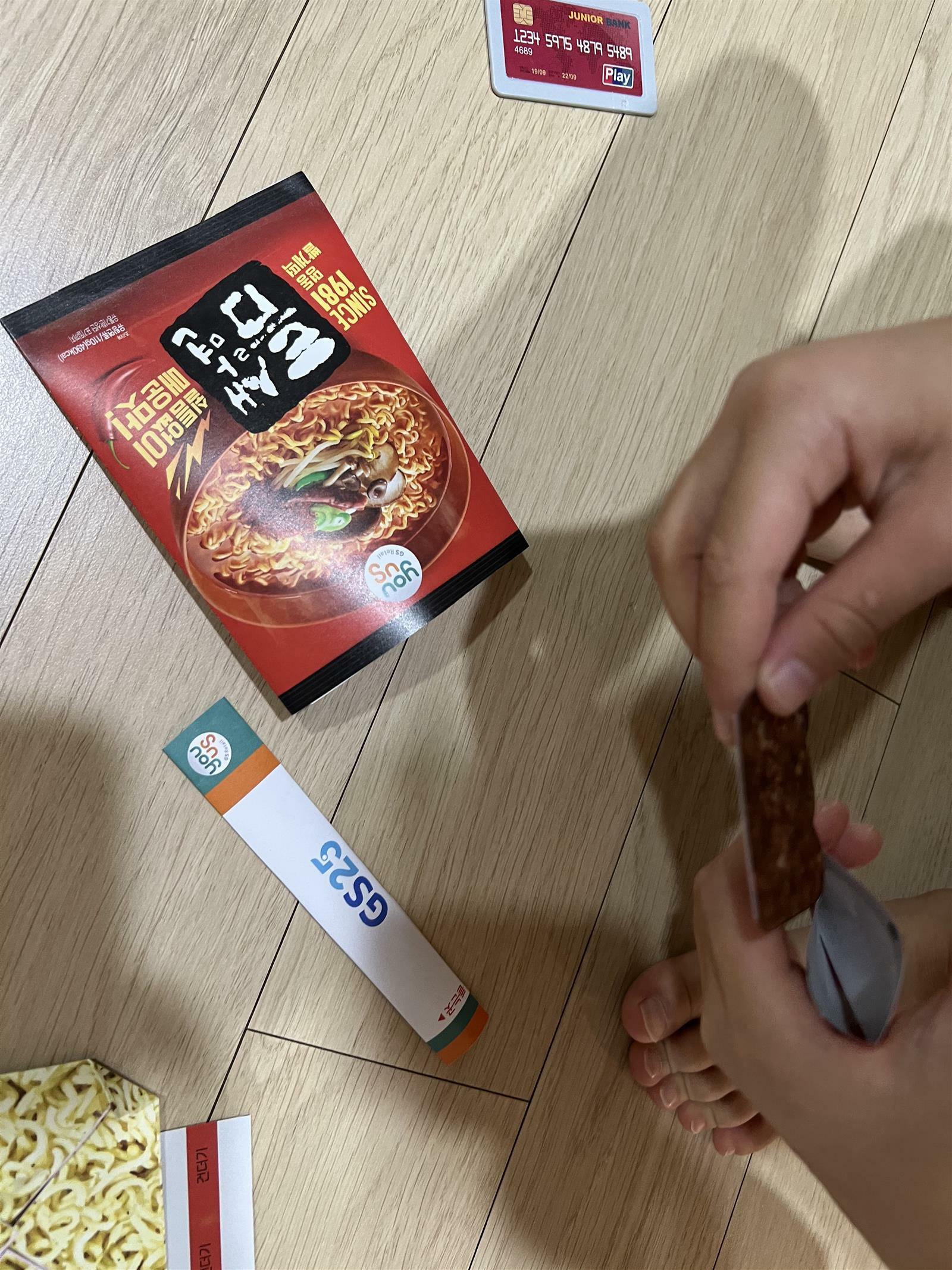 ‘편의점 탐정 미션북3-진짜 편의점 간식을 접어라! 책을 아이들과 보았습니다. 아이들이 좋아하는 간식은 모두 모여 있더라구요. 예전 만들기 실력을 발휘하면서 아이들과 옹기종기모여서 만들었습니다. 아이들이 먹고 싶은 간식을 하나씩 골라보고 만들어 보았습니다. 만들다보니 어렵지 않고 설명도 잘 나와 있어서 좋더라구요. 큐알코드로 만들기 영상도 볼 수 있어서 아이들도 쉽게 만들 수 있습니다. 만들다보니 정말 디테일하게 잘 만들어 볼 수 있습니다. 색감도 진해서 진짜 과자처럼 생겼어요. 어느 마트 제품인지도 알 수 있는 상표까지 있어요. 라면을 만들다가 라면 봉투안에 진짜로 라면도 넣고 스프도 넣게 만드니 재미있더라구요. 젓가락 껍질봉투까지 정말 디테일합니다. 한가지 만들고나니 다른 것도 만들고 싶은 생각이 계속 나더라구요. 아이들은 만들고나서 자연스럽게 마트 놀이를 하였습니다. 손님도하고 마트 가게 주인도 하면서 재미있게 놀이를 했습니다. 다음에는 어떤 것을 만들어 볼까 자기전에 생각하면서 즐거워 하더라구요. 아이들과 주말이 순식간에 지나가는 놀이책이라서 좋았습니다. 요즘 방학이라서 시간이 많은데 아이들과 하루종일 재미있는 마트 놀이 추천합니다. 실감나는 간식만들기라서 더욱 재미있습니다. 만들기도 어렵지 않아서 온 가족 둘러 앉아 오랜만에 만들기 재미에 푹 빠져 보시길 추천합니다. 출판사로부터 도서를 제공받아 직접 읽고 작성한 리뷰입니다. 컬러 블룸을 통해 출판사로부터 도서를 제공받았습니다. #편의점탐정미션북3 #진짜편의점간식을접어라 #키득키즈 #컬처블룸 #컬처블룸리뷰단