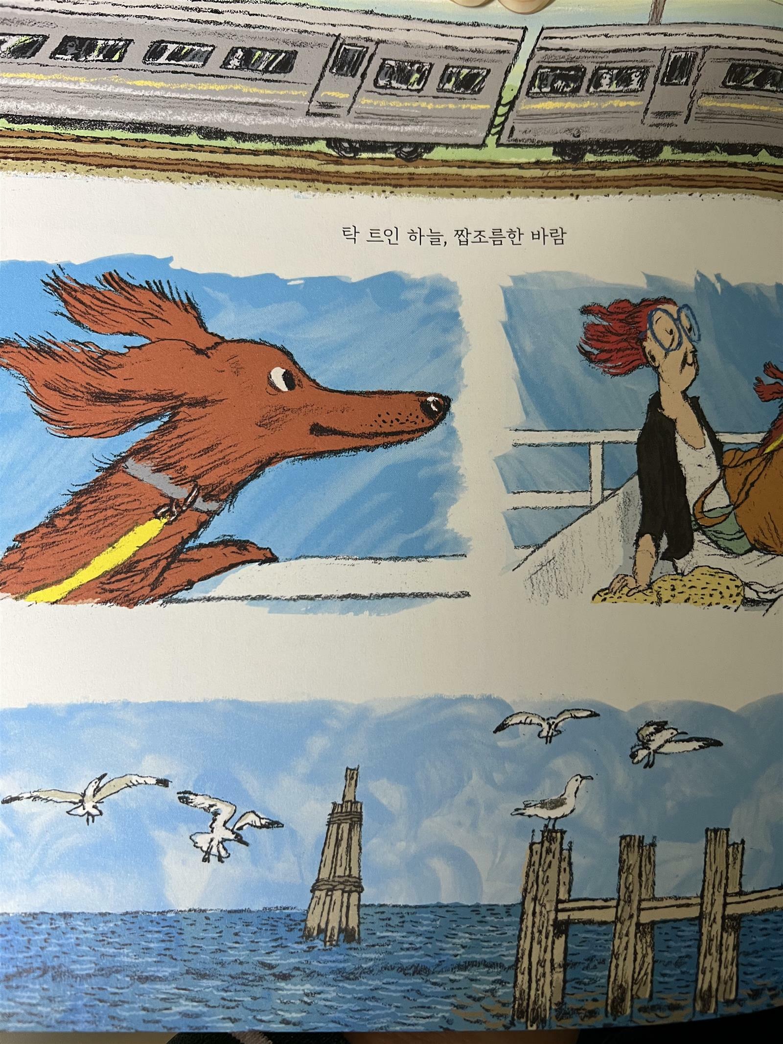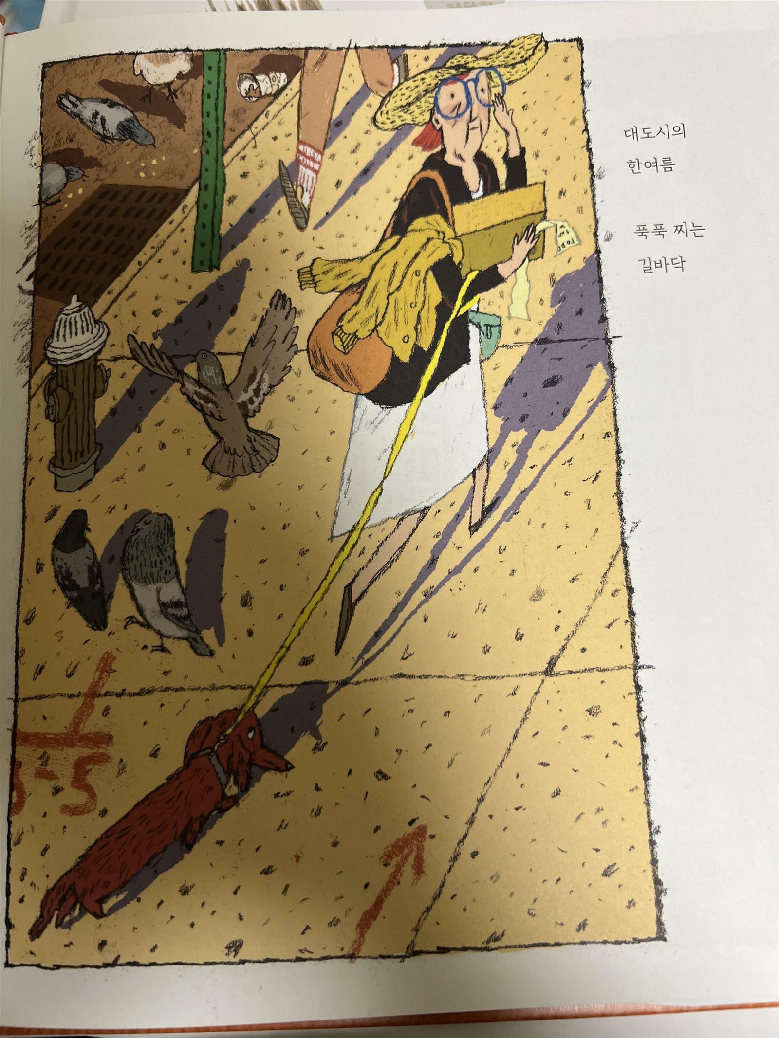 '핫 도그' 그림책을 읽어 보았습니다. 뭔가 제목에서부터 뜨거운 여름이 연상됩니다. 핫도그라고 하면 흔희 먹는 핫도그도 떠오르고, 영어의미로 뜨거운 개라는 생각 두가지가 듭니다. 여기서는 두 번째 의미가 더 맞는 것 같아요. 책의 주인공 개는 뜨거운 여름의 도시에서 힘들어 합니다. 급기야는 움직이지 않겠다고 길바닥에 붙어버립니다. 개의 주인도 개의 마음을 느꼈을까요? 개를 안고 뛰기 시작합니다. 택시를 잡아보려고하고 전철을 타고 계속 움직입니다. 어디로 가는 것일까요? 배를 타고 가는 이들의 모습이 매우 편안해 보입니다. 그리고 부럽기도 합니다. 요즘같은 더운 여름날 배타고 휴가 가는 그림이 참 잘 어울린다는 생각이 들었습니다. 개와 주인은 배를타고 바다로 갑니다. 바다에서 마음껏 뛰어도 되는 개는 목줄을 풀고 신나게 돌아다닙니다. 개는 더위 뿐만 아니라 도시에서 늘 목줄과 함께 했던 것이 싫었을지도 모릅니다. 해변을 마음껏 뛰노는 개의 모습을 통해 자유로움을 느낄 수 있습니다. 어느덧 해가 뉘엿 뉘엿 지고, 집으로 돌아가야 할 시간이 됩니다. 하지만 조금은 선선해진 날씨로 인해 발걸음이 무겁지만은 않습니다. 해변에서 주워 온 돌들을 창가에 줄지어 놓고, 깊은 잠에 빠져듭니다. 시원한 꿈을 꾸는 듯한 개는 여전히 아직도 그 바닷가에 있는 것 같네요. 개의 여정을 통해 힘든 하루를 녹여 내는 그림책입니다. 글밥이 길지 않지만 우리에게 말하고 있는 이야기들이 있습니다. 각자 읽어보면서 느껴보시길 바랍니다. 출판사로부터 도서를 제공받아 직접 읽고 작성한 리뷰입니다. #핫도그 #더그살라티 #보물창고 #컬처블룸 #컬처블룸리뷰단