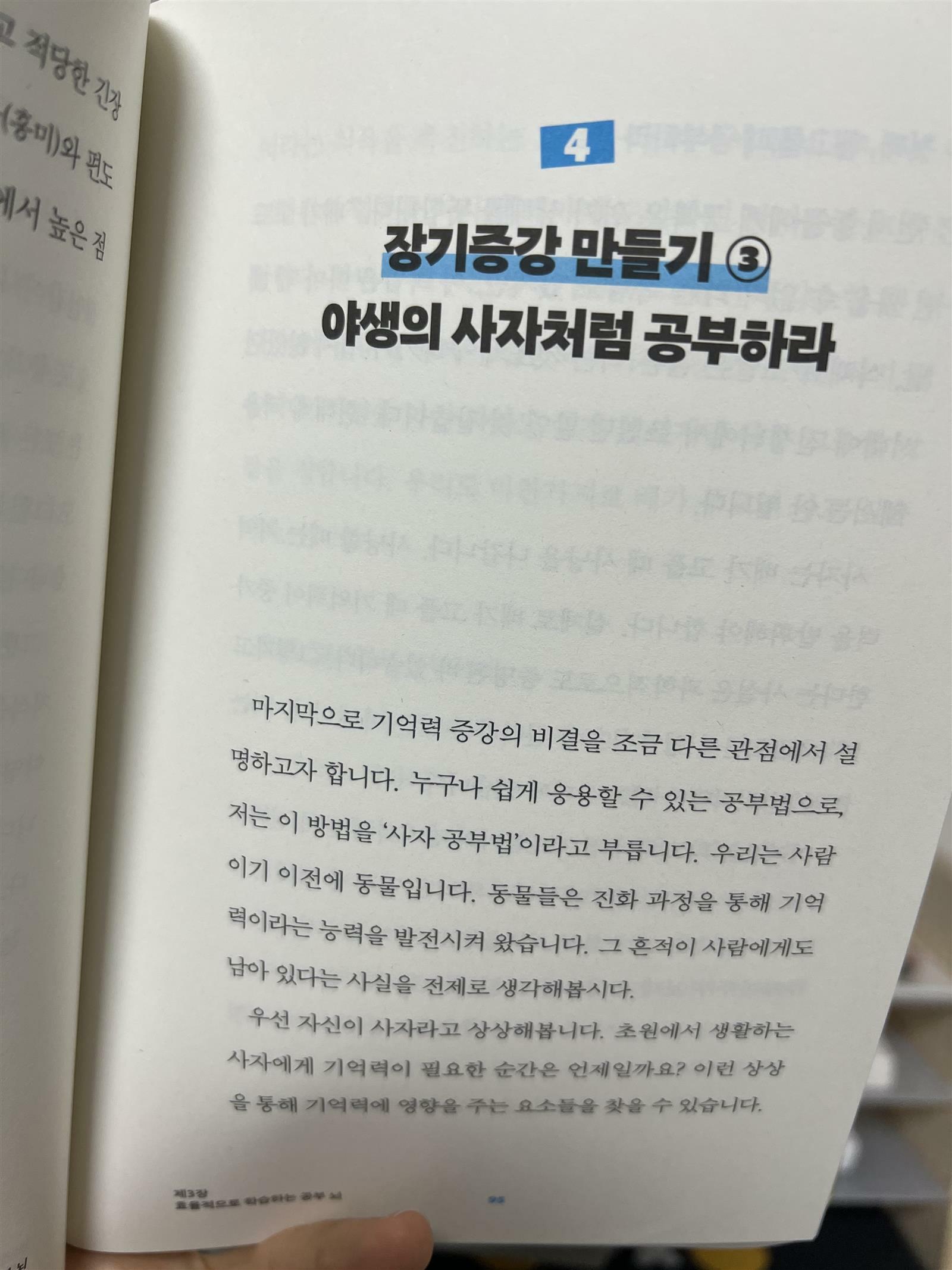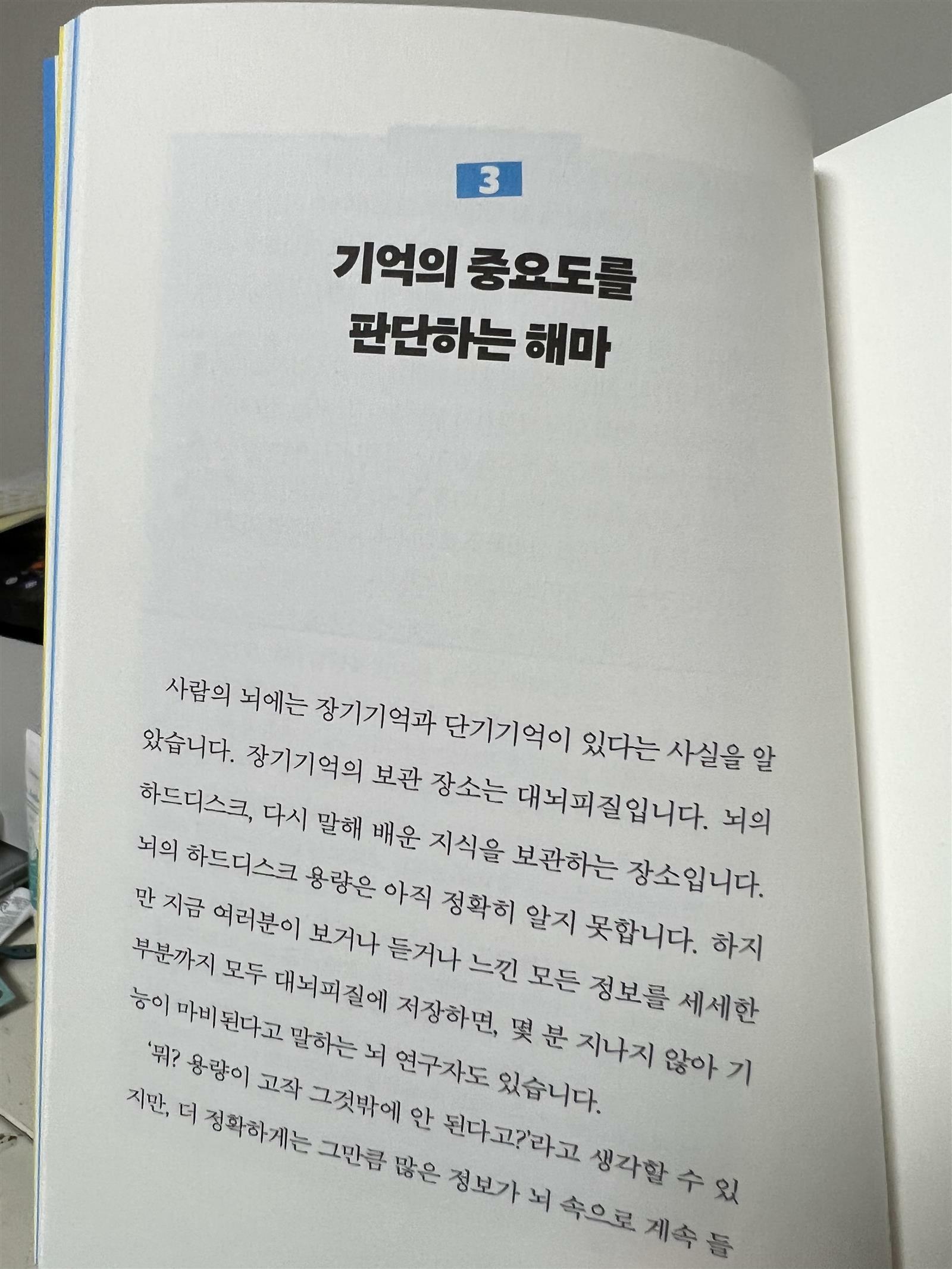'최적의 공부 뇌' 책을 읽어 보았습니다. 평범한 뇌도 탁월하게 만드는 두뇌 개조 프로젝트 라는 문구가 관심이 가더라구요. 도대체 어떤 책이길래 대치동 학부모들이 번역해서 돌려보던 책일까? 궁금하였습니다. 마침 좋은 기회로 책을 보게 되었는데 일단 술술 잘 읽혀서 놀랐습니다. 뇌과학 이야기 인데 어렵지 않고 잘 이해되는 책입니다. 우리의 뇌에대해서 아직도 모르는게 많습니다. 이 책에서는 뇌의 해마에 대한 이야기를 주로 합니다. 작가는 해마 전문가라고 할 수 있는 뇌과학자입니다. 해마라는 부위에서는 무슨 일을 할까요? 기억이라는 것을 관장하는 역할을 한다고 합니다. 단기 기억을 장기 기억화 시켜주는데 해마가 관여를 하고 있습니다. 저자는 해마를 속여야 기억이 오래간다고 합니다. 그 이유는 해마는 생존에 관련된 것 위주로 저장을 한다고 합니다. 그렇다면 일반적으로 우리가 공부하는 지식이 생존에 꼭 필요한 것은 아니기 때문입니다. 해마를 어떻게 속여야 하는지 책을 통해 살펴보시면 좋을 것 같습니다. 저자가 이야기하는 공부법 중에 야생의 사자처럼 공부하는 방법이 있습니다. 야생의 사자를 생각하면 사자가 움직이는 때는 배가 고플때 입니다. 이를 적용해 보면 밥을 먹은 직후보다 밥을 먹기 전에 약간 출출할 때 우리 몸은 위기를 느끼기 때문에 좀 더 공부가 잘 된다고 합니다. 이와 비슷한 이유로 사자가 먹이를 찾아 배회하는 것처럼 걸으면서 암기하면 더 잘 암기된다고 합니다. 심지어 차를 타고 이동하더라도 우리가 이동하는 것을 인식하고 있다면 같은 효과로 암기가 잘 된다고 합니다. 이 책을 보면서 우리 뇌는 참 신기하다는 생각을 했습니다. 뇌의 전체가 아닌 해마라는 부위에 대해서 주로 다루는 책인데도 놀랍고 흥미로운 내용이었습니다. 이 책을 정독하고 메모하면서 아이들 공부에 잘 적용시켜 준다면 조금은 덜 힘들어 할 것 같네요. 공부하는 아이들을 양육하시는 분들에게 이 책을 추천하고 싶습니다. 뇌를 알고 나에 맞게 공부법을 다시 재정비 하는 시간이 되면 좋을 것 같아요. 출판사로부터 도서를 제공받아 직접 읽고 작성한 리뷰입니다. #책세상 #맘수다 #책세상맘수다카페 #최적의공부뇌 #포레스트북스